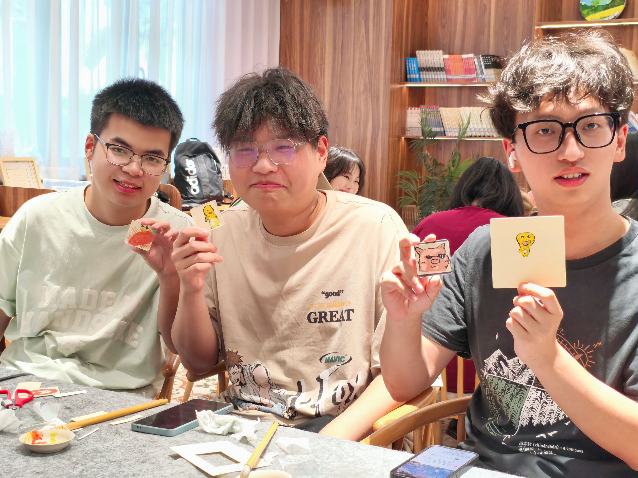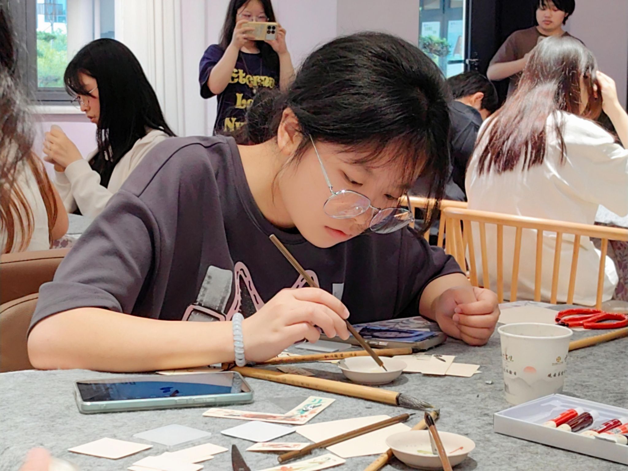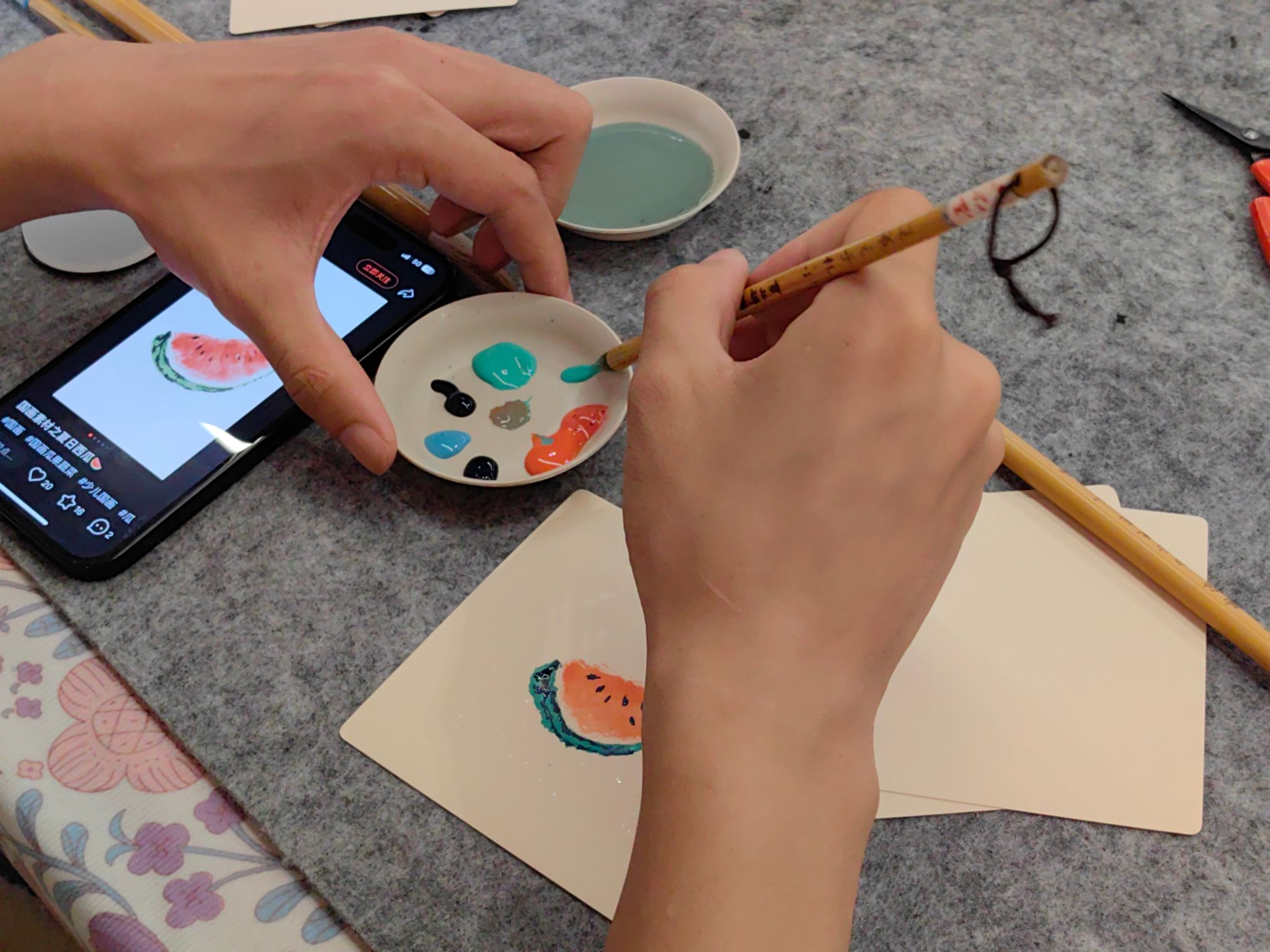 为弘扬中华传统书画艺术,搭建书院学子感知国粹美学的实践平台,2025年5月16日,观云书院与青花墨字书画社在观云书院GY105芒种·华文书吧联合举办“妙手丹青绘古今”书画体验课第13期——“把夏日装进冰箱贴”国画冰箱贴DIY活动。活动以夏日为主题,通过将传统花鸟绘画融入现代生活用品,引导书院学子在创作中领略传统文化,感悟艺术与生活交融的意趣。