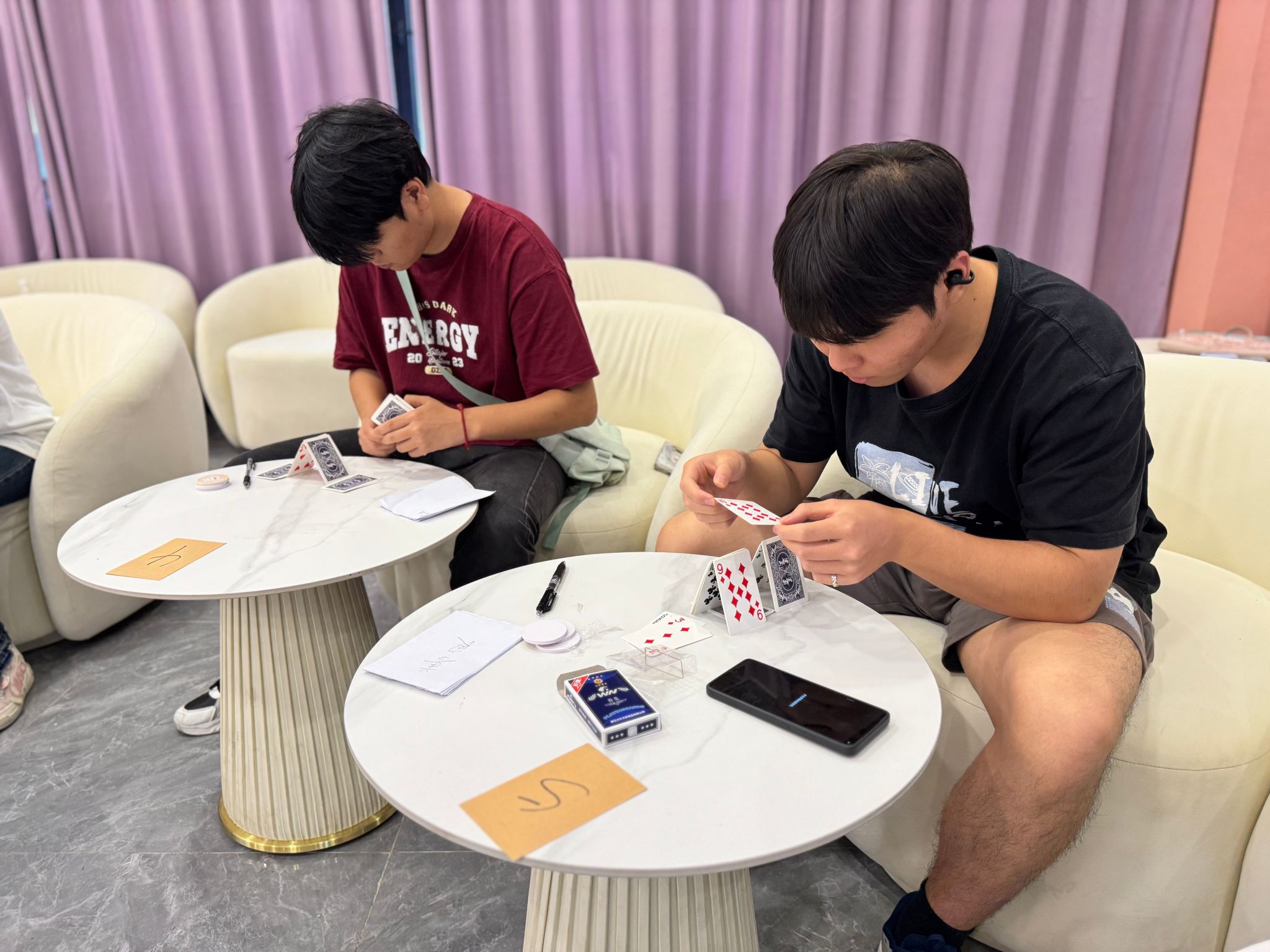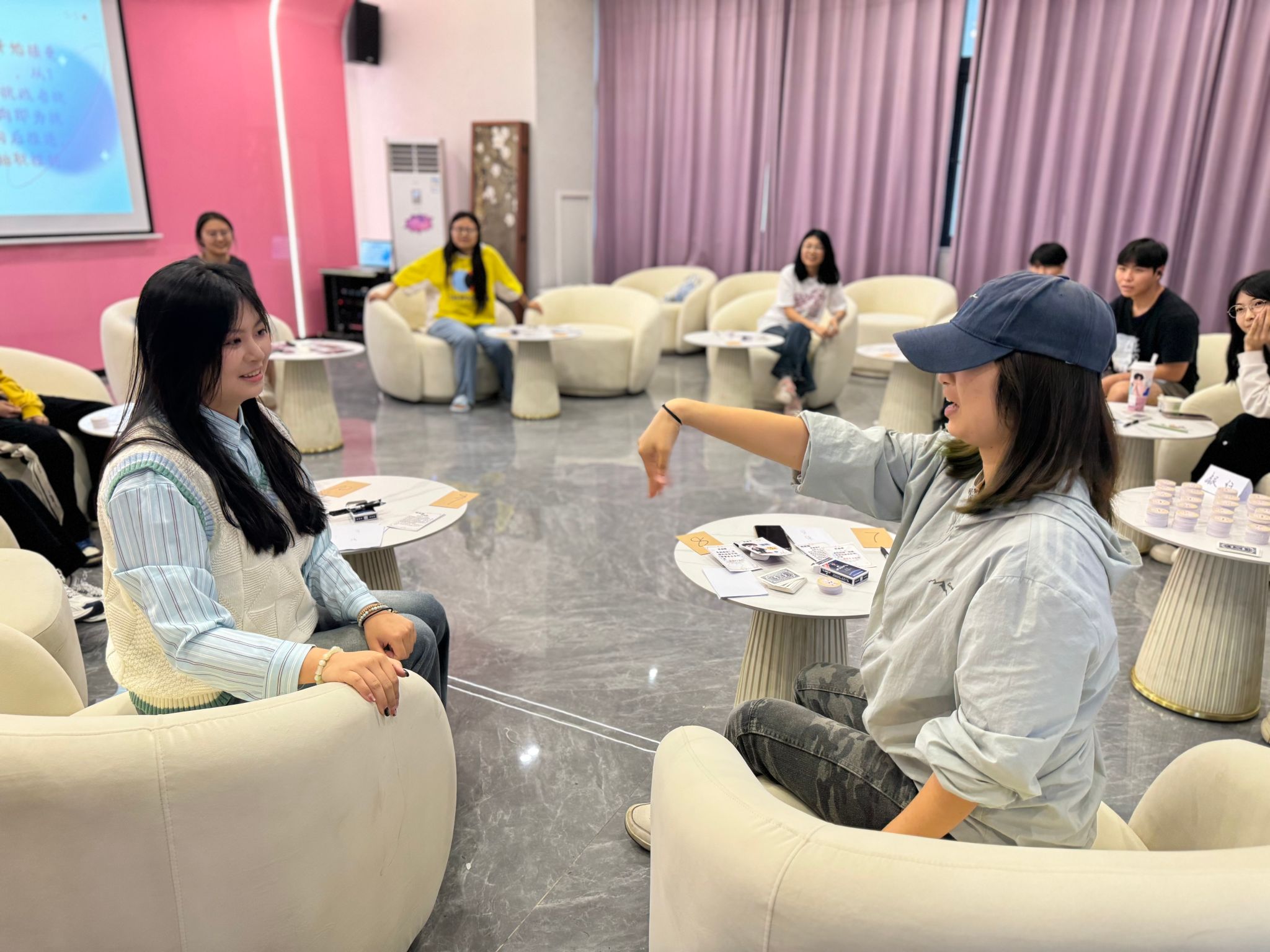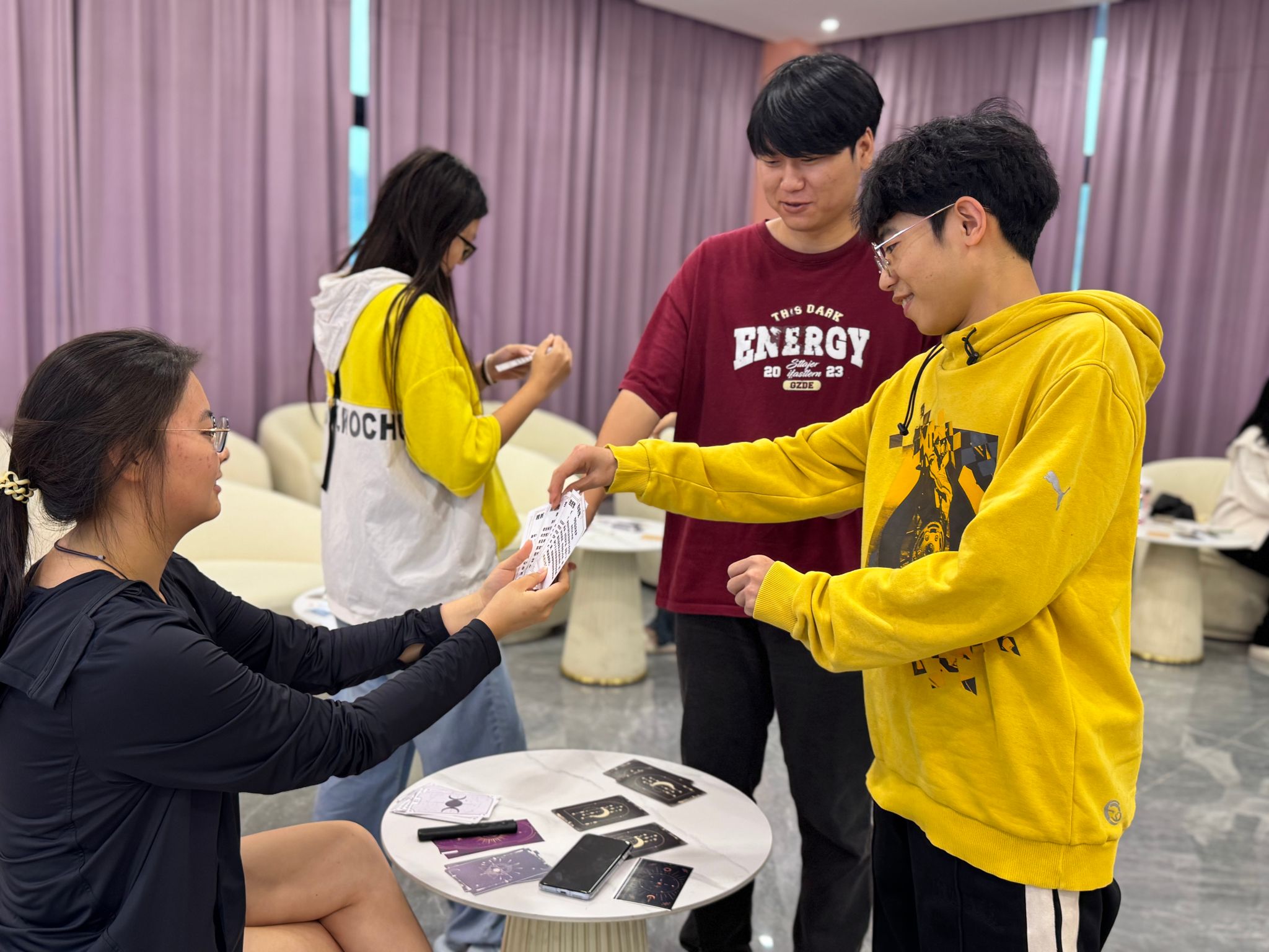 活动现场,人生卡牌反扣在桌面,每张都藏着命运的“小心机”。同学们围在桌前,等待工作人员拿来卡牌。有人“精挑细选”,仿佛这样可以改变“命运”;有人干脆利落地抽取,大有"天命看天"的洒脱。拿到卡牌的瞬间,一段截然不同的人生故事便在眼前展开。