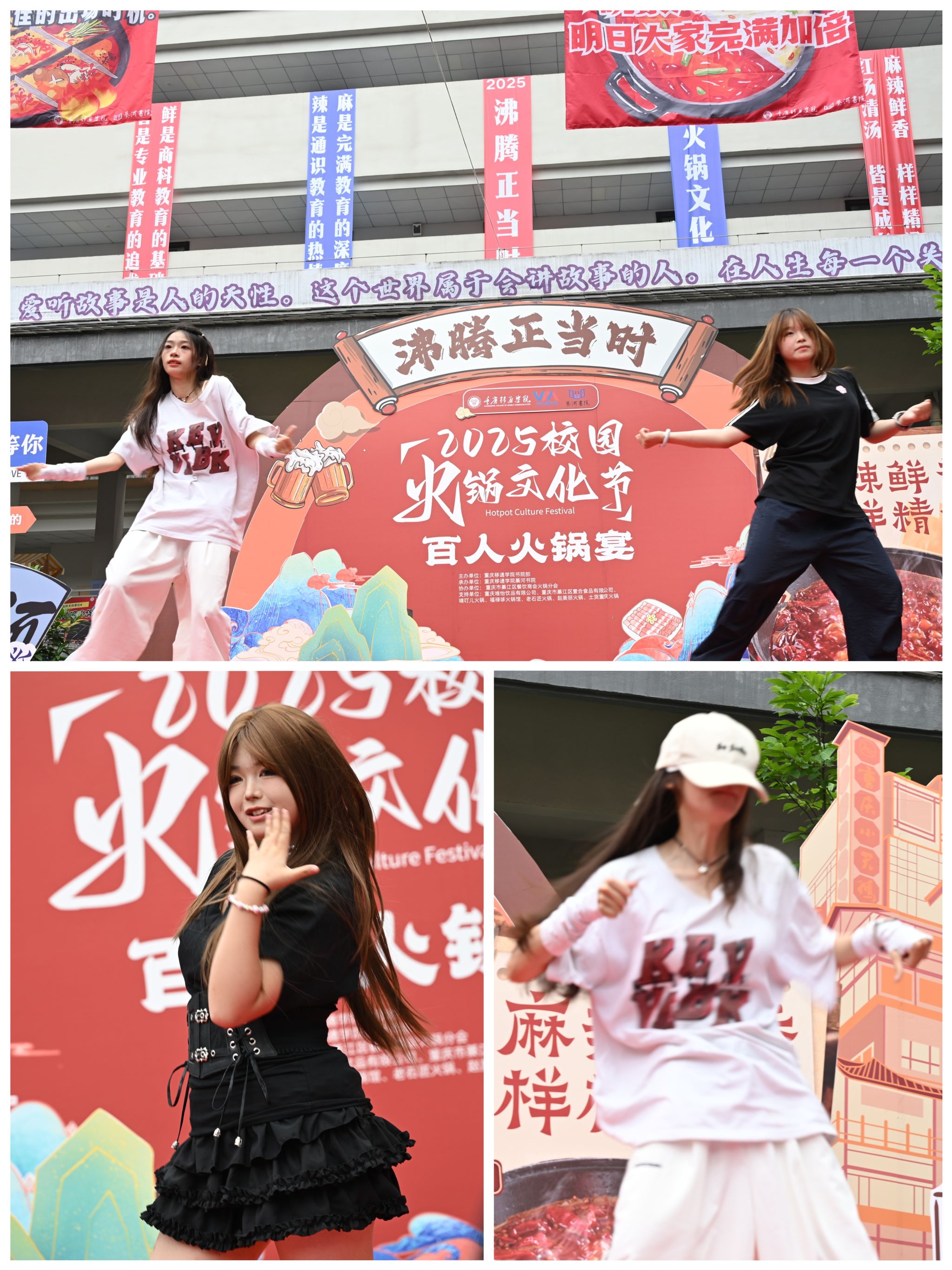 音符撕开凝固的热浪,肢体划破陌生的隔阂,来自T.sparkle舞社的舞者与大数据学院丁山书院的张岚同学用力量与热情并驱的舞姿点燃现场,沸腾的火锅用咕嘟冒泡的声响赞叹着艺术的舞蹈。在我校完满教育理念的烹煮中,同学们跨越专业、兴趣的限制多元发展,遨游在风味十足的移通特色锅底中绽放独属于自己的魅力风华。