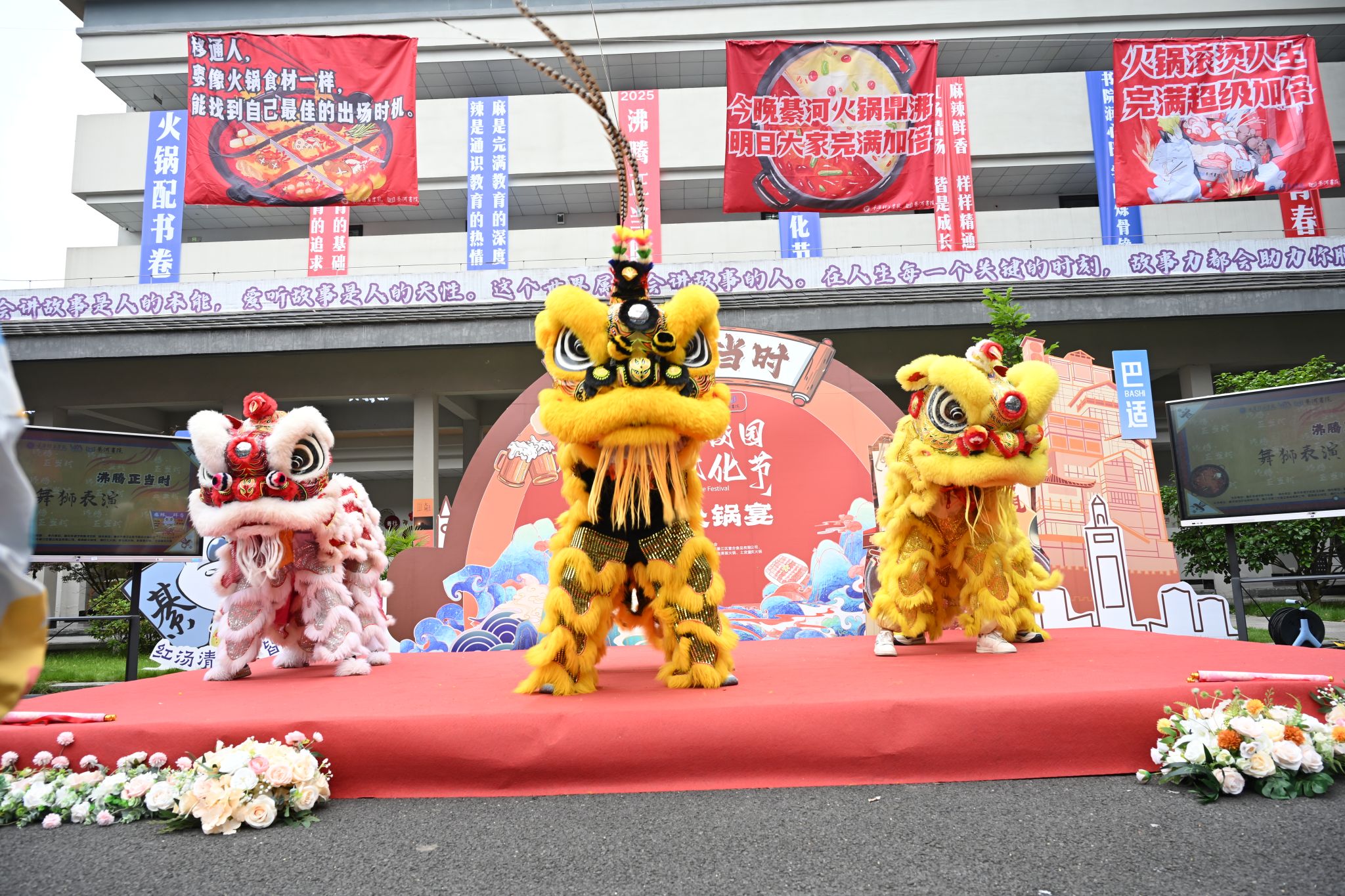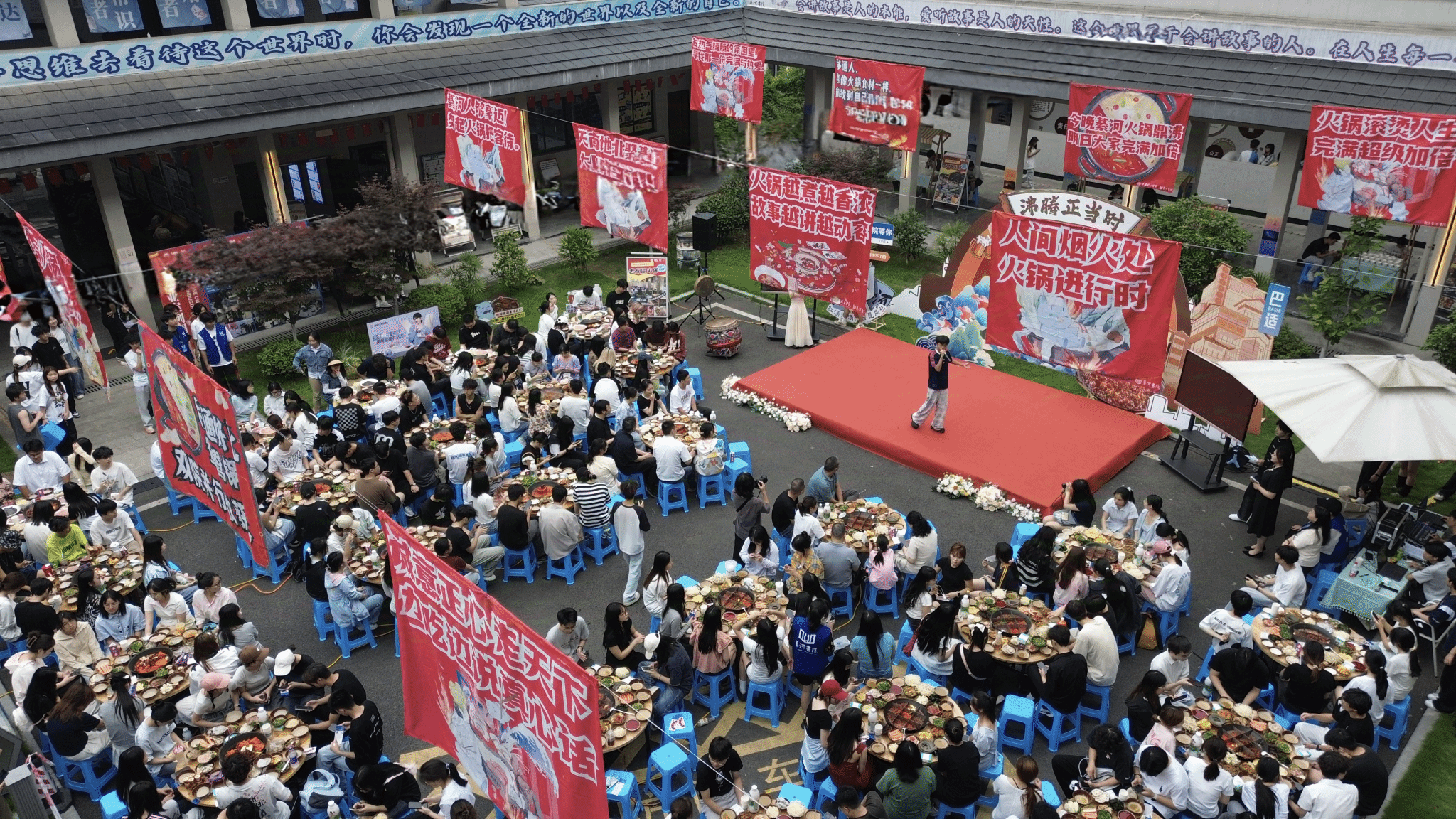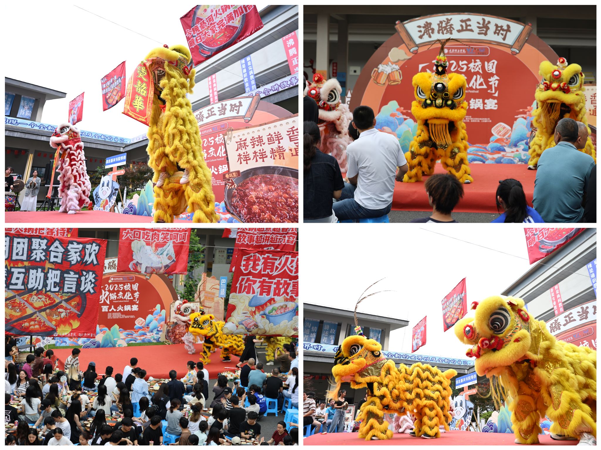 从古时青铜鼎到现代鸳鸯锅,火锅文化始终是中华文明“和而不同”的味觉注脚。5月18日,重庆移通学院綦河书院中庭人声鼎沸,蒸腾的热气裹挟着沸腾麻辣弥漫全场,在《周易》八卦的哲学智慧与火锅“一生二”的包容之道中交织,在原创主题曲与传统舞狮中交融。本次活动以“沸腾·正当时”为主题,以学校“四位一体双院制”为育人底色,融入火锅文化、校园文化、商科教育、劳动教育、完满教育,三百余名师生在举箸涮煮间,既品舌尖热辣滋味,更悟文化调和之道,共同见证了一场“从舌尖到心间”的文化共振。