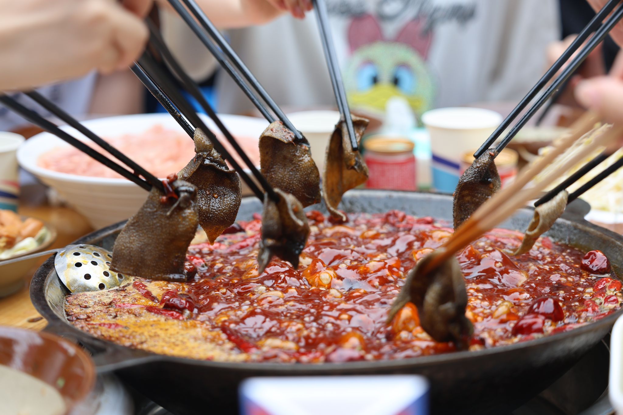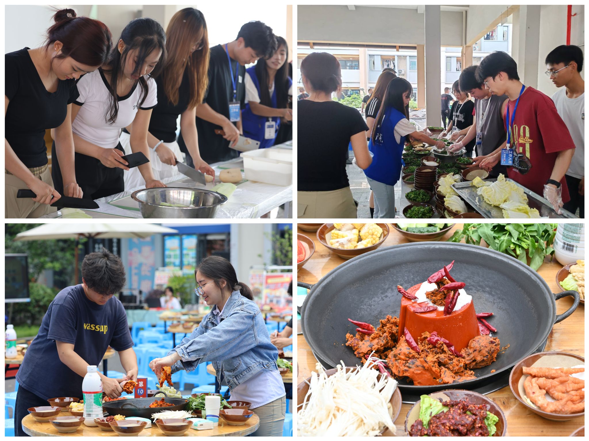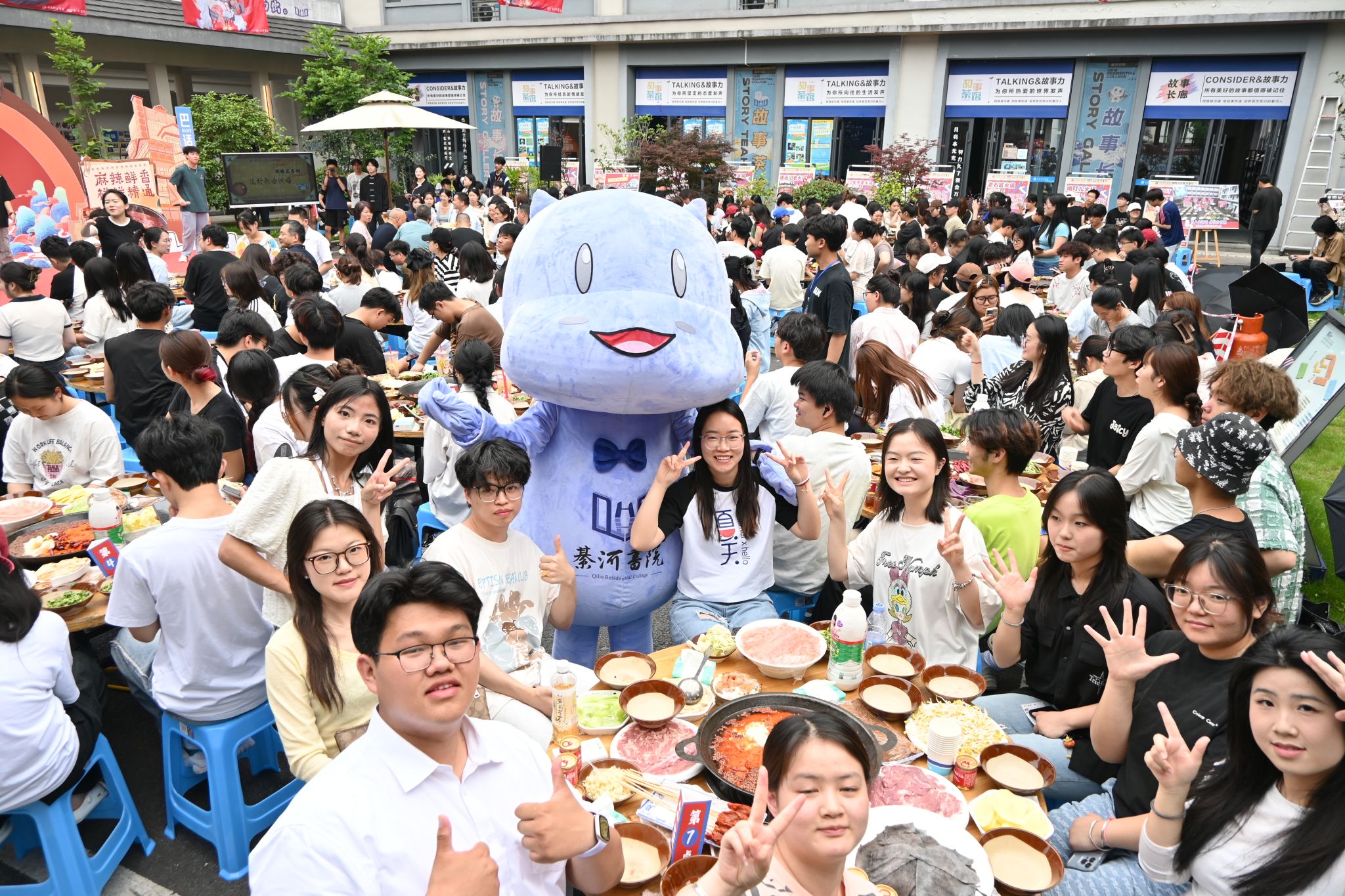 从古时青铜鼎到现代鸳鸯锅,火锅文化始终是中华文明“和而不同”的味觉注脚。5月18日,重庆移通学院綦河书院中庭人声鼎沸,蒸腾的热气裹挟着沸腾麻辣弥漫全场,在《周易》八卦的哲学智慧与火锅“一生二”的包容之道中交织,在原创主题曲与传统舞狮中交融。本次活动以“沸腾·正当时”为主题,以学校“四位一体双院制”为育人底色,融入火锅文化、校园文化、商科教育、劳动教育、完满教育,三百余名师生在举箸涮煮间,既品舌尖热辣滋味,更悟文化调和之道,共同见证了一场“从舌尖到心间”的文化共振。