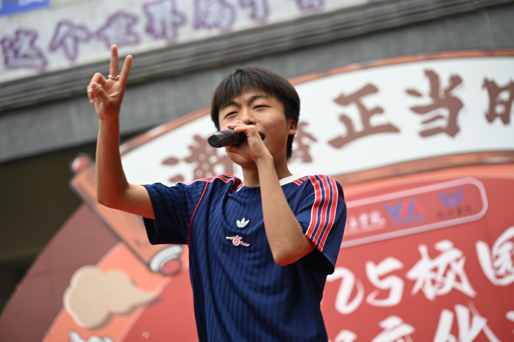 当鼓点开始以心跳漏拍的频率锤击耳膜,来自数字经济与信息管理学院、古剑书院的张云杰同学唱响着专属于火锅文化节的原创主题曲《热辣滚烫》,押韵的词句与跃动的节拍完美融合,重庆文化、火锅文化与完满育人理念巧妙结合,此刻台上的主角便是文化最佳的育人成果。