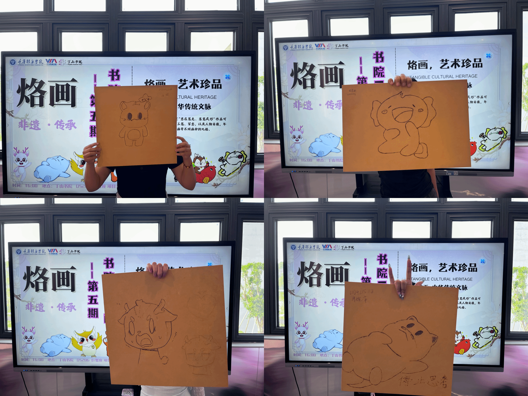 且看烙铁游走间,书院萌宠们跃然于木纹之上。丁山书院于5月21日在DS206巨蟹座·项目共创空间举办“传承千年·烙画守护计划”第5期活动。本期以“书院IP觉醒”为主题,将传统烙画与书院IP相结合。此举为烙画发展注入新元素,推动其在表现形式上的创新。书院学子们在感受传统文化魅力的同时,不仅增强了书院文化认同感和自豪感,还加深了对书院的归属感。