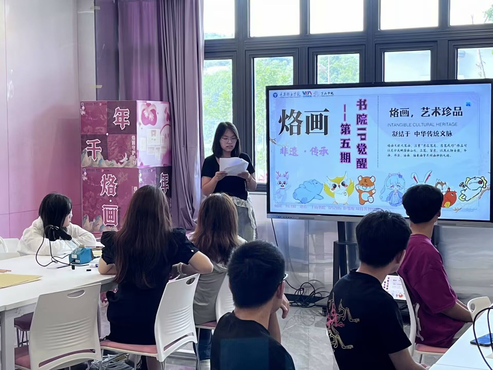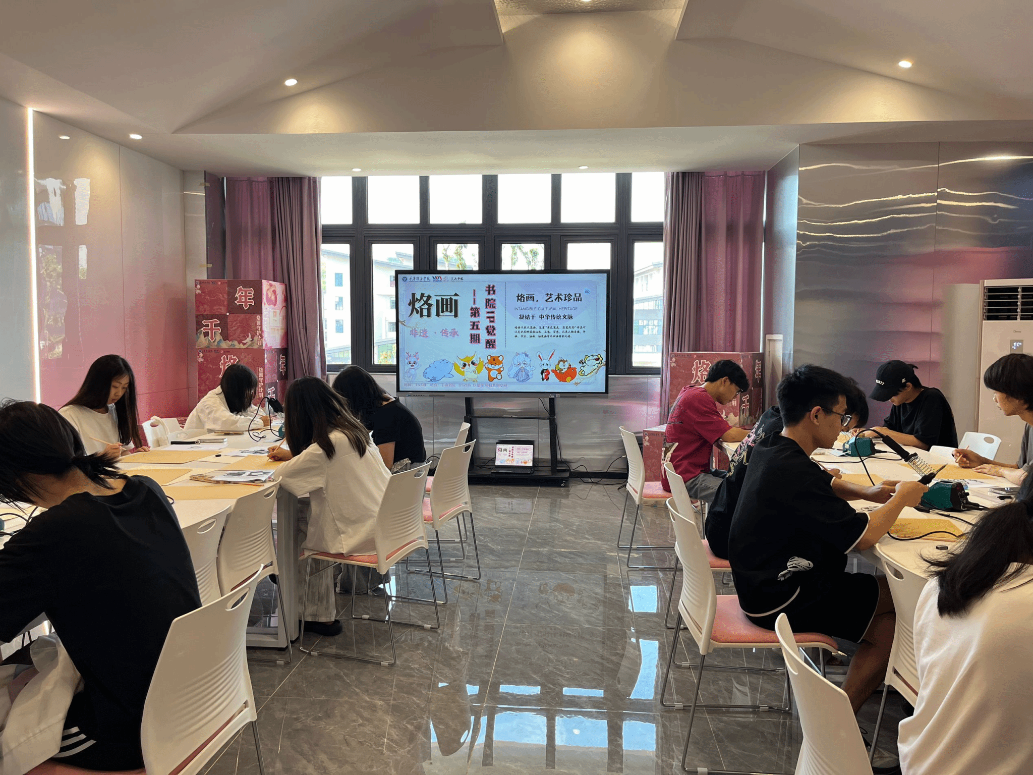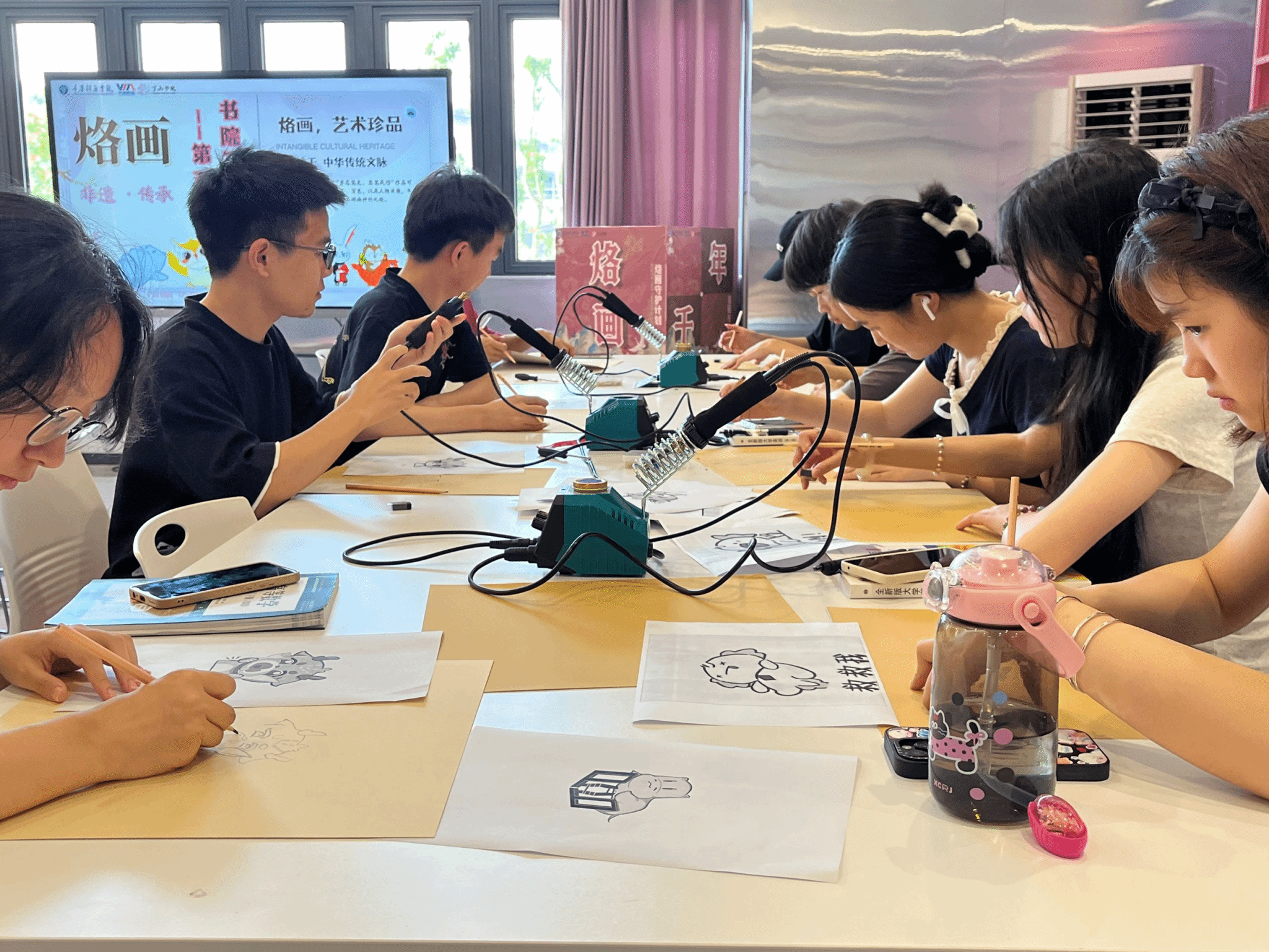 以火为墨、以木为笺,邀千年烙画艺术与书院文脉欣然相遇。丁山书院综合办公室干事龚艳梅通过讲解烙画与书院IP的融合,让书香雅韵在火与木的淬炼中,绽放全新的艺术华光!同学们现场沉浸式体验烙画创作,以实践为传统技艺传承注入新活力。