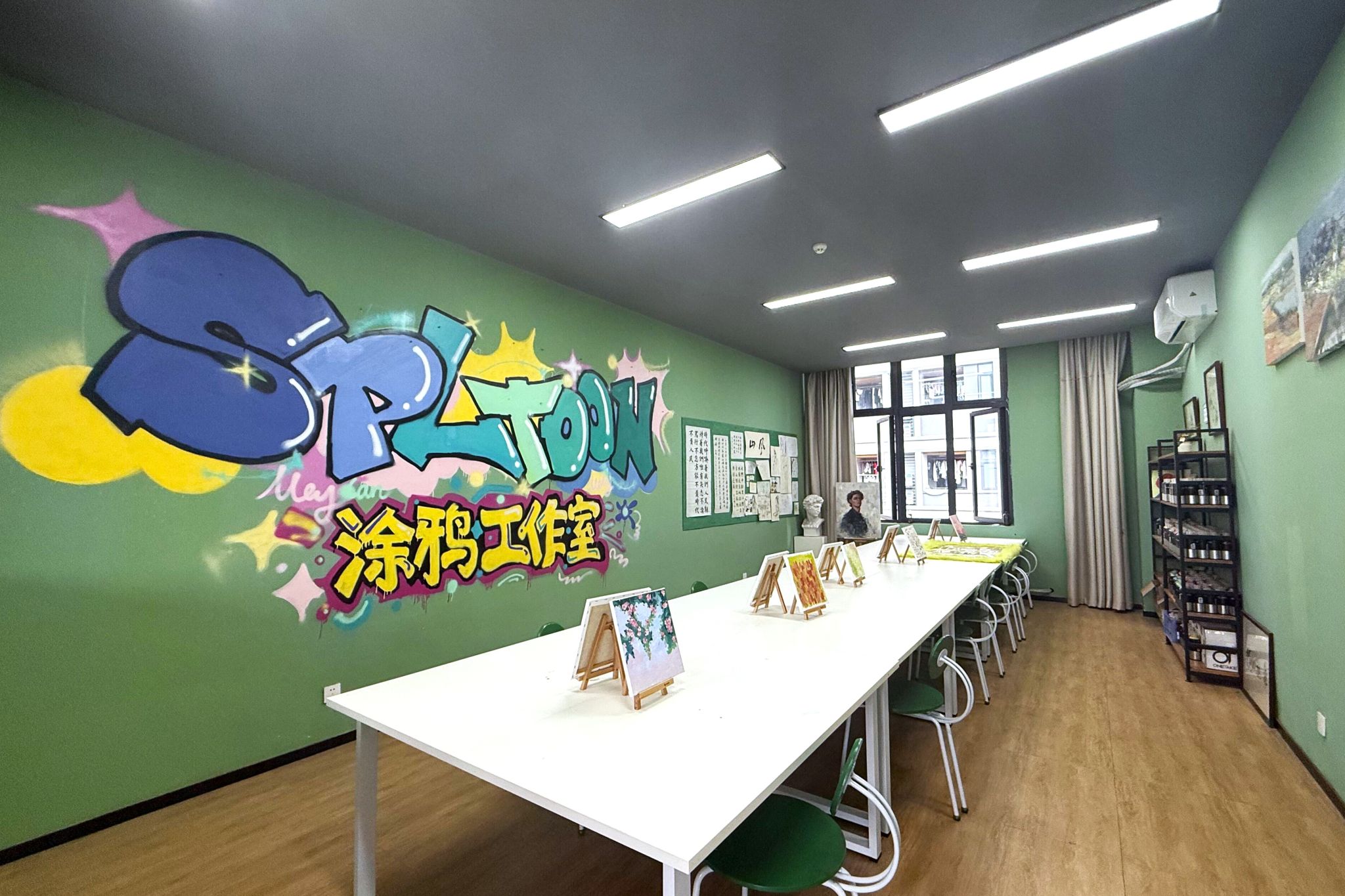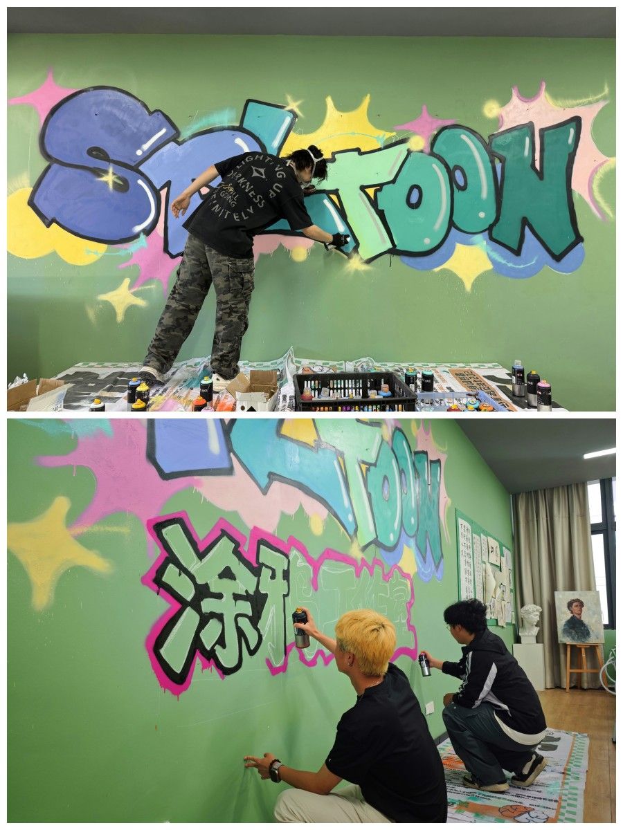 夏日的横山书院洋溢着青春的艺术气息!为丰富书院空间文化艺术氛围,横山书院携手Splatoon涂鸦工作室,对诗画工坊进行了全方位的创意升级。这场由学生主导的空间改造,开创了“学习即实践”的创新模式。这一改造不仅为学生提供了系统化的艺术创作空间,更通过沉浸式的涂鸦艺术体验,有效激发了学生的创造潜能,实现了书院生活与艺术教育的有机融合。