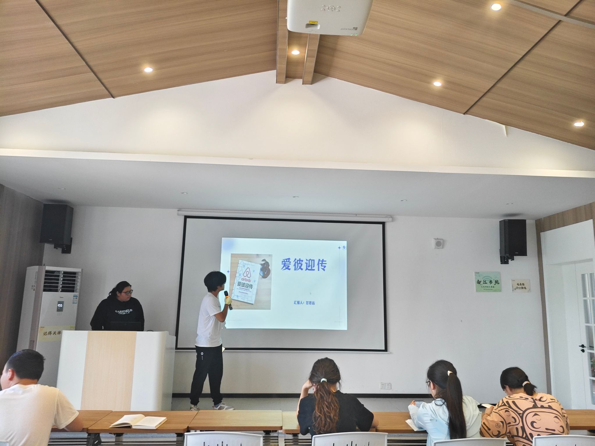 来自计算机学院南江书院甘思远同学带来了《爱彼迎传》的精彩分享。他生动地讲述了爱彼迎如何从一个创意想法发展成为全球知名的共享住宿平台,深入剖析了创始人在创业过程中所面临的挑战与机遇,以及他们如何突破困境,不断创新商业模式。此外,他还引用了“大咖传记阅读”中对爱彼迎企业文化和营销策略的精辟解读,使同学们深刻体会到创新精神和敏锐市场洞察力在创业中的至关重要性。