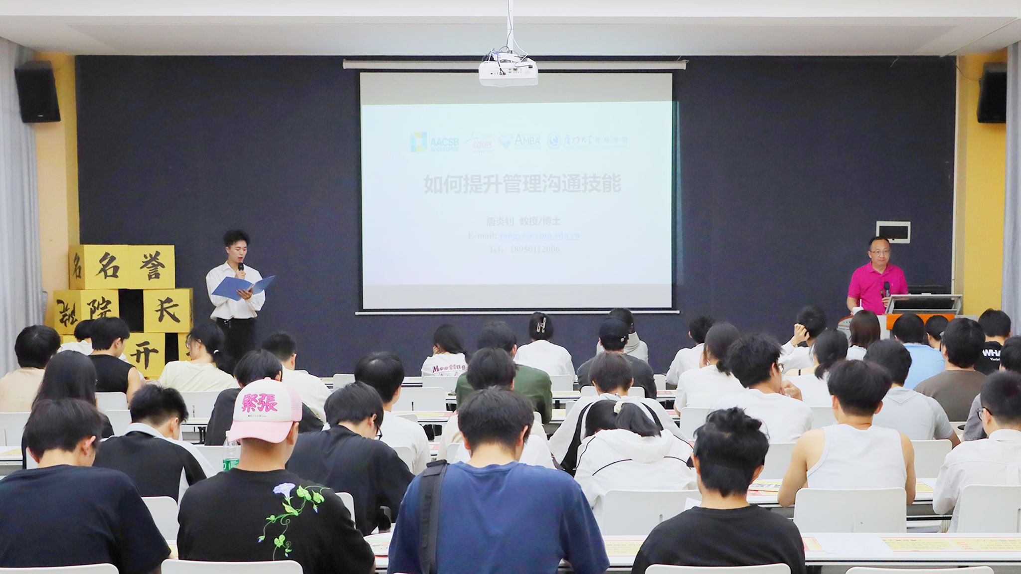 绿荫渐浓,蝉鸣初透,5月26日,瀛溪书院名誉院长公开课《如何提升管理沟通技能》如期开讲,瀛溪书院名誉院长唐炎钊教授凭借深厚的管理沟通专业素养,通过沉浸式互动教学与系统性理论阐释,为同学们打开了提升管理沟通能力的知识大门,呈现了一堂别开生面的管理沟通实训课。课程以“除障碍、做准备、选方式、谈需求、见效果”的五步进阶法为核心框架,结合四色性格测评试卷,深度解析高效沟通的底层逻辑与实践路径。