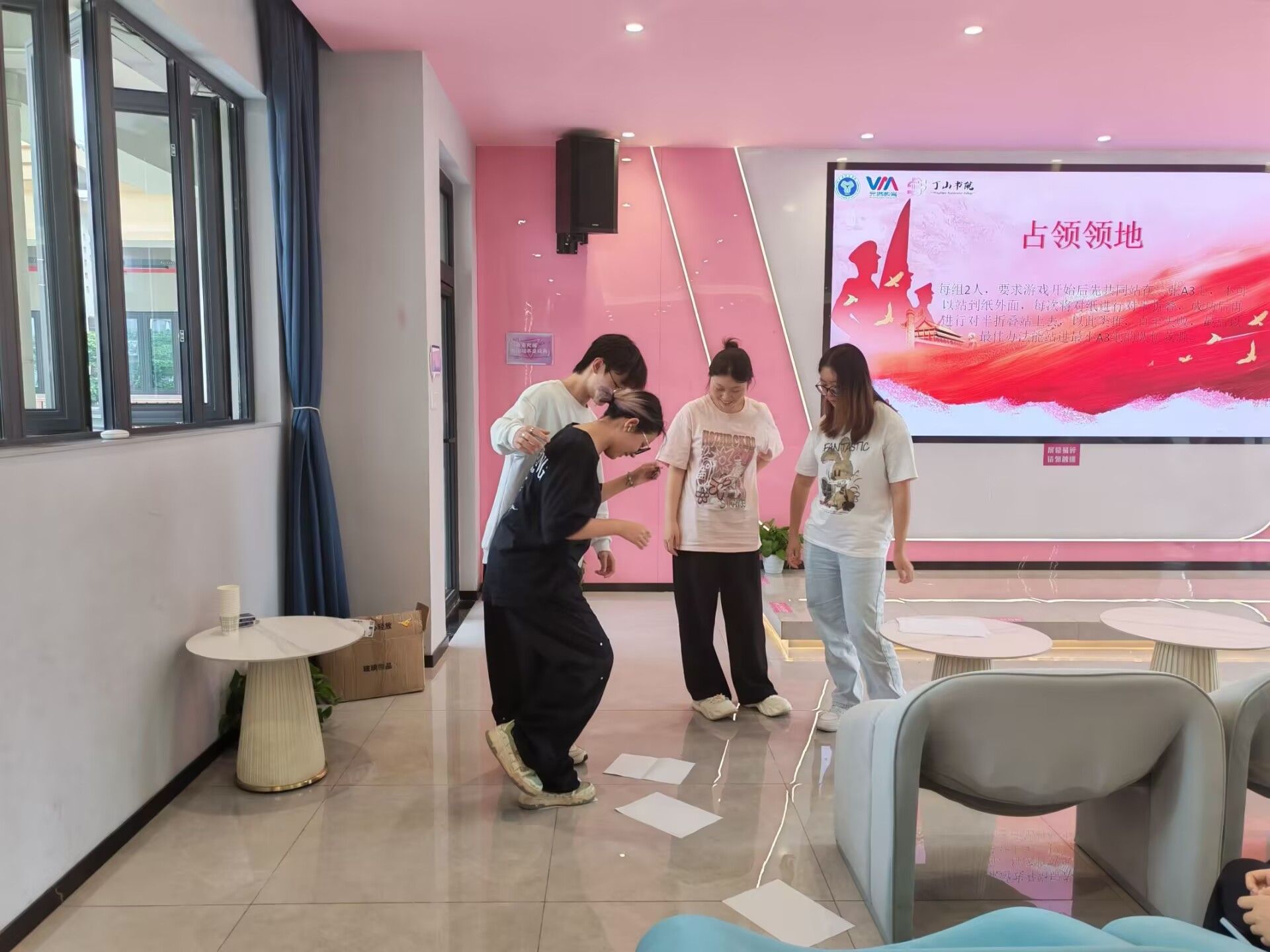 “占领阵地”“风吹草动”“真真假假”等活动也精彩纷呈。“占领阵地”通过不断折叠A4纸考验团队协作能力,对应邹进贤参与指导各地武装暴动;“风吹草动”以吹扑克牌游戏,涌出邹进贤被叛徒出卖的经历;“真真假假”则通过有趣的互动,让大家了解到邹进贤被抓捕后宁死不屈的英勇事迹。