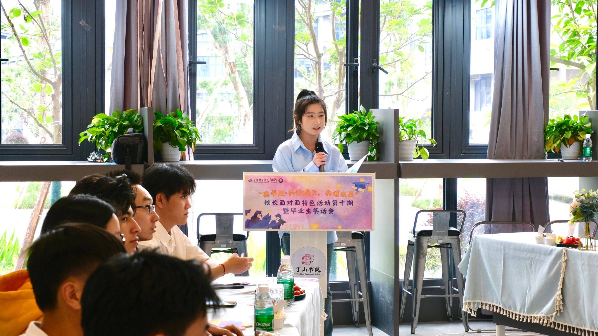 正临初夏,时清日复长,在鲜花绽放的时节,毕业季悄然来袭。2025年5月28日17:00,重庆移通学院“在书院·共话成长,共谋未来”校长面对面第十期“毕业生茶话会”于丁山书院金牛书吧顺利开展。重庆移通学院常务副校长王永周,重庆移通学院副校长孙玺,重庆移通学院副校长李文豹,重庆移通学院校长助理谢银平,学生处、校团委、教务处、基建后勤处、就业创业指导与服务中心、书院部职能部门负责人,毕业生辅导员代表以及毕业生代表,围绕着“成长,选择,未来”展开深度对话,助力毕业生顺利过渡到人生新阶段。