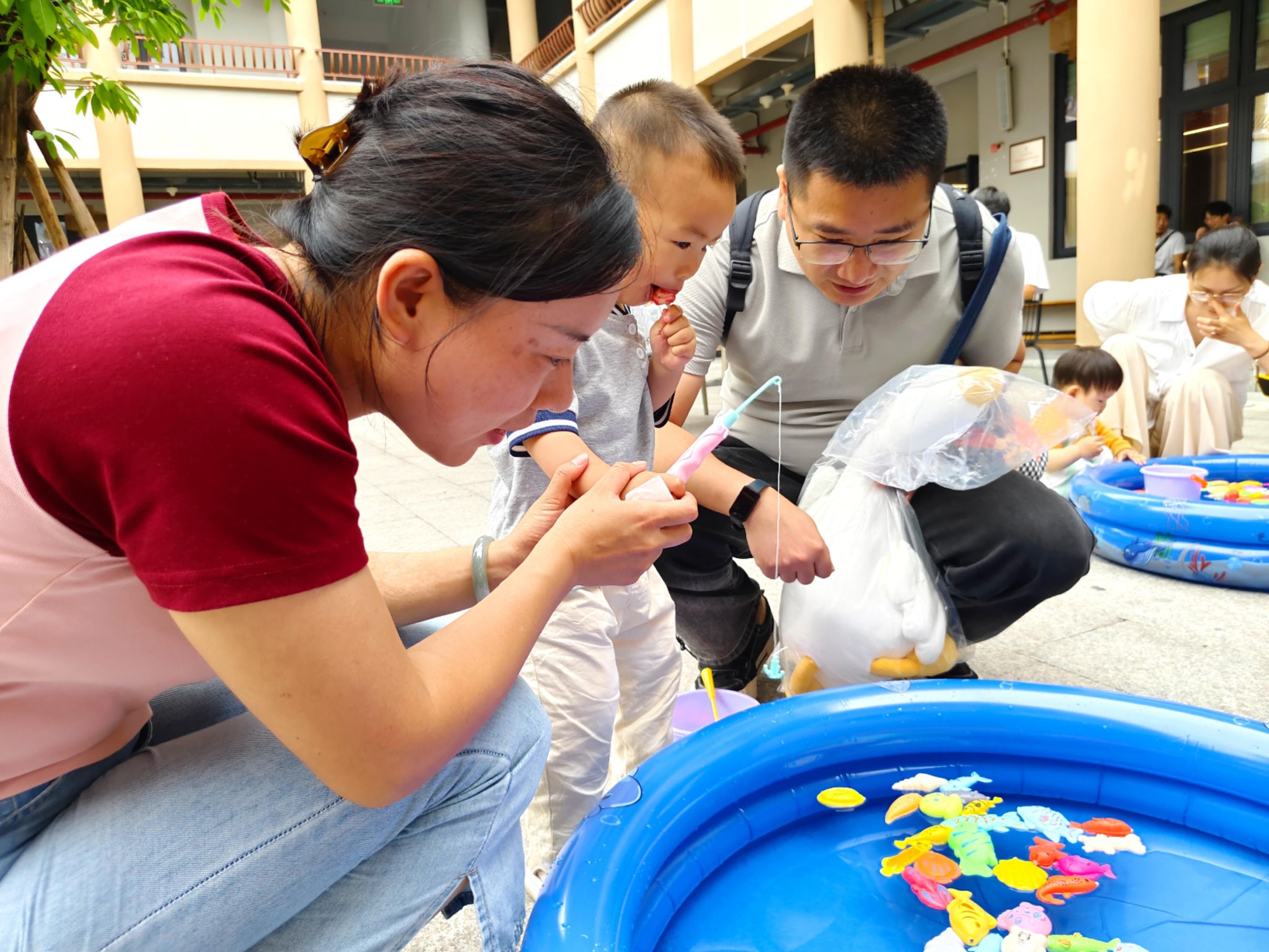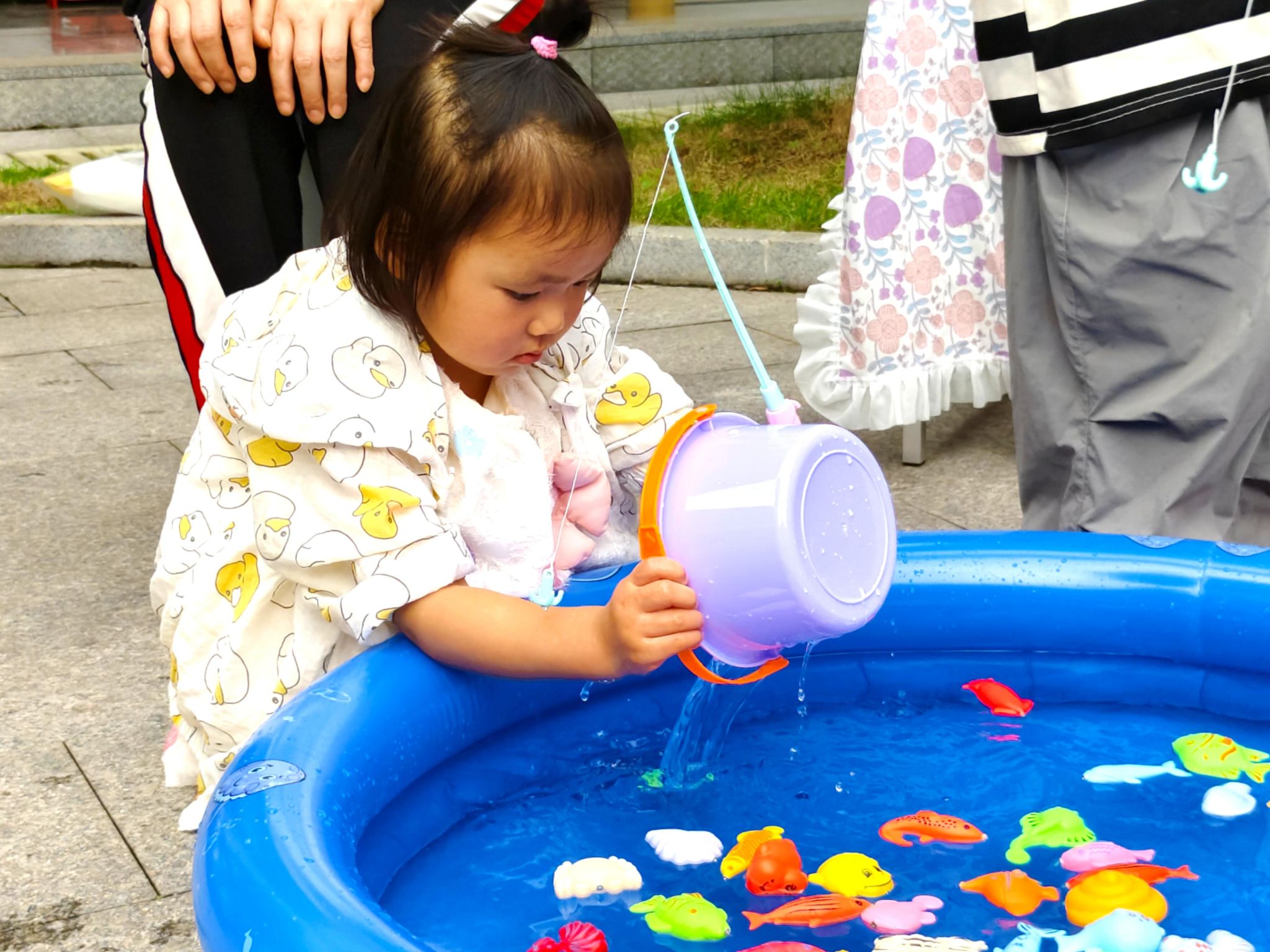 趣味垂钓池边,俨然成了小小“渔夫”们屏气凝神的竞技场!孩子们一个个紧握着小鱼竿,小脸儿绷得紧紧的,眼睛一眨不眨地盯住清澈的水面,仿佛整个世界都安静了下来,只剩下水波微漾和自己的心跳。鱼儿上钩的时候,小朋友们瞬间兴奋得手舞足蹈,高高举起“战利品”向周围的小伙伴“炫耀”,那份纯粹的喜悦极具感染力。