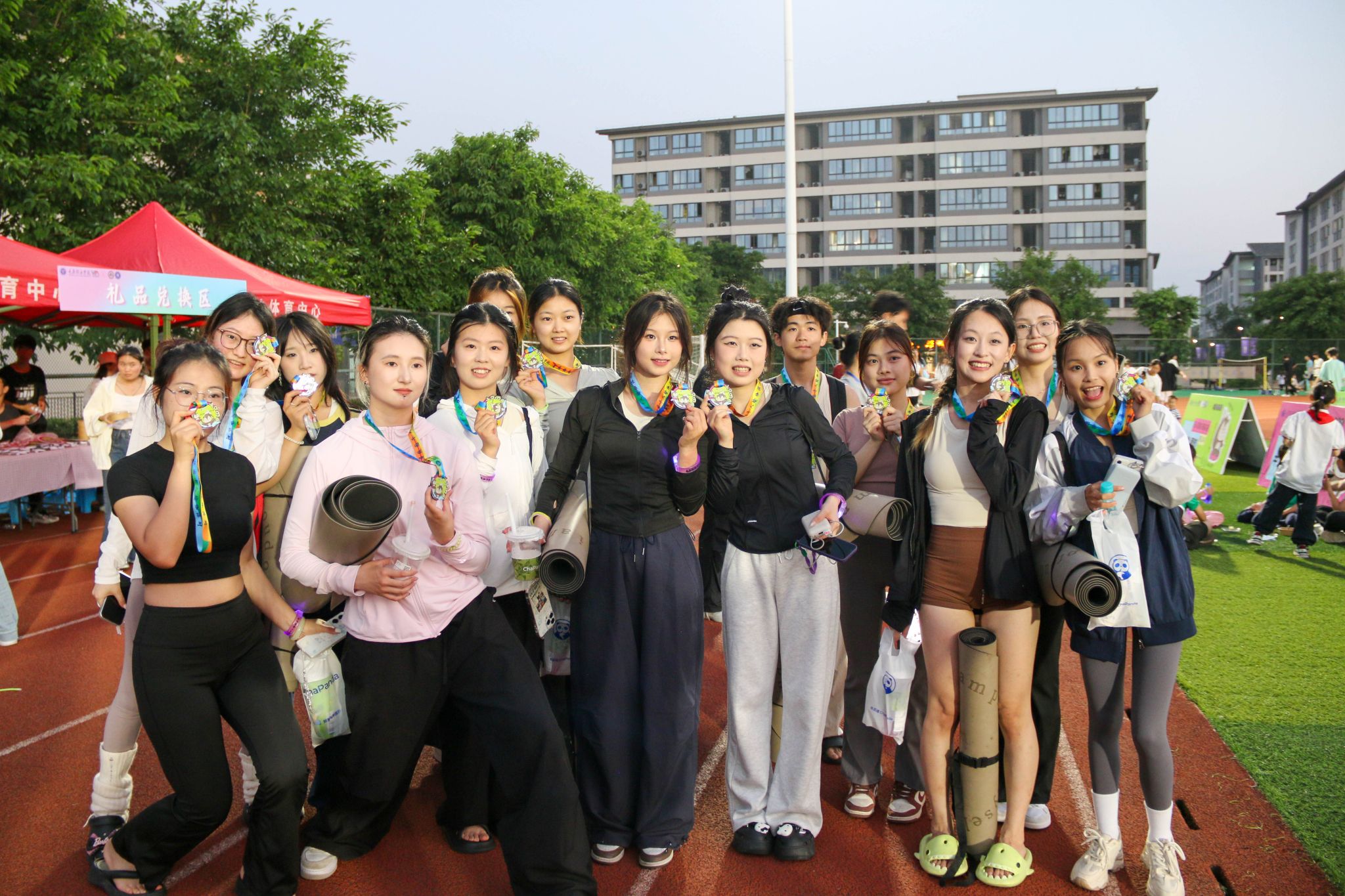 当别开生面的荧光电音与瑜伽碰撞,会产生怎样的化学反应?此时的足球场已化身荧光与电音交织的巨型活力舞台,千名学子佩戴着闪亮的荧光手环蓄势待发;伴随着燃炸全场的电音律动,现场“伽人们”首先投入到充满创意的人体荧光彩绘环节,现场瞬间变成星光璀璨的“健康能量场”,千个光点随心跳节奏变换,形成震撼的3D光谱图。亲临现场的綦江区体育中心党支部书记、副主任余洪感叹道:“这种传统瑜伽与现代荧光电音碰撞的创新形式,为同学们打造了一个欢快、动感、极具吸引力的瑜伽世界。我们期待通过这样充满活力与科技感的活动,让更多年轻人爱上运动,享受健康,收获快乐。”