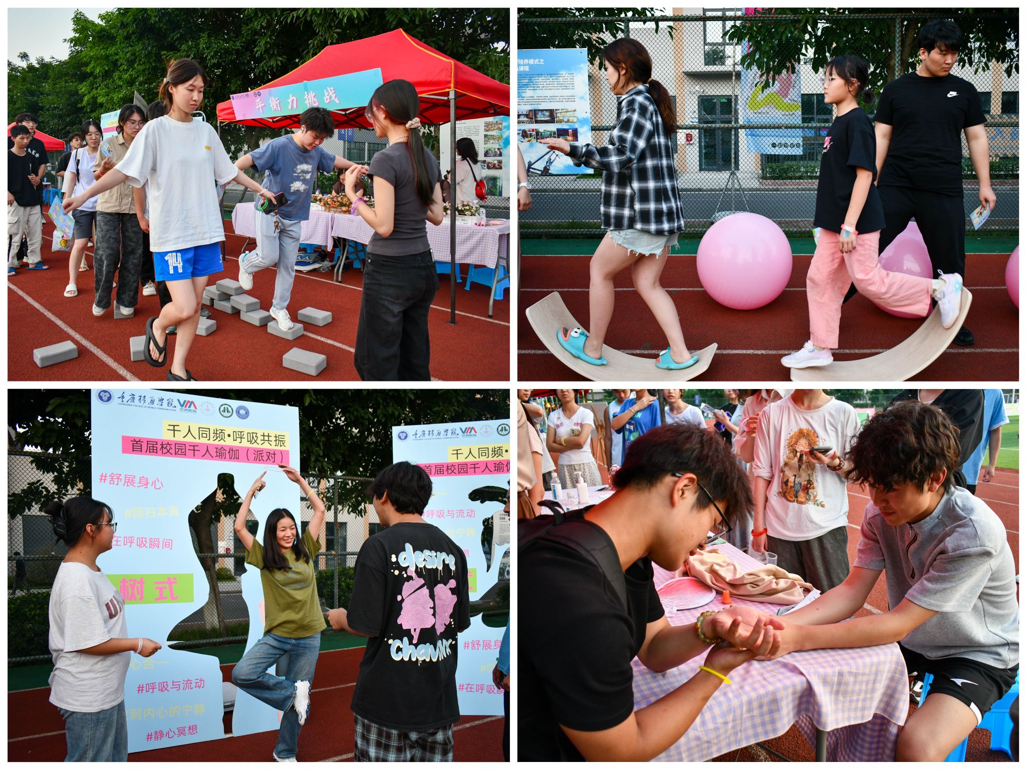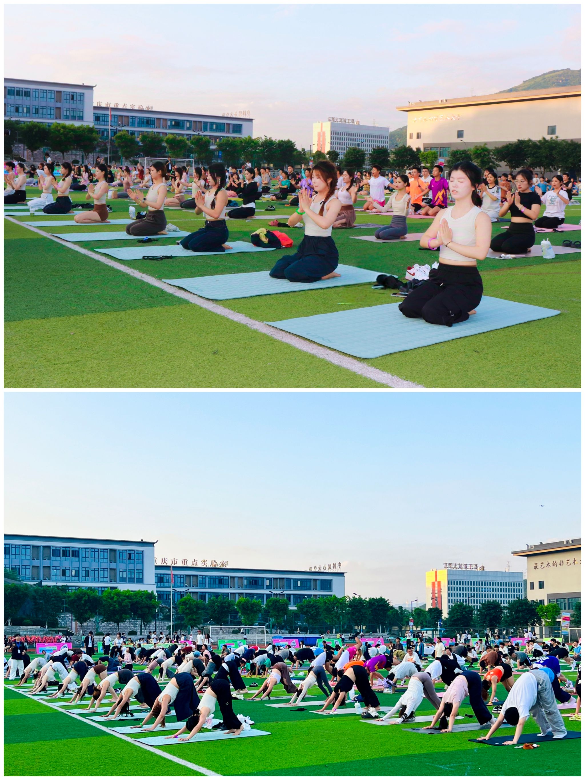 当“电音瑜伽”邂逅“健康游园”,一场悦动身心的律动派对即刻开启!为深度落实国家体育总局《关于进一步推广普及瑜伽运动的通知》精神,由綦江区体育中心指导,重庆移通学院书院部、重庆市瑜伽协会主办,大数据学院、横山书院承办,校瑜伽代表队、美食协会协办的“千人同频·呼吸共振”首届校园千人瑜伽派对于6月4日在重庆移通学院(綦江校区)足球场热力开启。在电音律动与正念呼吸中,校园绿茵场瞬间变身“能量磁场”,本次活动以 6.21“国际瑜伽日”为契机,以沉浸式瑜伽体验+健康游园会+文化科普长廊”等仪式化场景重构校园健康文化生态,通过活动疗愈破解青年健康困境,助力全民健康目标落地校园,让健康运动真正融入校园生活。