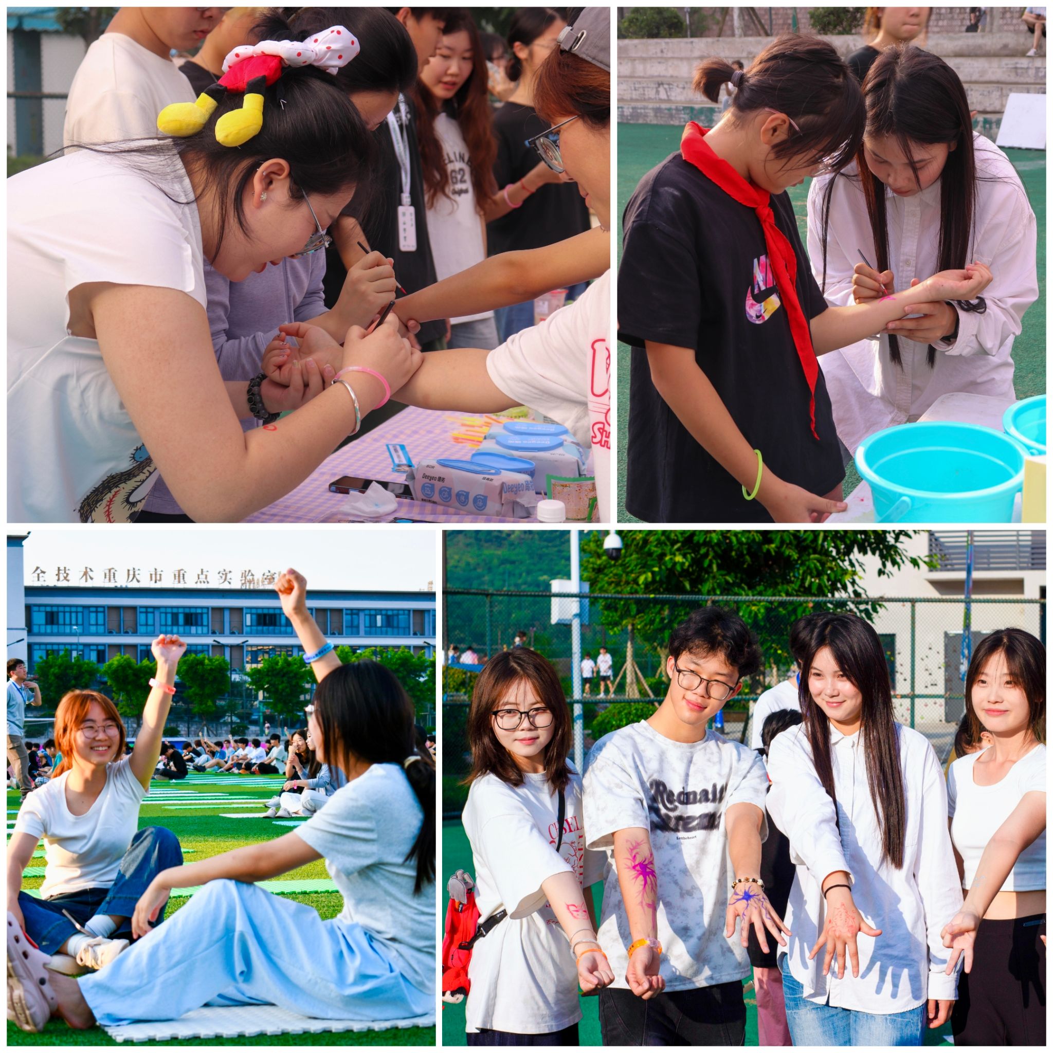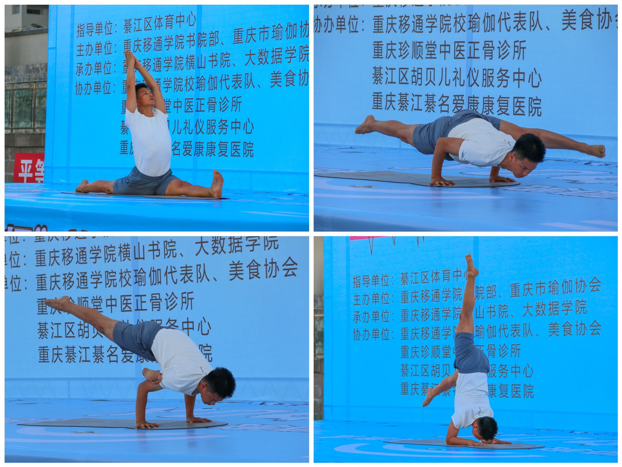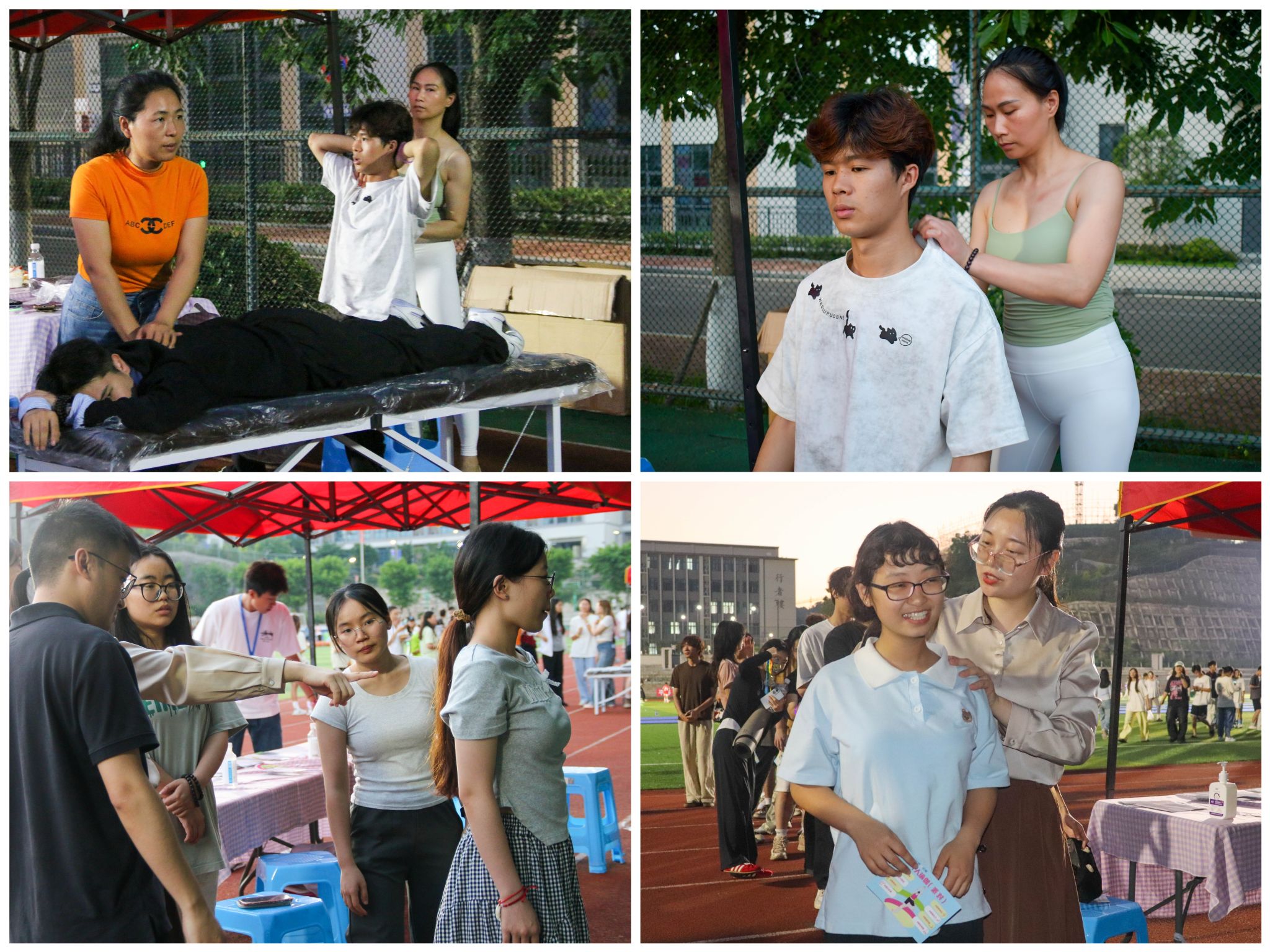 转场间,“花样瑜伽游园会”以五维生态重塑健康认知,[瑜伽科普长廊]破除认知壁垒,以时空隧道形式呈现从古印度哲学到现代运动科学的瑜伽演变;[体态健康筛查站]变身迷你问诊间,綦名爱康康复医院专家运用脊柱模型为学子定制体态矫正方案;[中医正骨体验区]重庆珍顺堂中医正骨诊所专业医师手法惊艳,在指尖轻旋间化解肩颈僵直,学生直呼“像卸下十斤书包”;胡贝儿礼仪服务中心的导师强势加盟[瑜伽体式挑战墙],通过瑜伽球平衡行走、瑜伽砖叠高塔等趣味项目,带领参与者在跌倒与重试中强化核心力量。现场交织成动态健康生态圈,学子们在通关集章中解锁体态管理技巧、中医智慧与营养新知,将游园化作一场立体化的健康启蒙之旅。