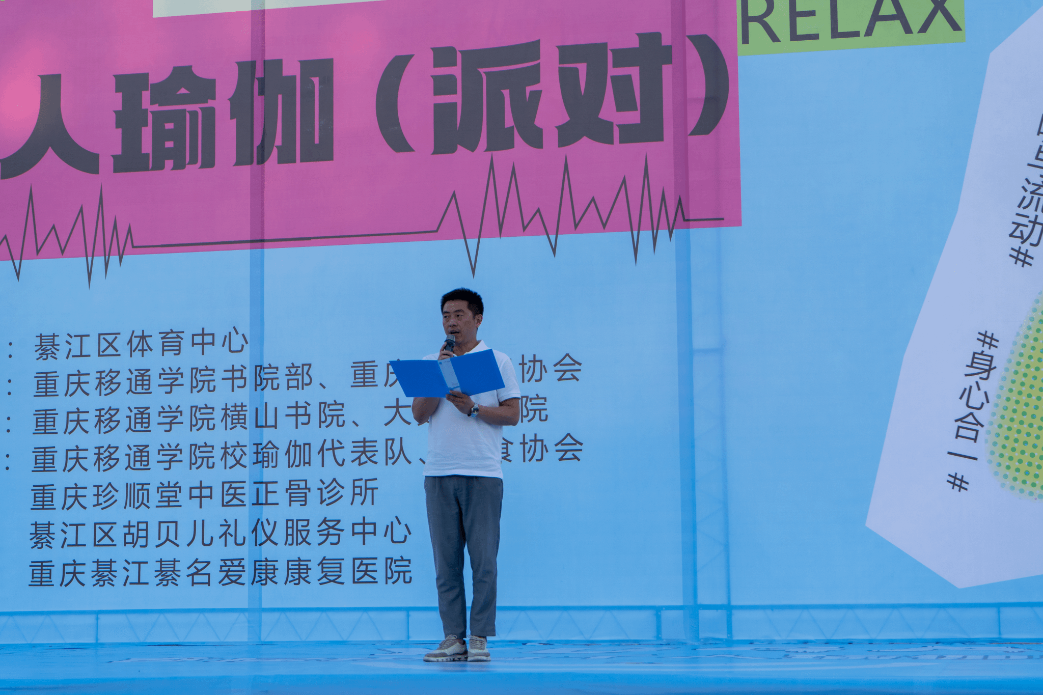 “作为主办方之一,我深感荣幸能与重庆移通学院携手举办这场洋溢着健康与活力的盛会。同学们,健康绝非一时的热潮,而是需要日复一日的坚持。今夜,我们在呼吸间寻得内心的平静,在体式中收获身体的力量。但我更期待,这份独特的体验能成为大家未来生活的新起点,让瑜伽的智慧融入日常,让运动的习惯伴随终身。”