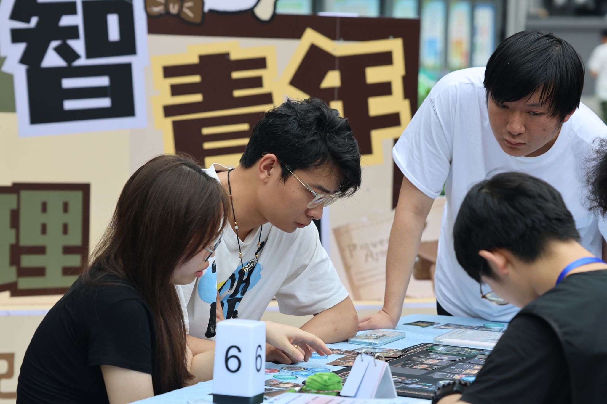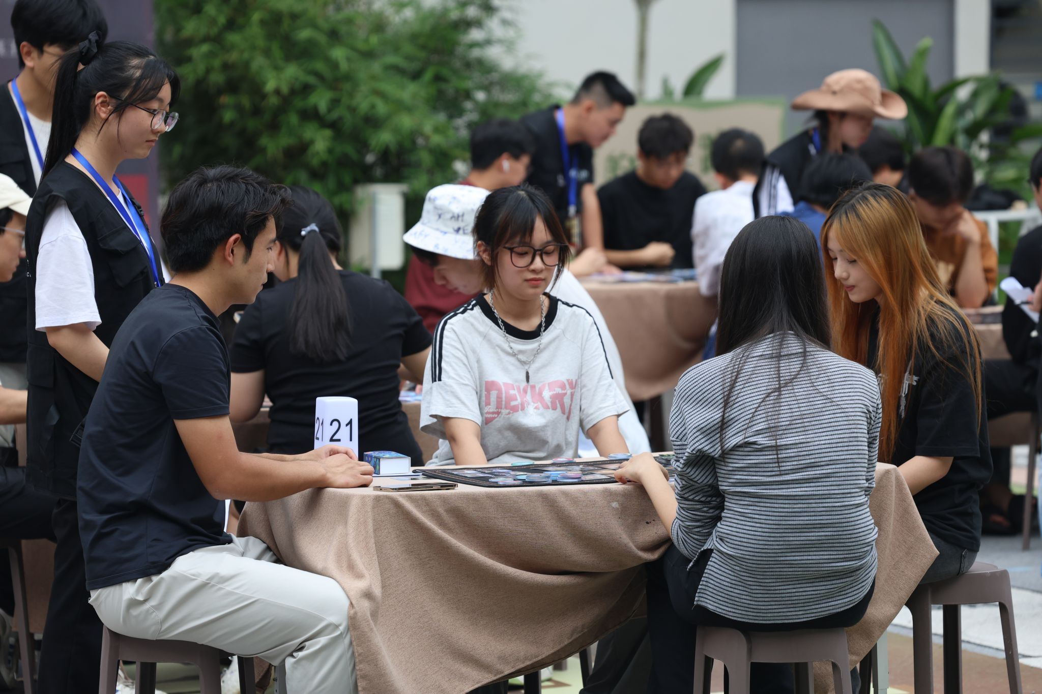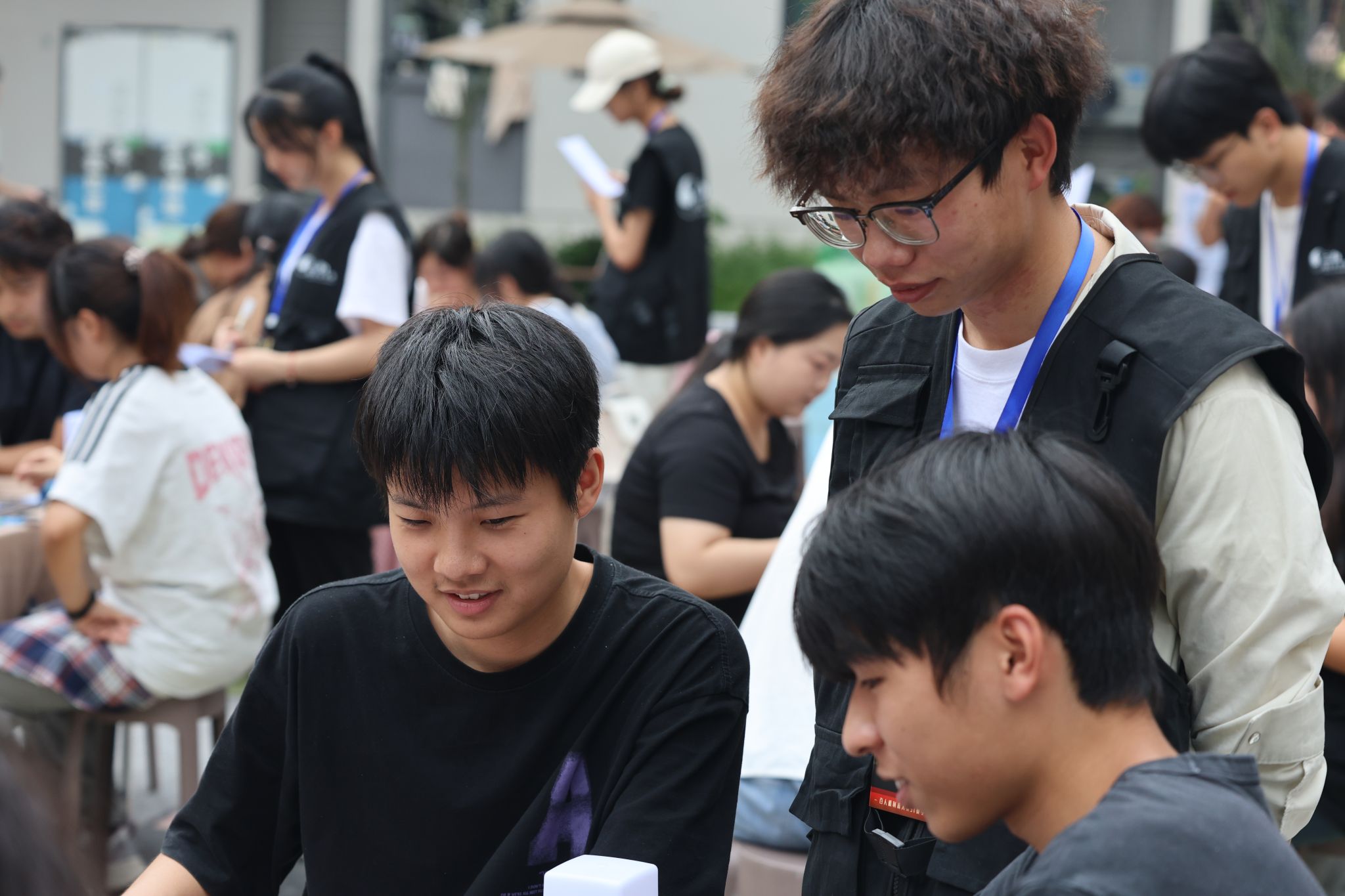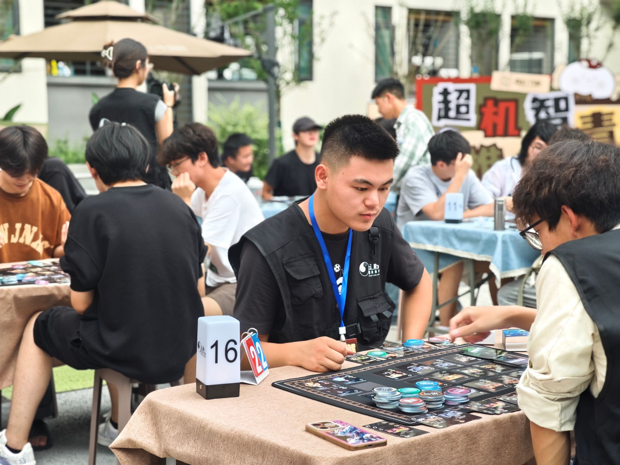 6月4日16:30,百人海选在南江书院中庭正式开启。比赛现场热闹非凡,144名参赛选手分成36个小组,全身心投入到紧张刺激的《商海争锋》桌游对决中。