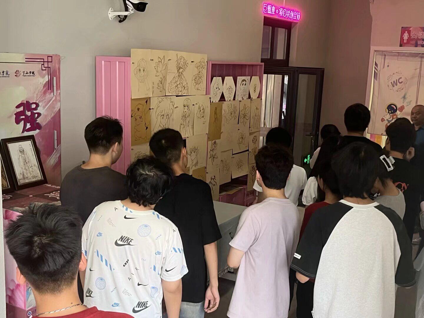 栩栩如生的花卉跃然纸上,现代潮玩与二次元浪潮结合,书院IP的Q版形象活灵活现,老手艺在年轻创作者的巧思中抽生出鲜嫩枝桠,四次实践课程的精美作品展览在巨蟹座·项目共创空间的外墙上,为此次参与课程的同学们提供了创作灵感。