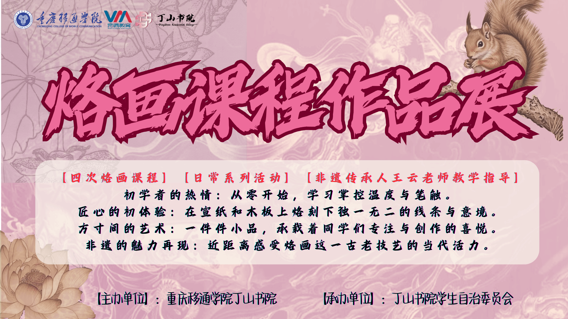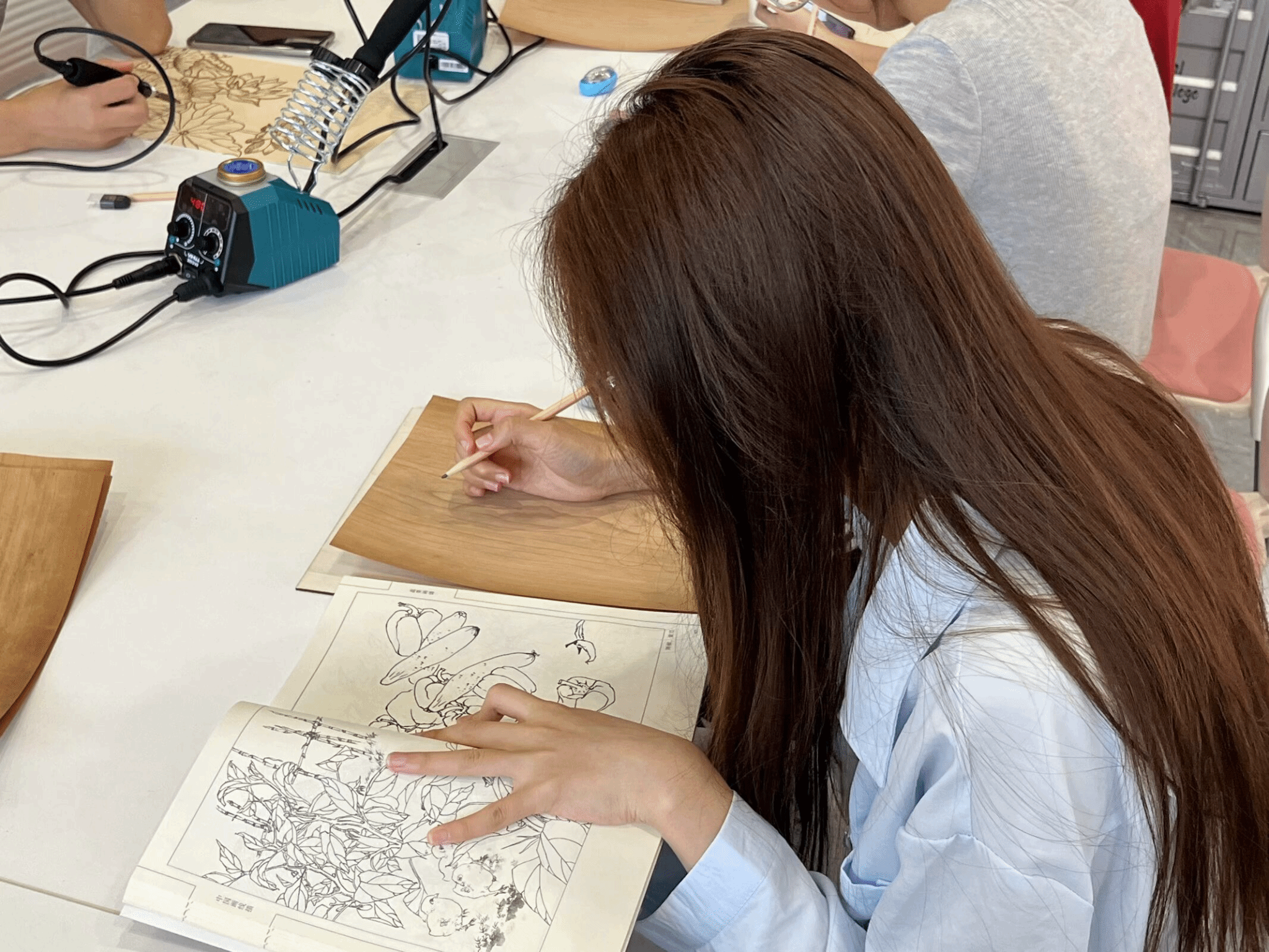 为营造浓厚的书院朋辈交流氛围,加深书院学子对传统非遗文化的认知与热爱,同时增强学生的认同感、归属感和价值感,丁山书院联合綦江区非遗烙画传承人王云老师策划并举办了“传承千年·烙画守护计划”系列课程。以烙画艺术为核心,共开展四期课程,通过沉浸式体验与深度创作,带领学子感受传统技艺与现代校园生活碰撞出的奇妙火花。