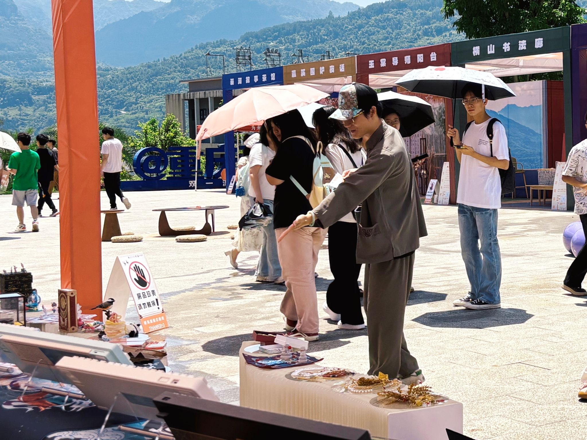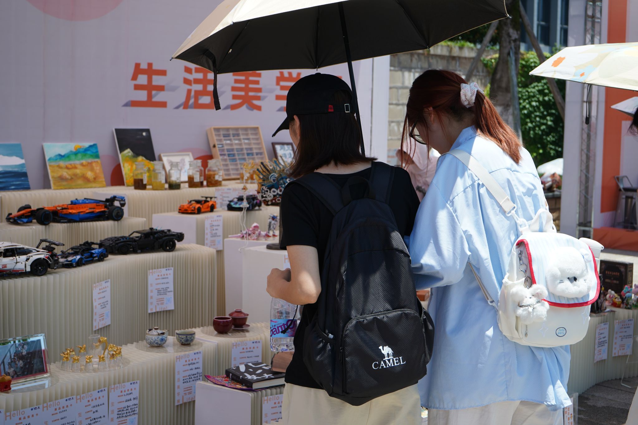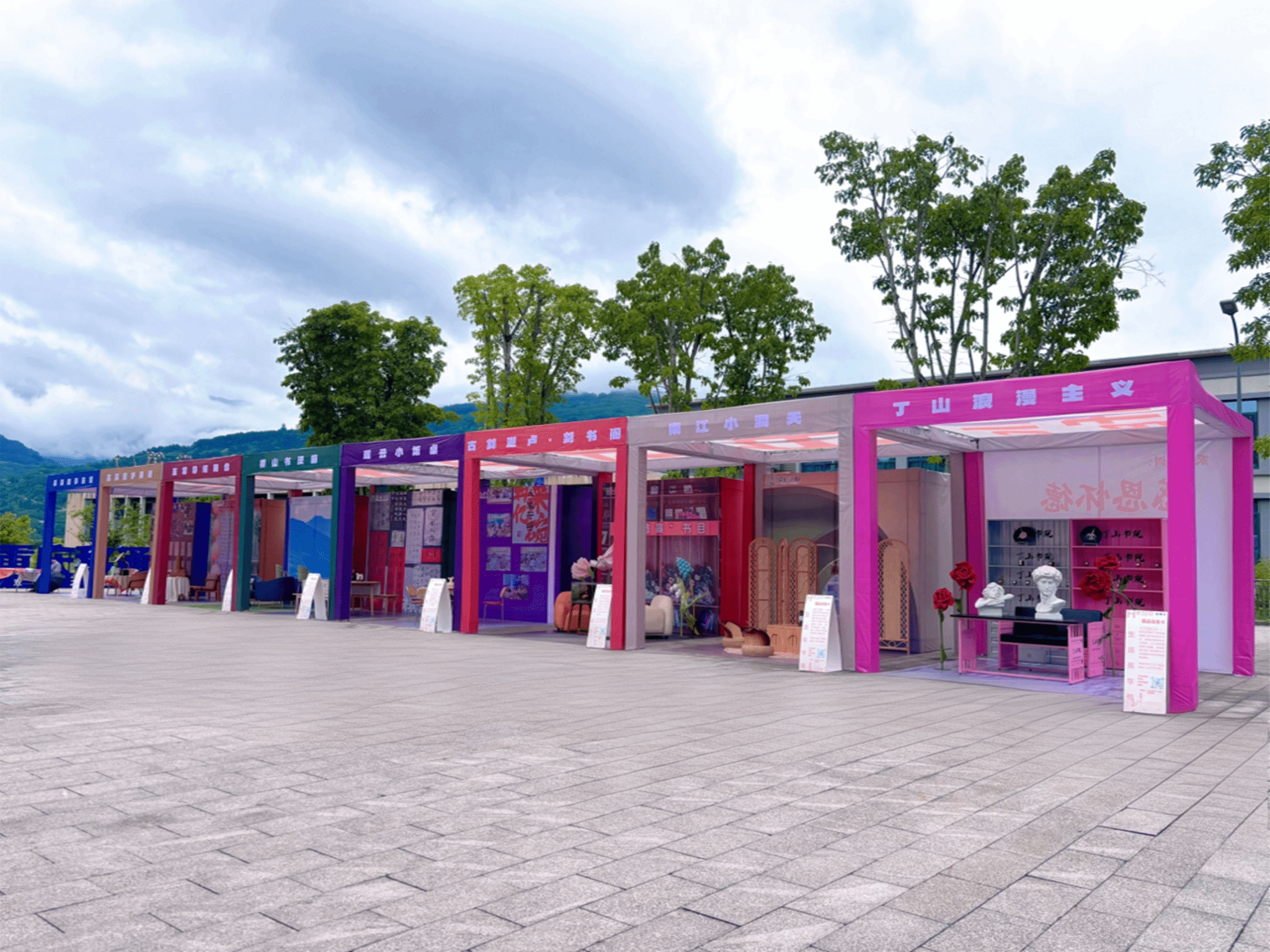 为匹配师生观展需求,本届展览从书院后街600㎡空间迁移至图书馆前1600㎡广场,以“双轴四区”布局构建生活美学体验场。