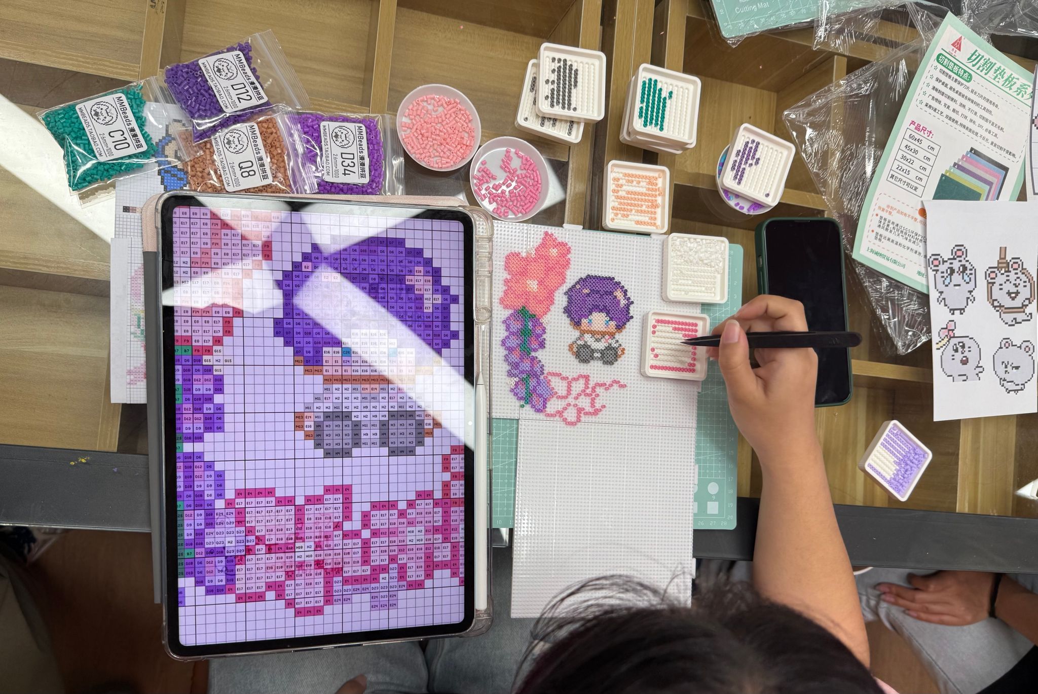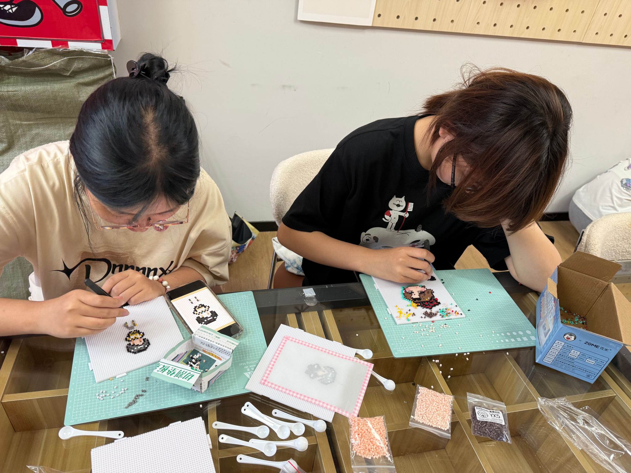 拼豆豆源自欧美的手工艺术,通常用各色塑料豆豆拼出图案,再通过熨烫固定成型的创作方式。在课堂之外,同学们通过这种形式释放压力、激发创意,同时锻炼了专注力和耐心。每一粒豆子的精准摆放,都是对细致与坚持的考验;每一个独特设计的诞生,都是个性与审美的表达。这种寓教于乐的方式,让玉棠书院的文化浸润自然而然地融入校园生活。