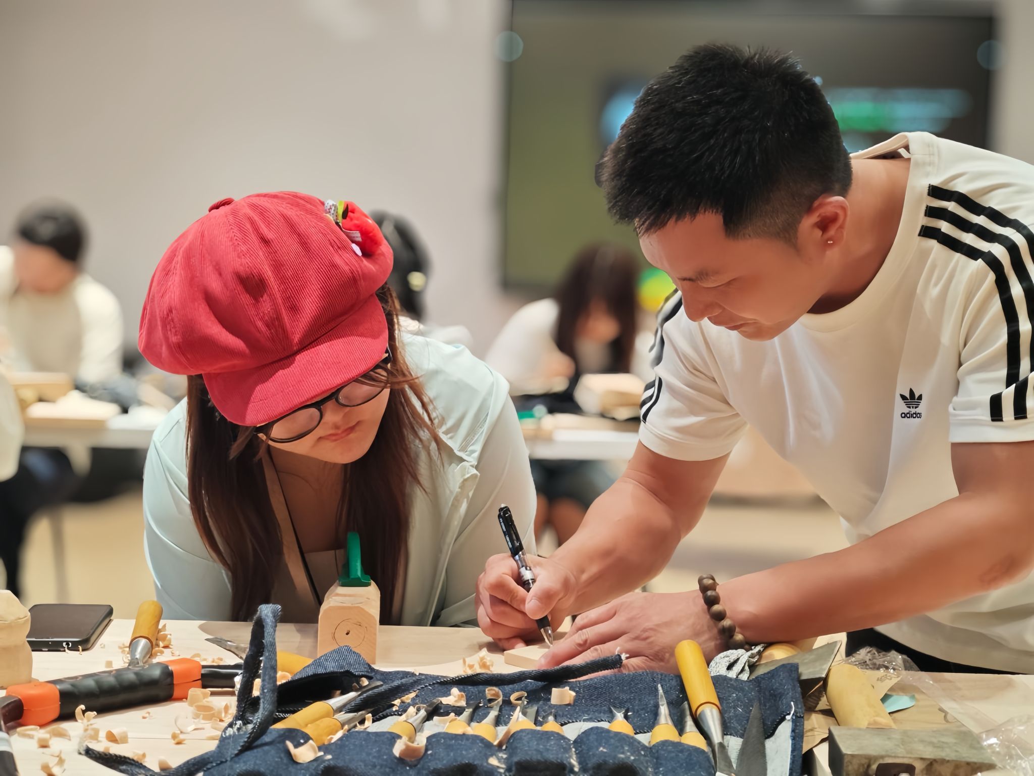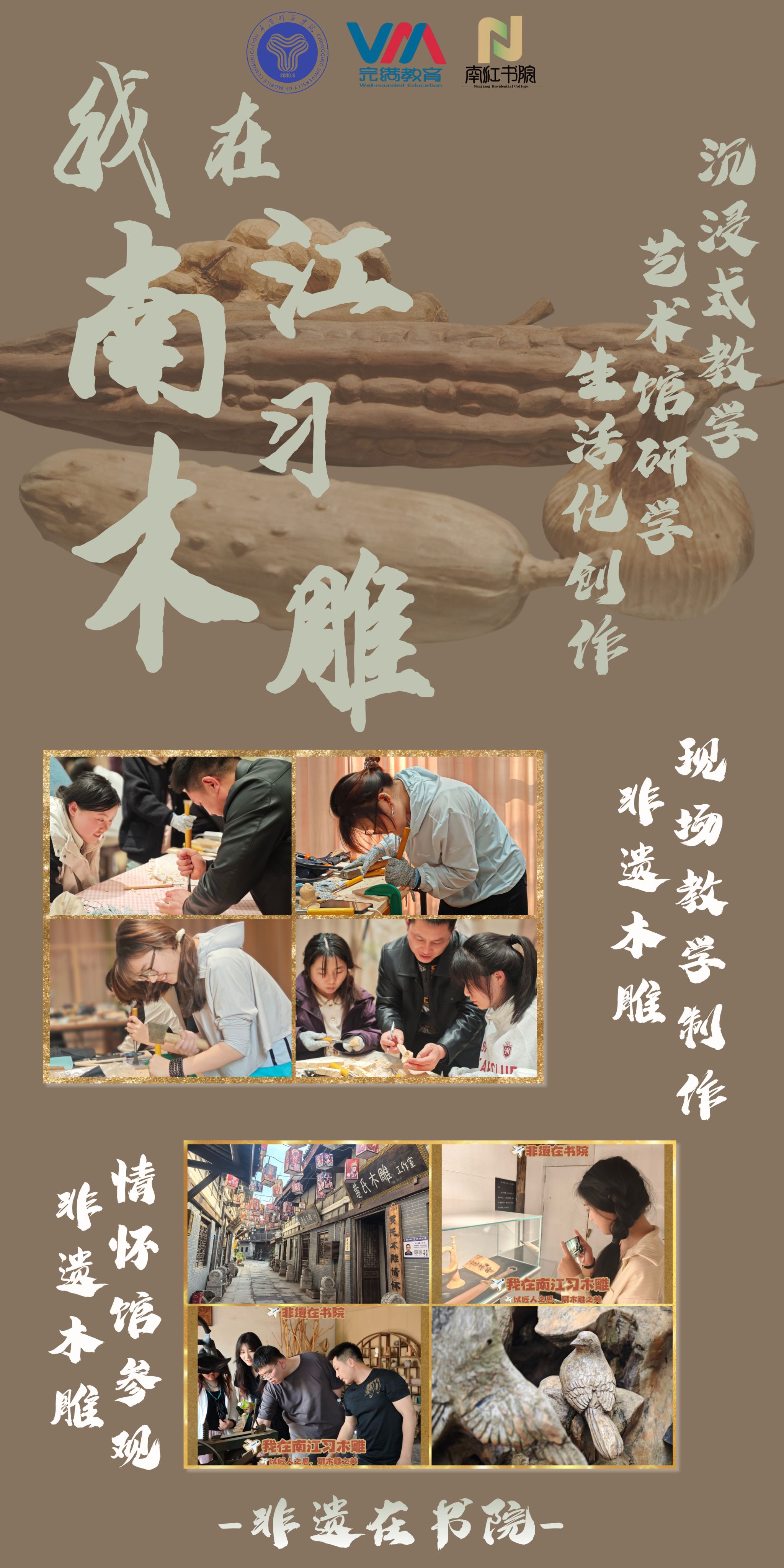 在科技与多元文化交织的时代,南江书院以“沉浸式课堂+艺术馆研学+生活化创作”三维教学模式,为木雕非遗传承注入新活力。沉浸式课堂通过还原传统木雕场景,让学员身临其境感受技艺精髓;艺术馆研学则依托在地资源,带领学员拓宽视野,汲取艺术灵感;生活化创作鼓励学员将木雕融入实用品设计,搭建传统技艺与现代生活的桥梁,助力木雕文化在当代焕发新生。