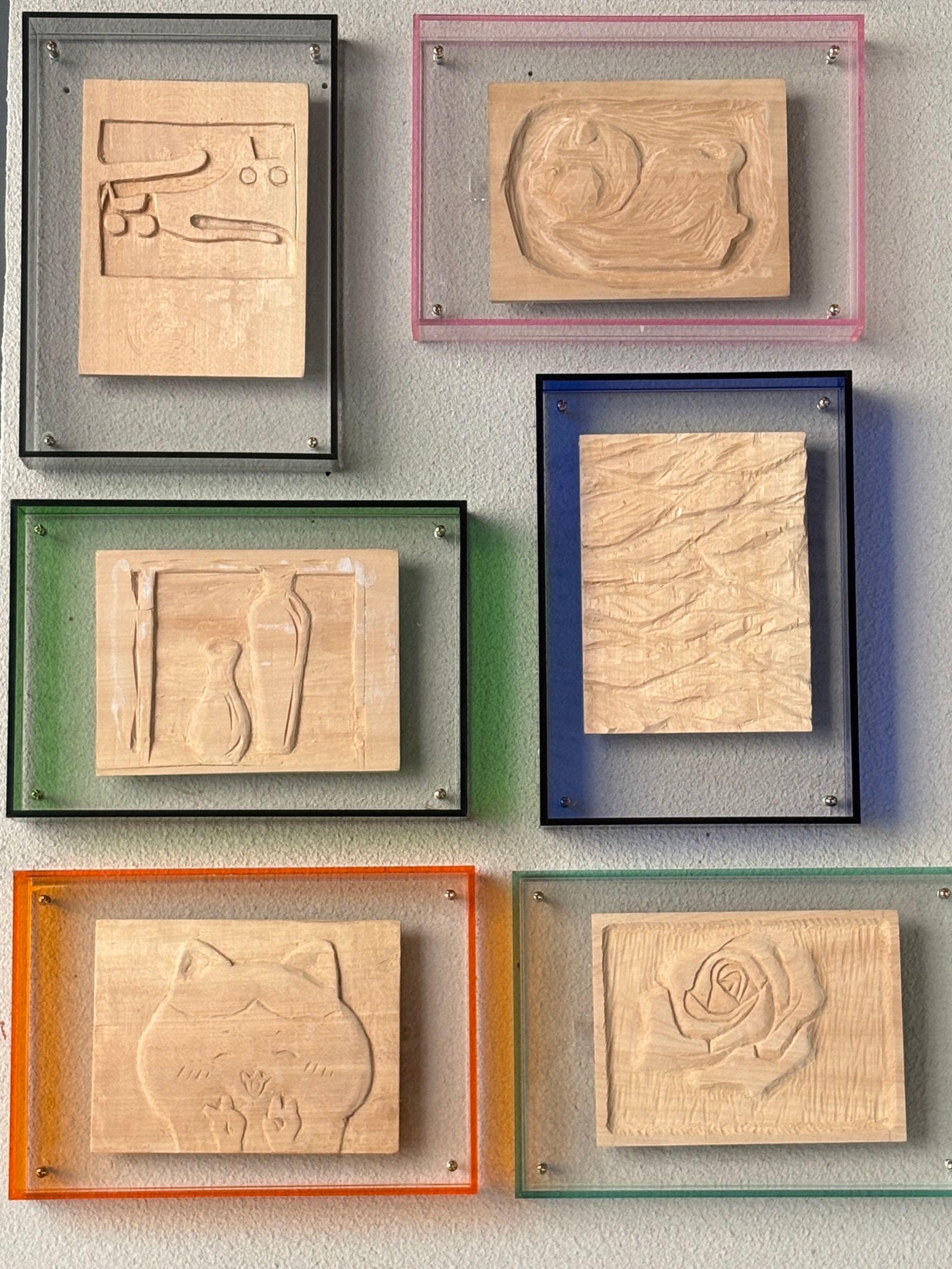 本学期课程以每月两次的节奏展开,从基础雕刻技法入手,逐步引导学员实现从装饰艺术到生活美学的跨越。初期以小型装饰画为切入点,学员在斜刀与木纹的对话中,掌握线条勾勒与纹理处理;中期课程转向实用性物品创作,如木制摆件、勺子等,学员的作品逐渐兼具审美与实用价值。一学期下来,学员从生疏到娴熟,最终呈现的作品不仅记录了个人的成长,更见证了传统技艺的薪火相传。