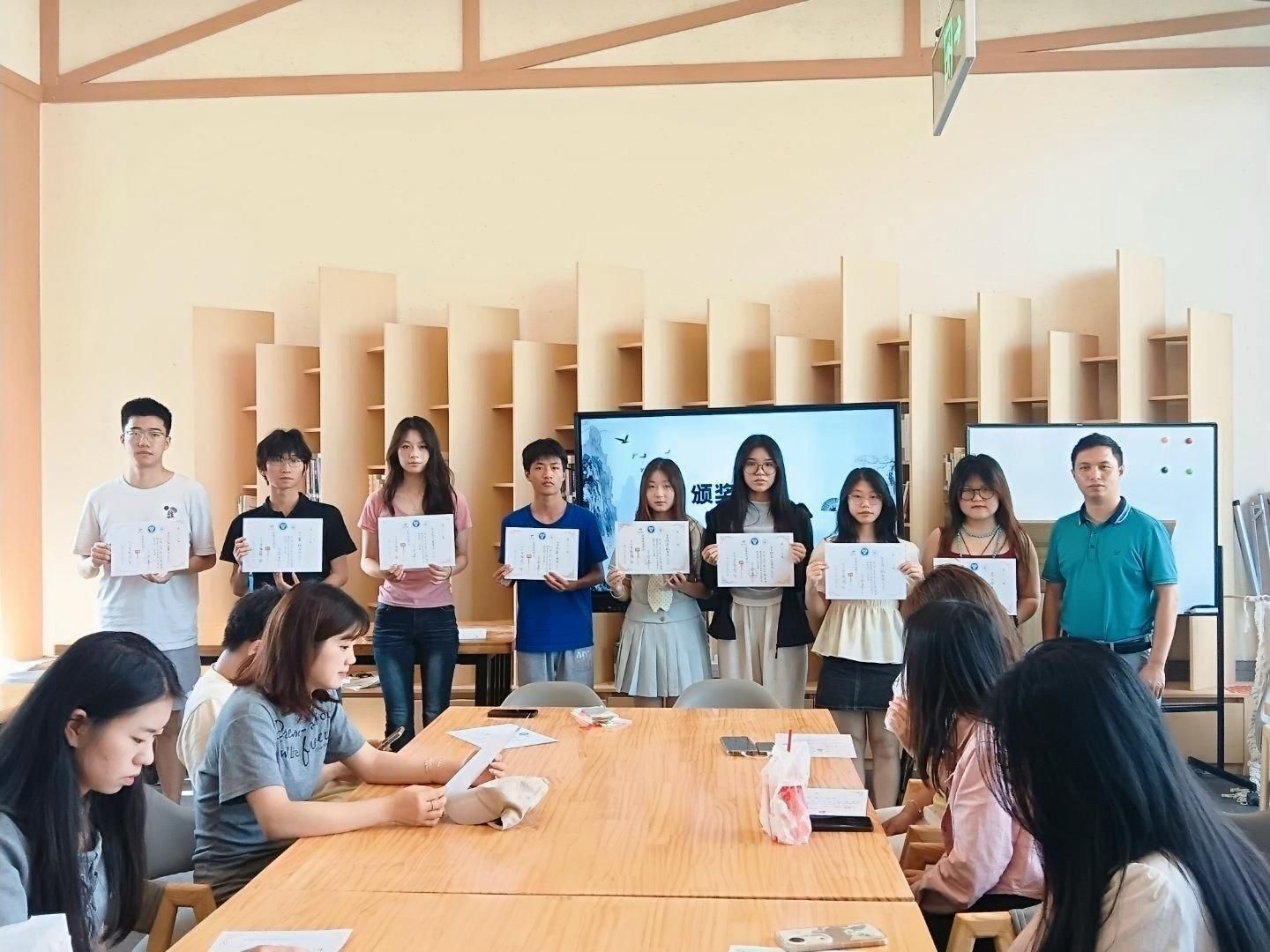 随后,李楠琦老师与地域文化与城市发展研究院彭浩老师共同为徐晨豪、唐炜清、余孟兰等28名学员颁发结业证书。拿到证书的同学们难掩激动之情,2023级动画专业的白樱琪同学分享到:在书法工坊的学习经历是一段宝贵财富,不仅提升了书法技艺,还培养了自己的耐心和毅力。