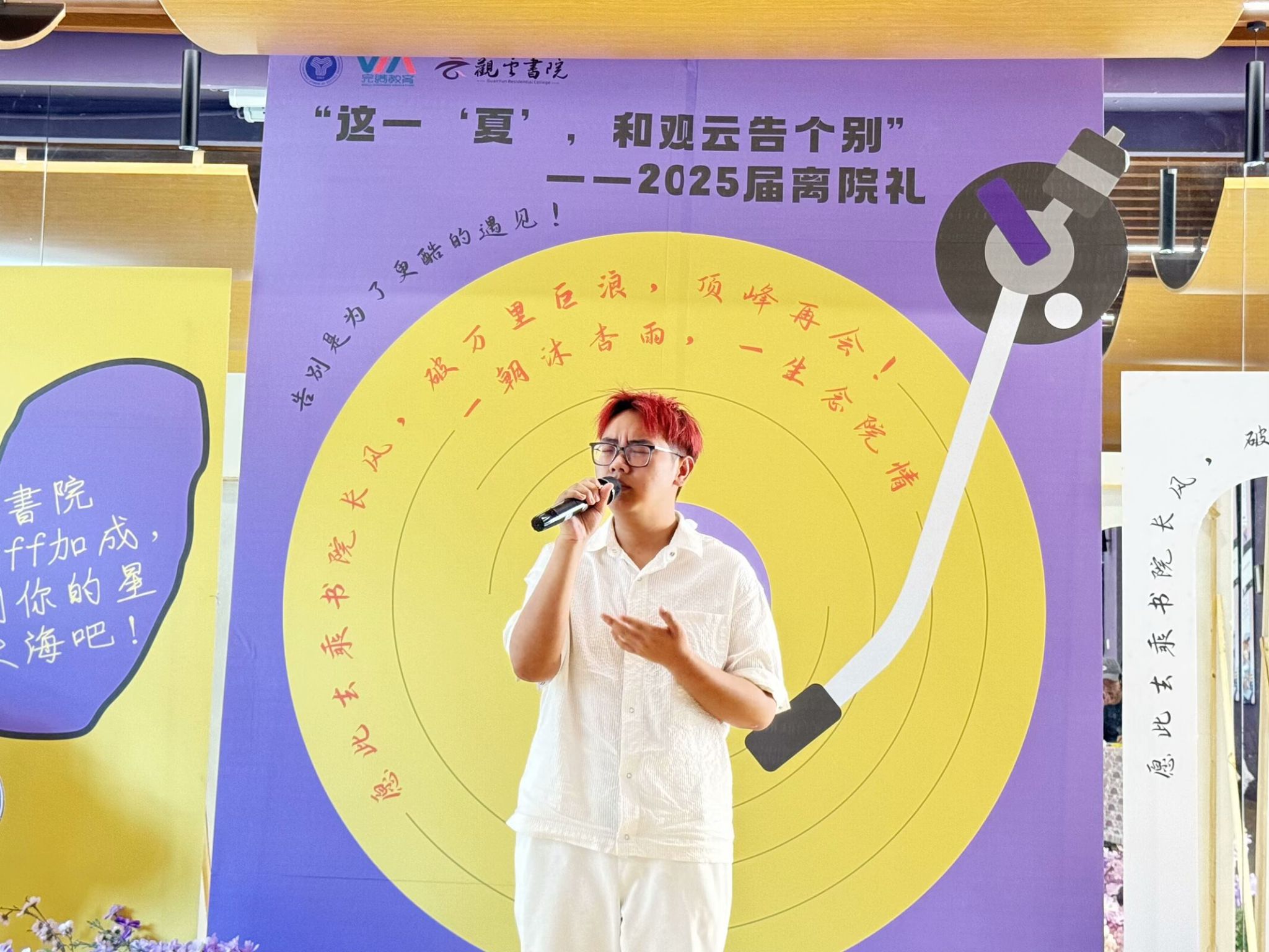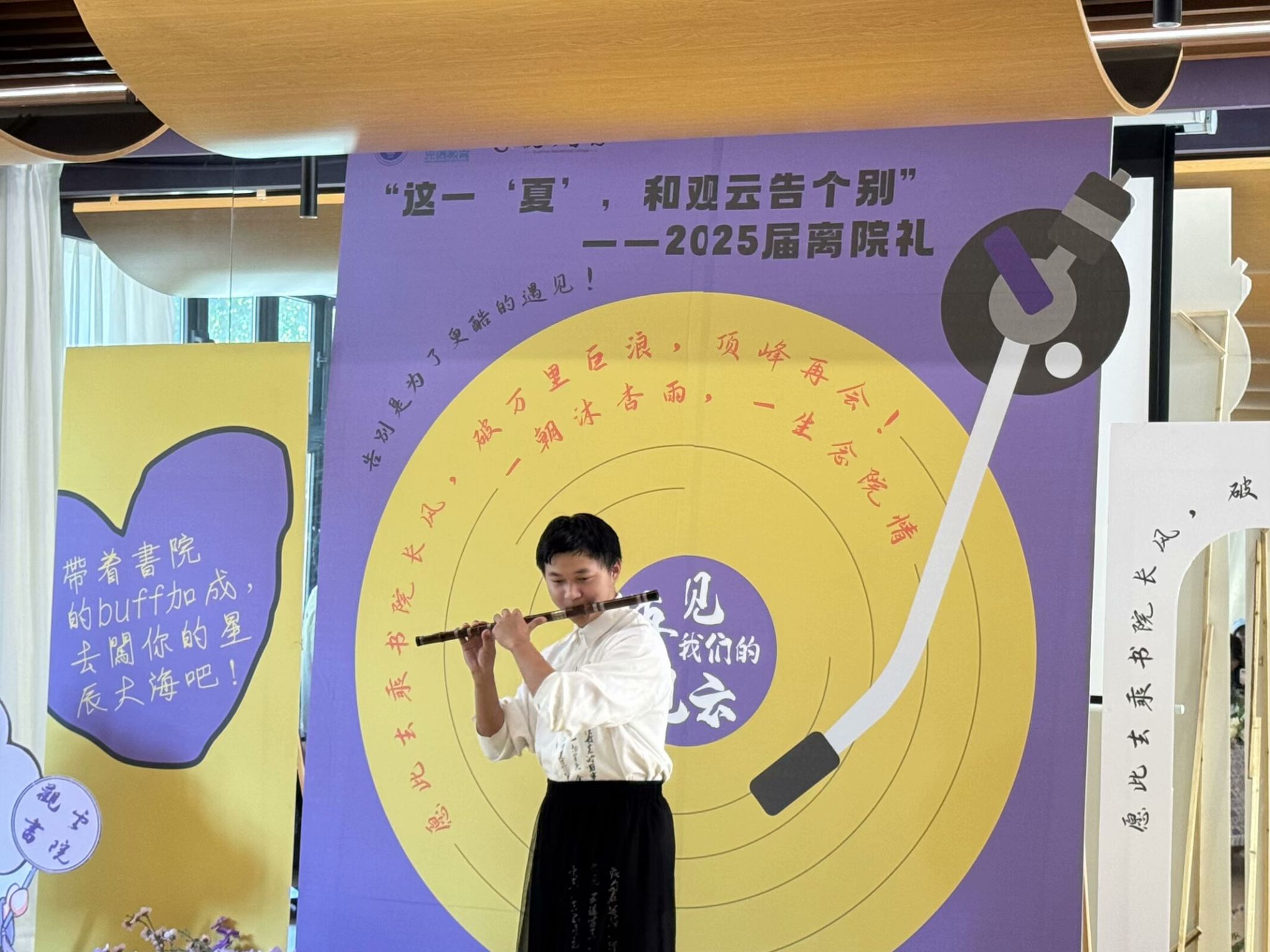 整场音乐会上,古典与现代的碰撞交融,不仅映射着书院学子的集体记忆与青春共鸣,更象征着书院精神在传统智慧与时代活力的激荡中生生不息、薪火相传。这些表演不仅展示了观云学子的才华,也体现了他们对未来的憧憬和信心。立足当下,我们对即将踏上新征程的学子们寄予厚望,愿他们带着在观云书院收获的知识和友谊,勇敢地追逐梦想,开创属于自己的辉煌未来。