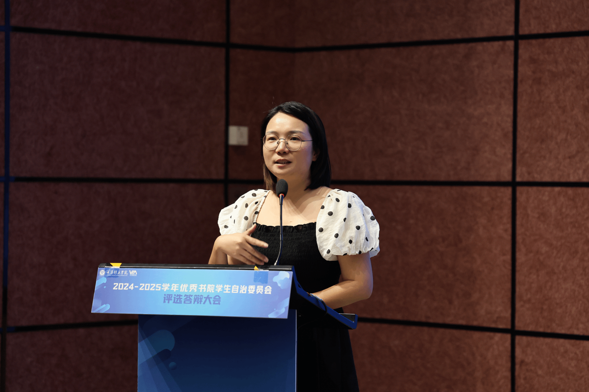 书院部部长曹玉姣表示从去年答辩的PPT汇报到今年融入视频、音乐与创新答辩方式的破圈呈现,各书院这一年的每一步成长都镌刻着团队的坚守——活动数量与质量双提升的背后,是师生用匠心深耕细作的温暖印记。她特别点赞这份“淋漓尽致的风采升级”,并对答辩学子提出通过脱稿、高度凝练提升汇报效果的建议。
