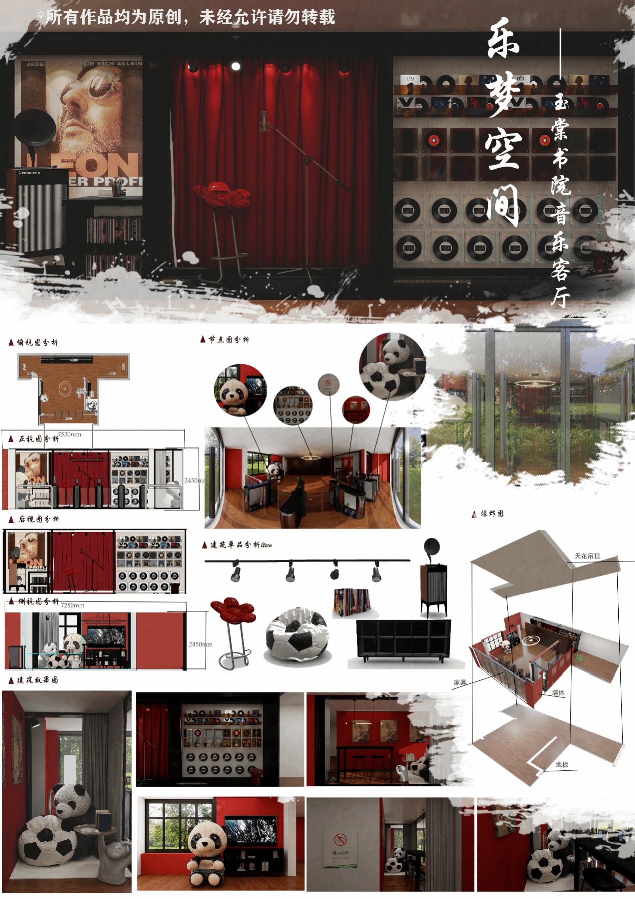 玉棠书院“乐梦空间”音乐客厅:雾屿林涧队、横山突击队深入洞察学生对音乐的热爱与需求,精心规划了音乐演出区、交流区以及个人疗愈区等功能区域。这一方案不仅满足了学生对音乐的多元需求,还为音乐爱好者提供了一个全方位的音乐交流与体验平台。