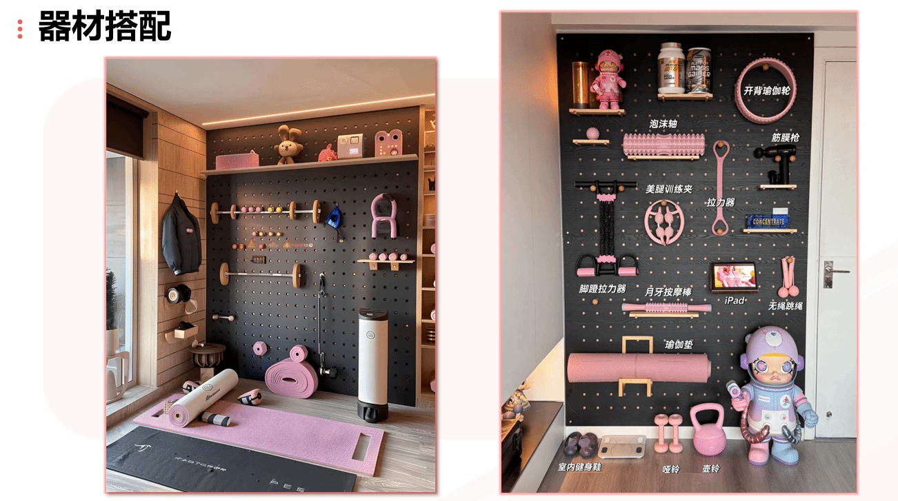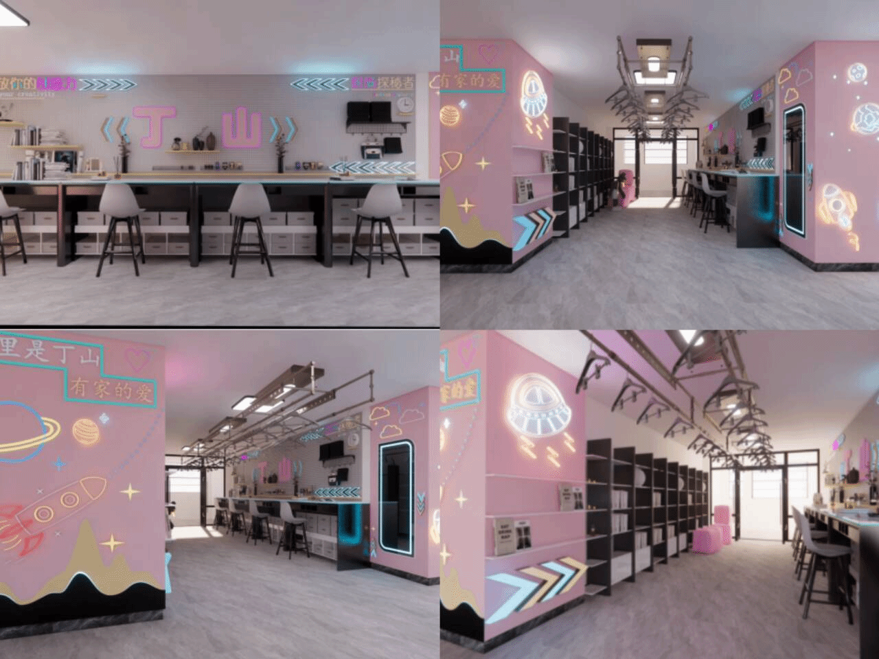 丁山书院风尚雅集客厅:八方来财队、丁山喵喵屋队另辟蹊径,通过探店分享板、磁吸穿搭镜、积木洞洞板、赛博生态墙这四大板块,对传统书院走廊进行功能重构。这一方案不仅提升了空间的实用性,还为同学们提供了一个展示自我风格与创意的平台。