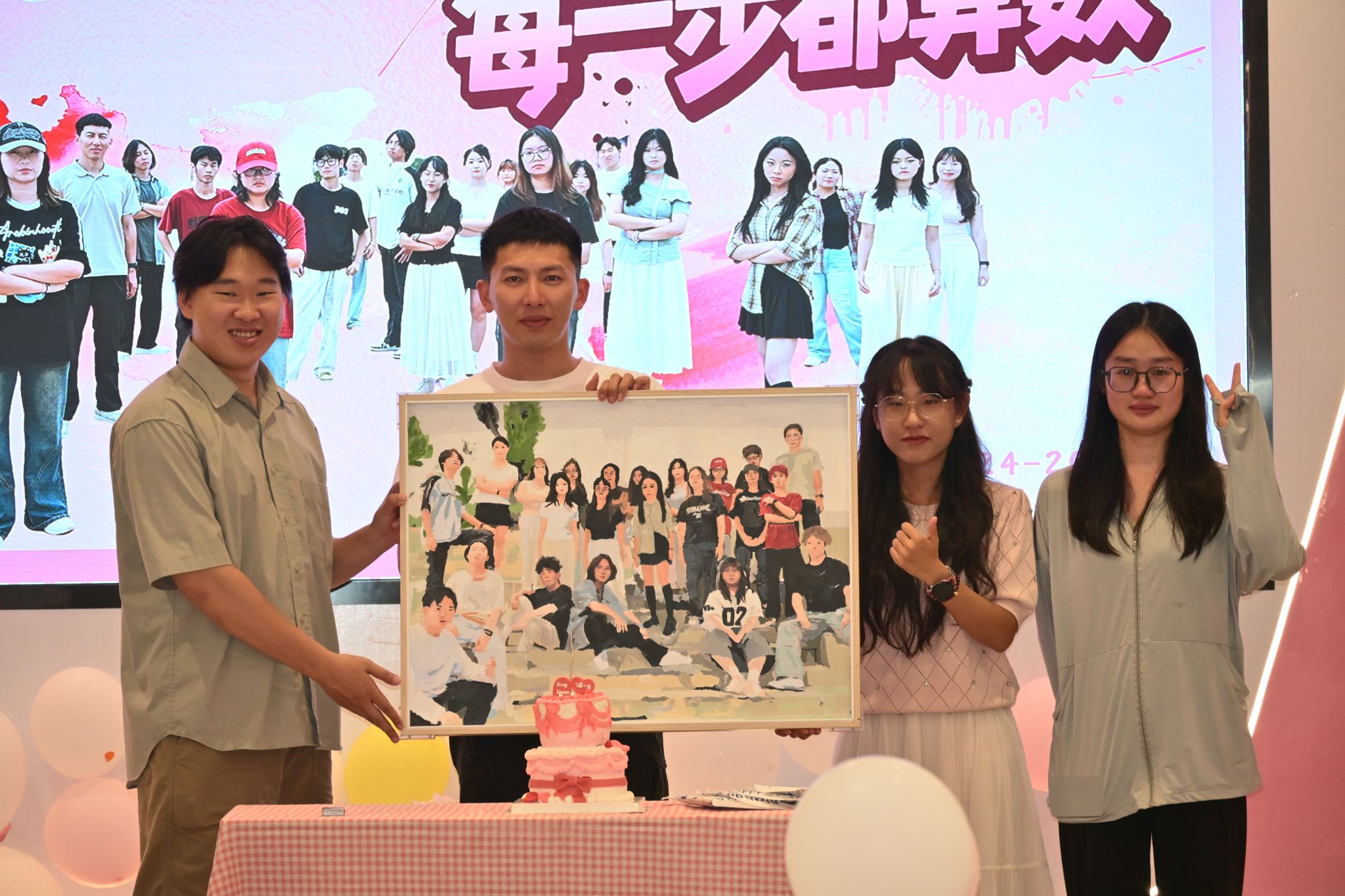 最动人的馈赠,往往源于双手的温度。由大家用“卷纸”亲手制作的永生花,部长主席们亲手绘制的一幅“书院全家福”,赠予丁山书院与老师们,这份以艺术封存的情谊,厚重无言。综合办公室主任赵锦阳老师接过这份深情,以恳切话语寄语未来:“每一份倾注都不会被时光辜负,愿你们带着书院赋予的这份力量,勇敢奔赴星辰大海。”