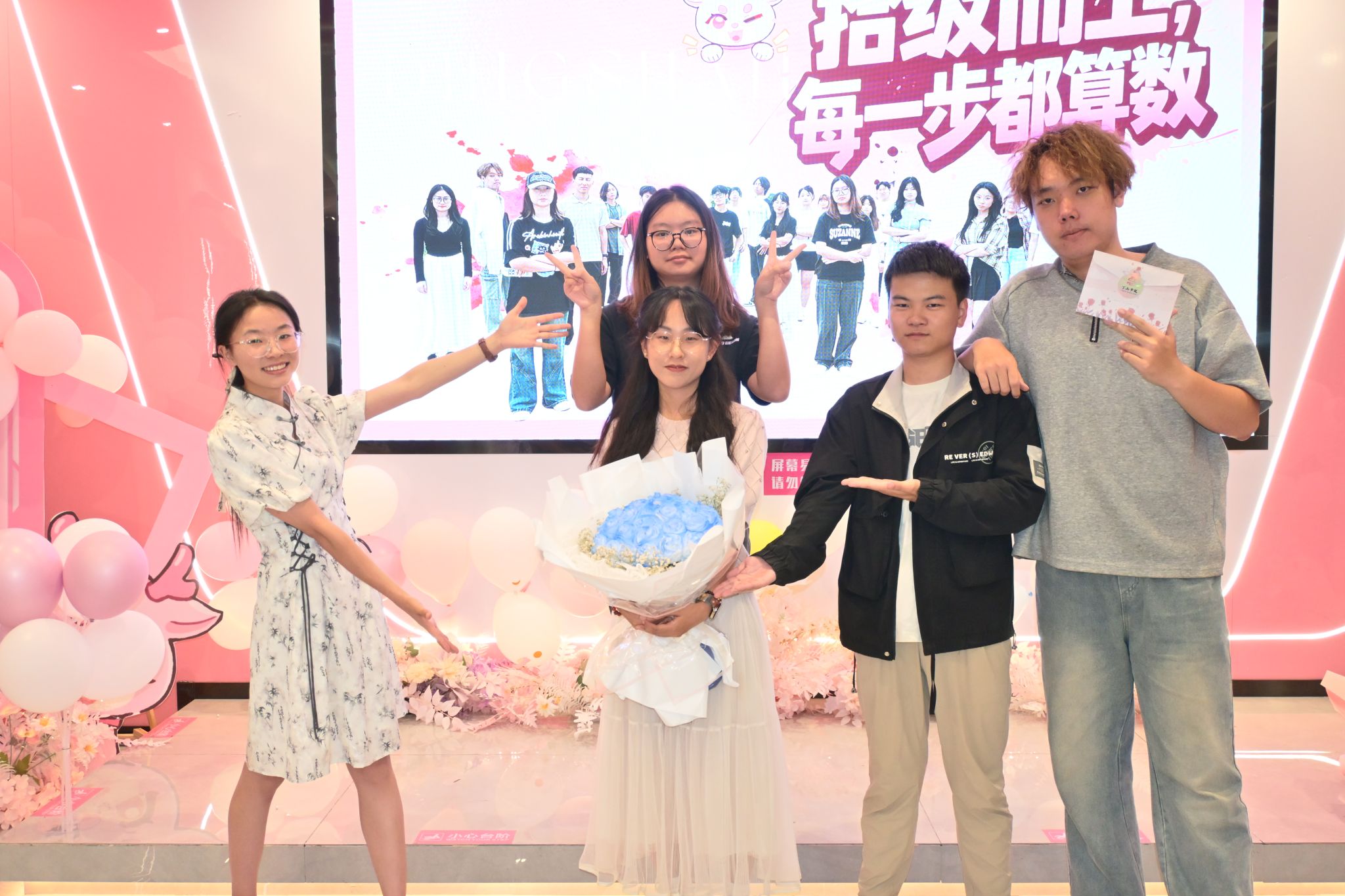 “愿你们携着星光与热忱,在未来的征途上,让青春如此刻般炽热,让理想随步履生长。”老师的祝福音落,荧幕亮起——那是干事们偷偷准备的“告白”,气氛烘托之际,由大家亲手设计的蛋糕被缓缓推入,烛光摇曳间,全场唱起温暖旋律,信件与照片承载的心意亦随之传递。