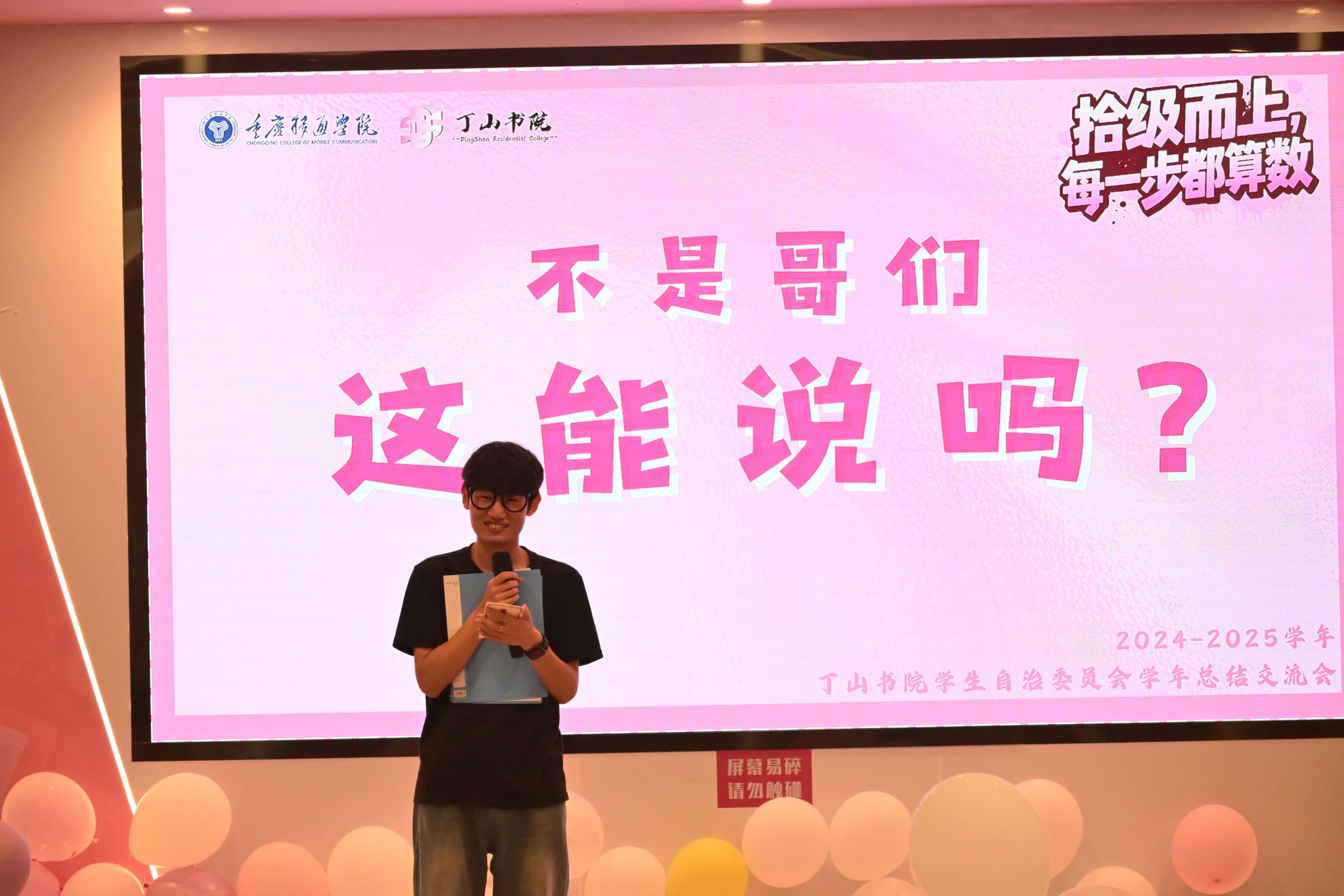 这颗从2024年春天萌发的种子,历经四季风雨洗礼,在时光的沃土中舒展枝叶、绽放芳华。当一学年的尾声悄然临近,丁山书院一届一任学生自治委员会总结交流会于璀璨夜色中开幕,成员们以欢笑与感动为笔,共同书写这场关于成长、传承与告别的青春诗篇。