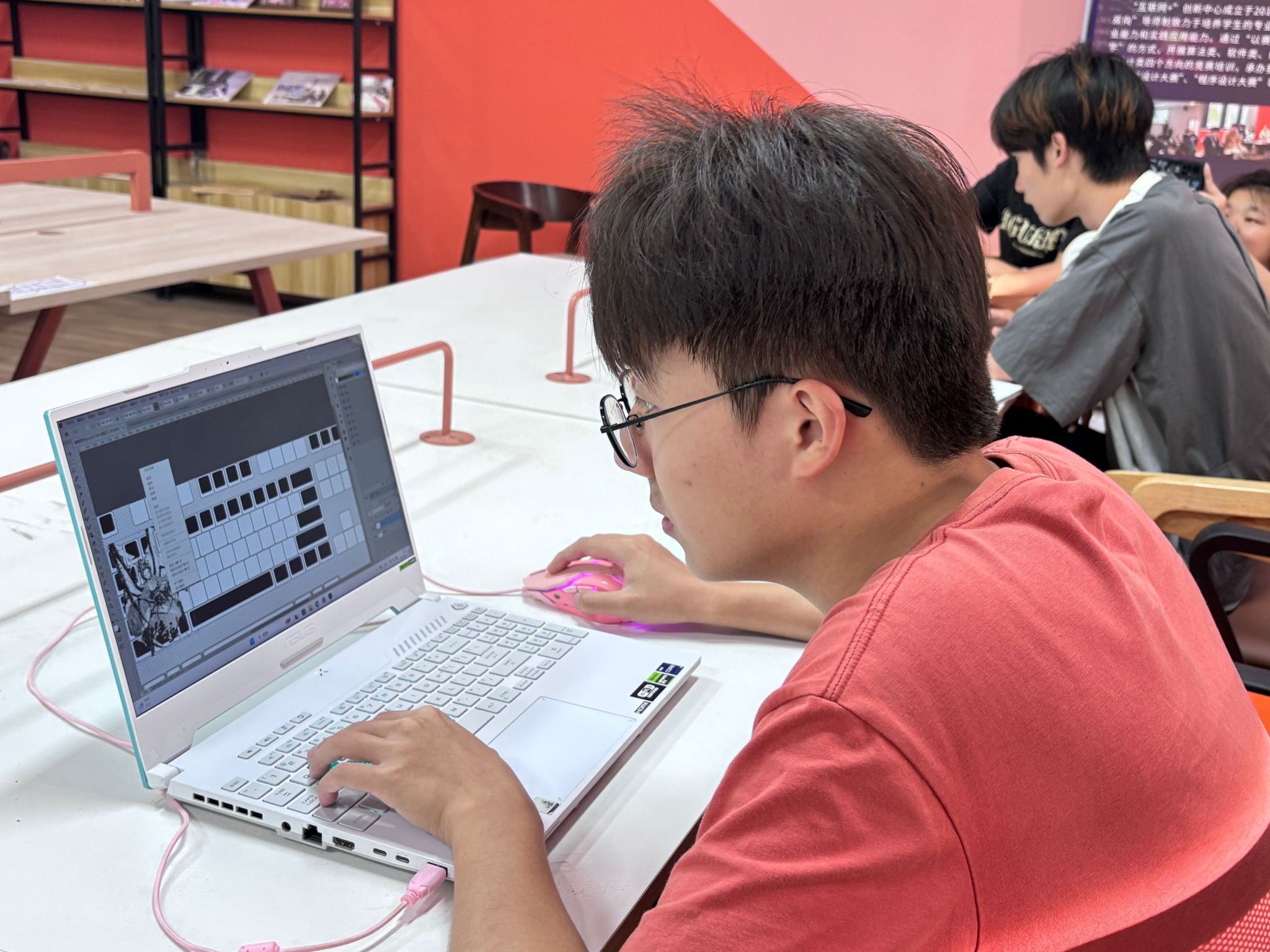 “图层是什么?在哪啊”这是活动前设计小白们的统一疑惑。零门槛创作是“感受生活美系列活动——键帽美学设计坊”需要重点突破的第二个难关,指导老师何苗详细讲解键帽设计基础逻辑和方式方法,助教同学现场演示基础操作,随课指导,哪怕设计小白也能快速上手,连图层都不会用的同学也能2小时产出首作。大部分同学活动后松了口气“原来这就是PS?也没有很难嘛”。