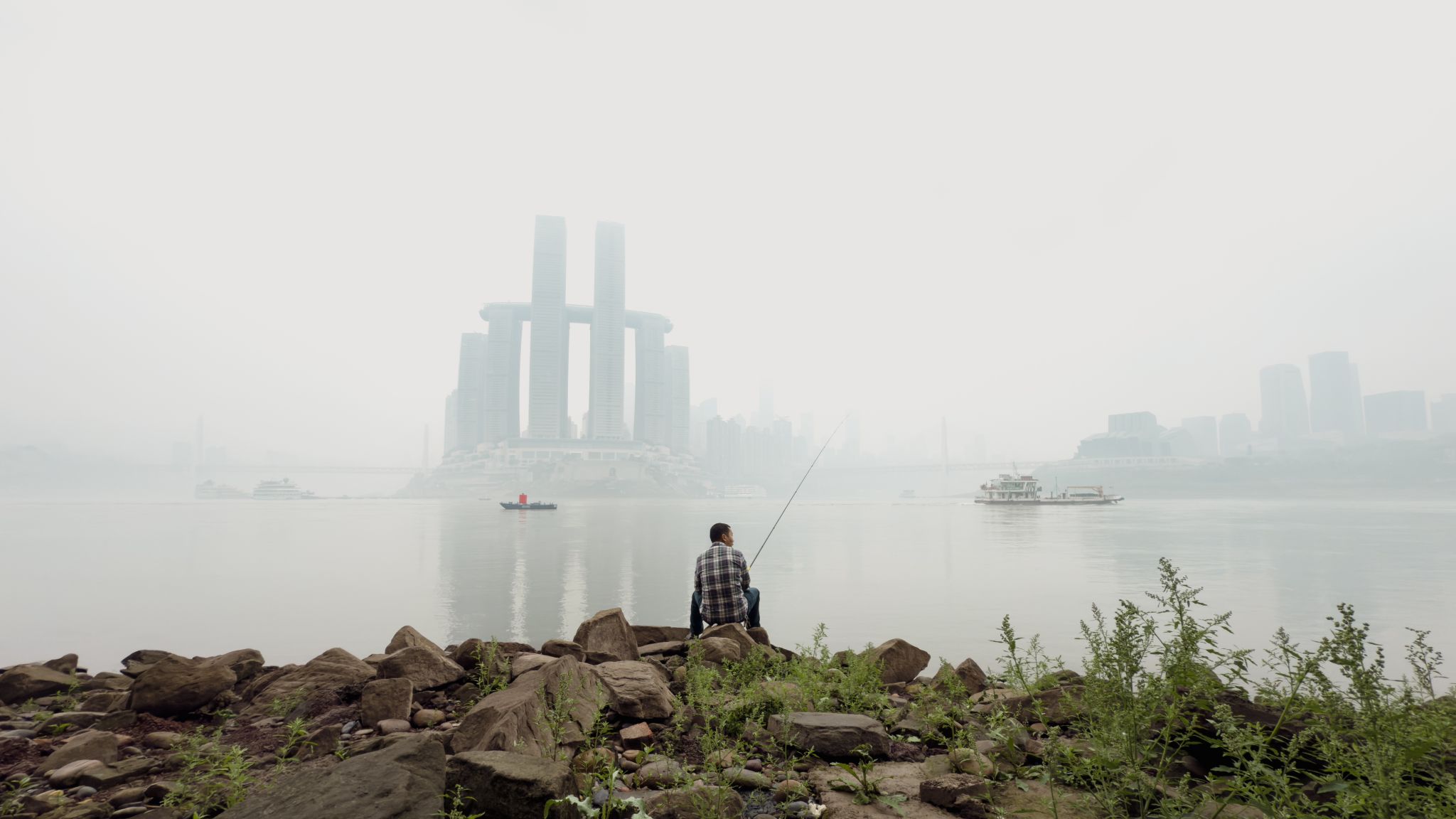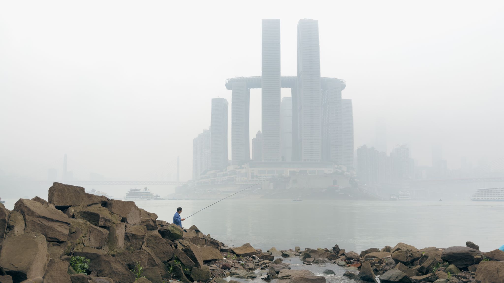这组摄于重庆寻常清晨的作品,记录了两江交汇处最本真的城市肌理。嘉陵江与长江的晨雾中,来福士大厦的现代轮廓与江心礁石上垂钓的老者构成时空对话。我选择以观察者的视角,捕捉这个承载着城市记忆的瞬间。