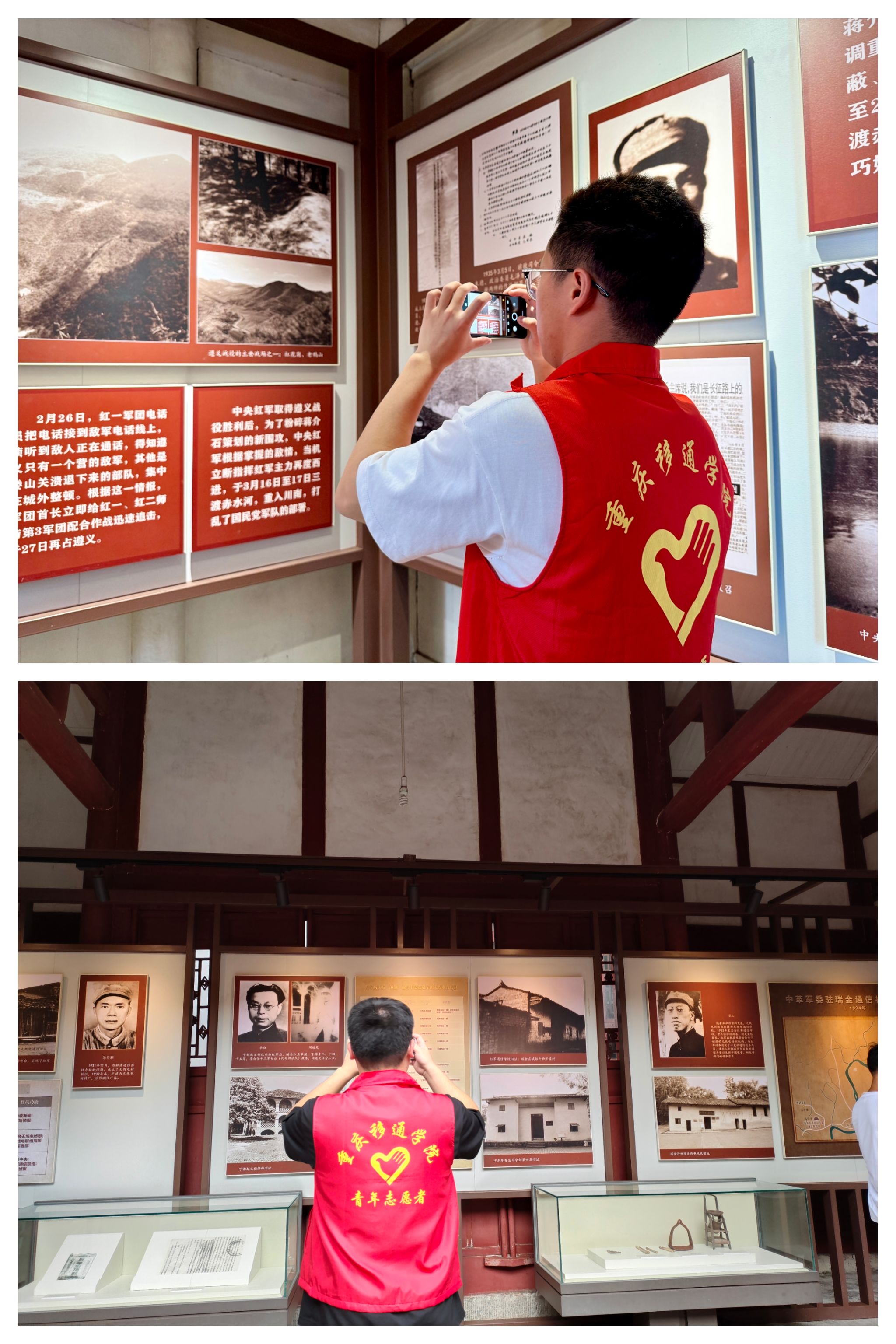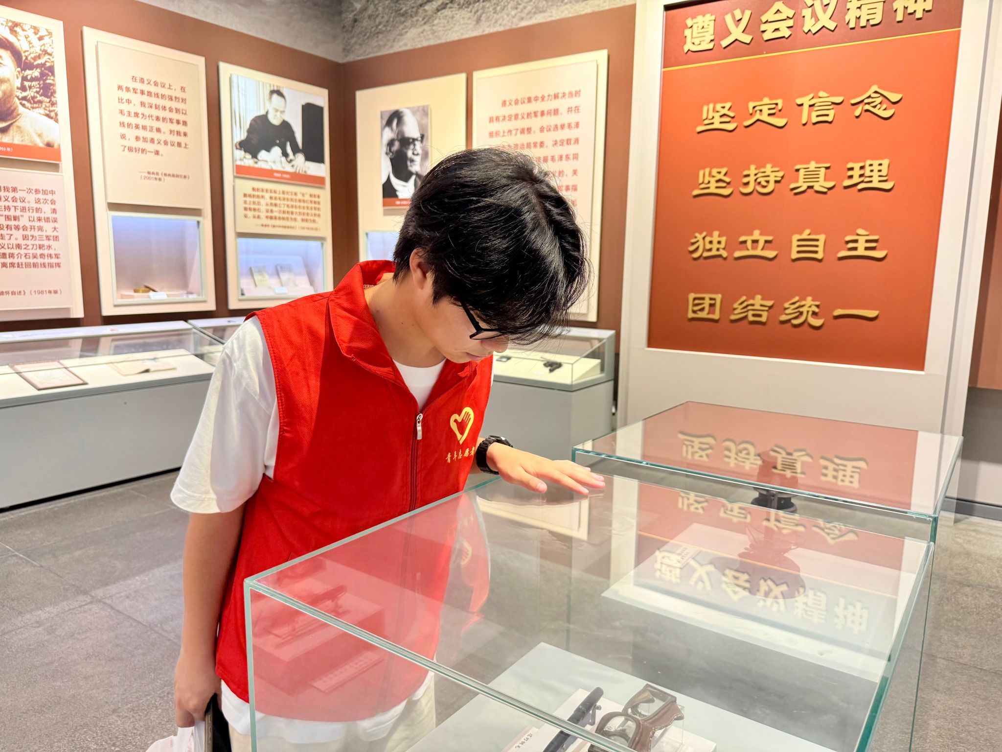 驻足会议旧址,仿佛推开了历史的大门。陈旧的煤油灯、斑驳的桌椅间,毛泽东同志力挽狂澜的雄韬、周恩来同志运筹帷幄的风范如在眼前。革命先辈以胆识与智慧改写中国命运,铸就不朽丰碑。同学们或凝神沉思,在文物前追溯往昔;或轻按快门,定格心灵震颤的瞬间。他们深知,遵义会议不仅是革命的转折点,更是共产党人坚守理想、勇毅革新的精神灯塔,指引新时代青年在复兴征程上赓续红色血脉,砥砺前行。