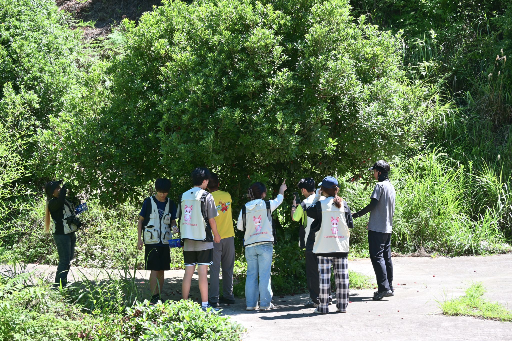 在狸狮村杨梅扶贫基地负责人刘权康的带领下,促进团开启直播带货教学。山道崎岖陡峭,乡村振兴的路亦是如此。但促进团没有慢下脚步,并且沿途记录了当地的自然风光与杨梅产业分布情况。在顺利抵达位于山顶的狸狮村杨梅扶贫产业园后,促进团展开新一轮实地调研。