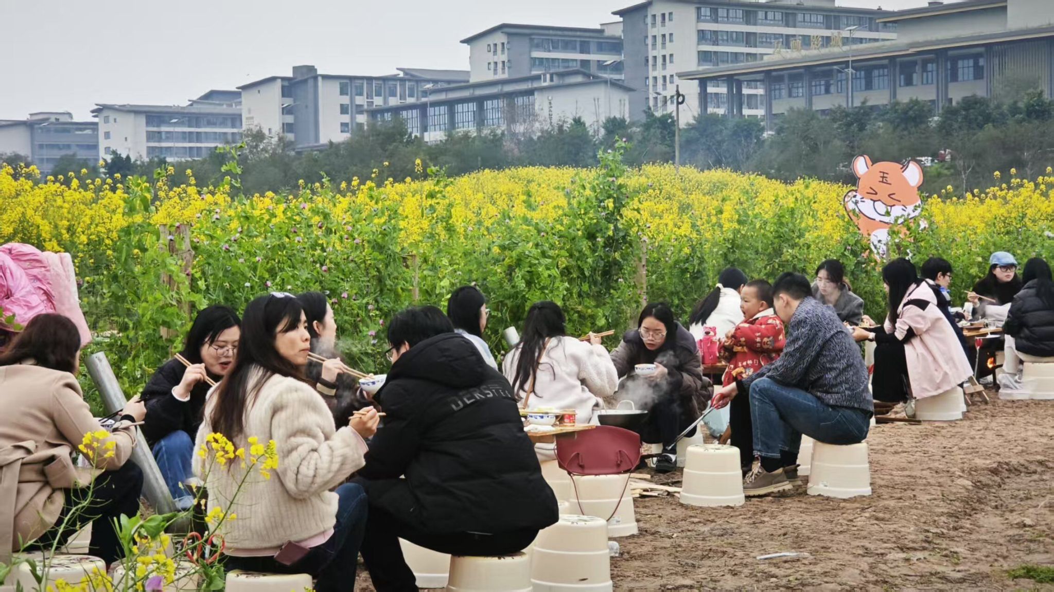 “重庆移通学院油菜花节”师生共膳“野火锅”