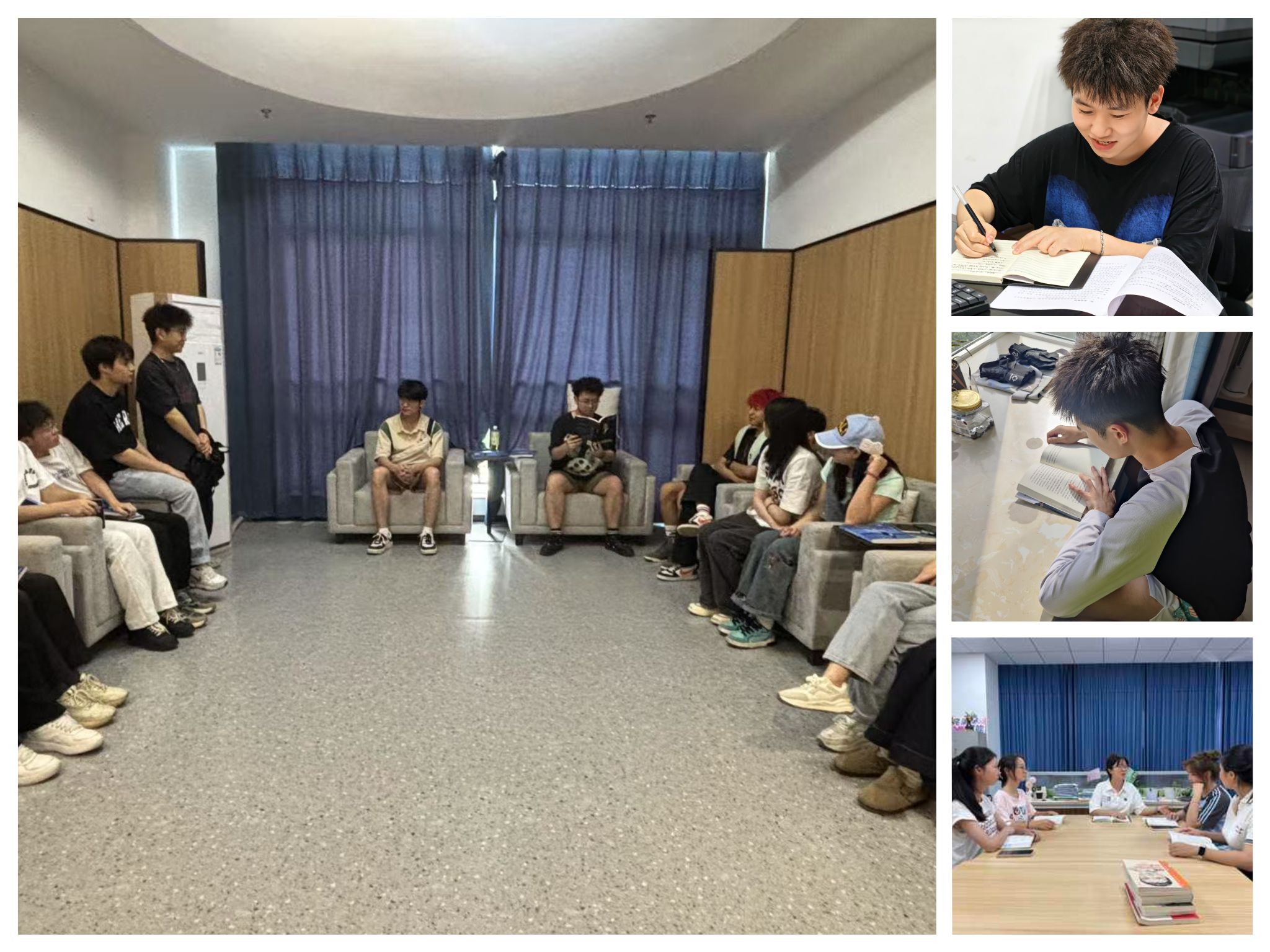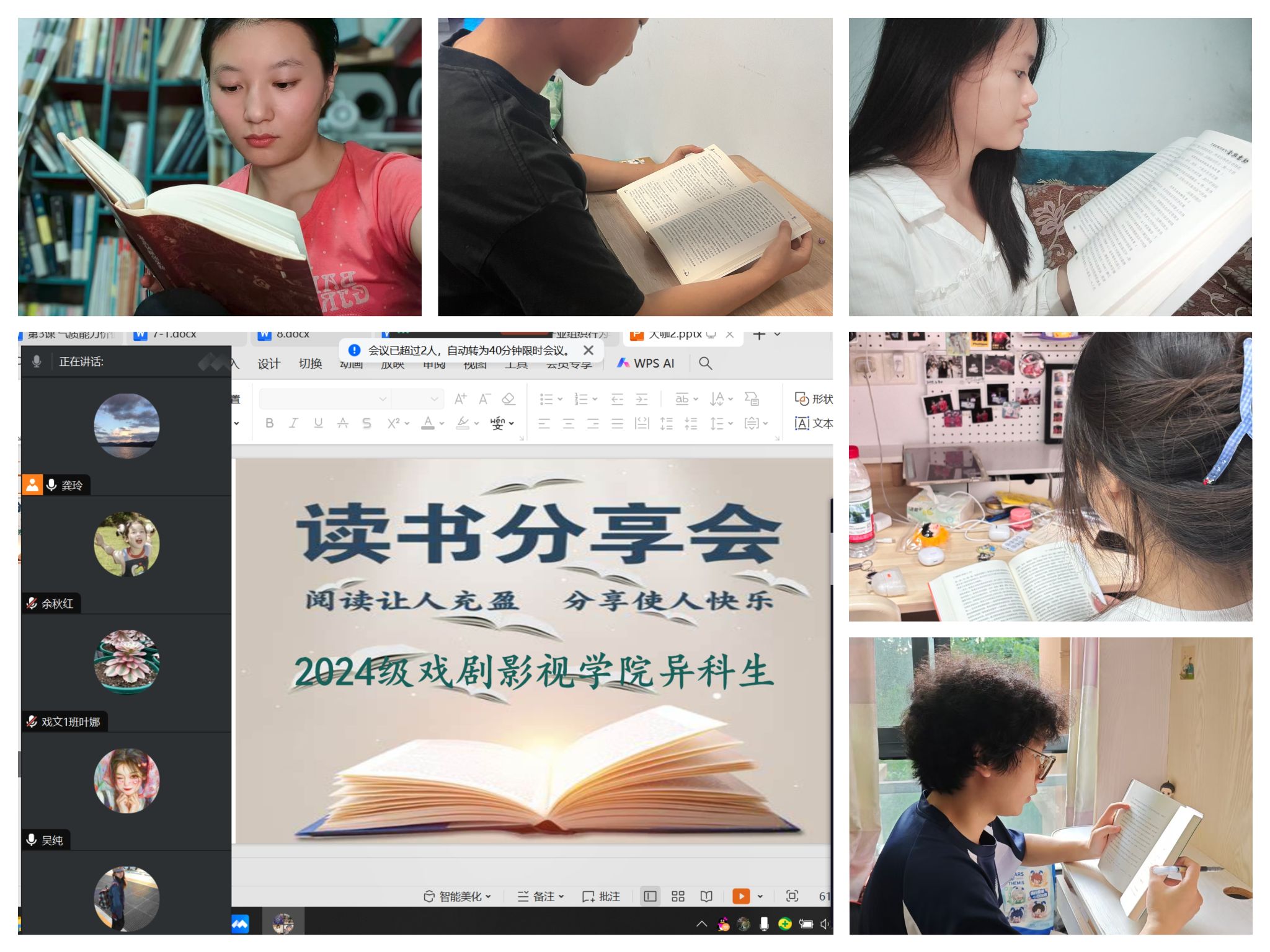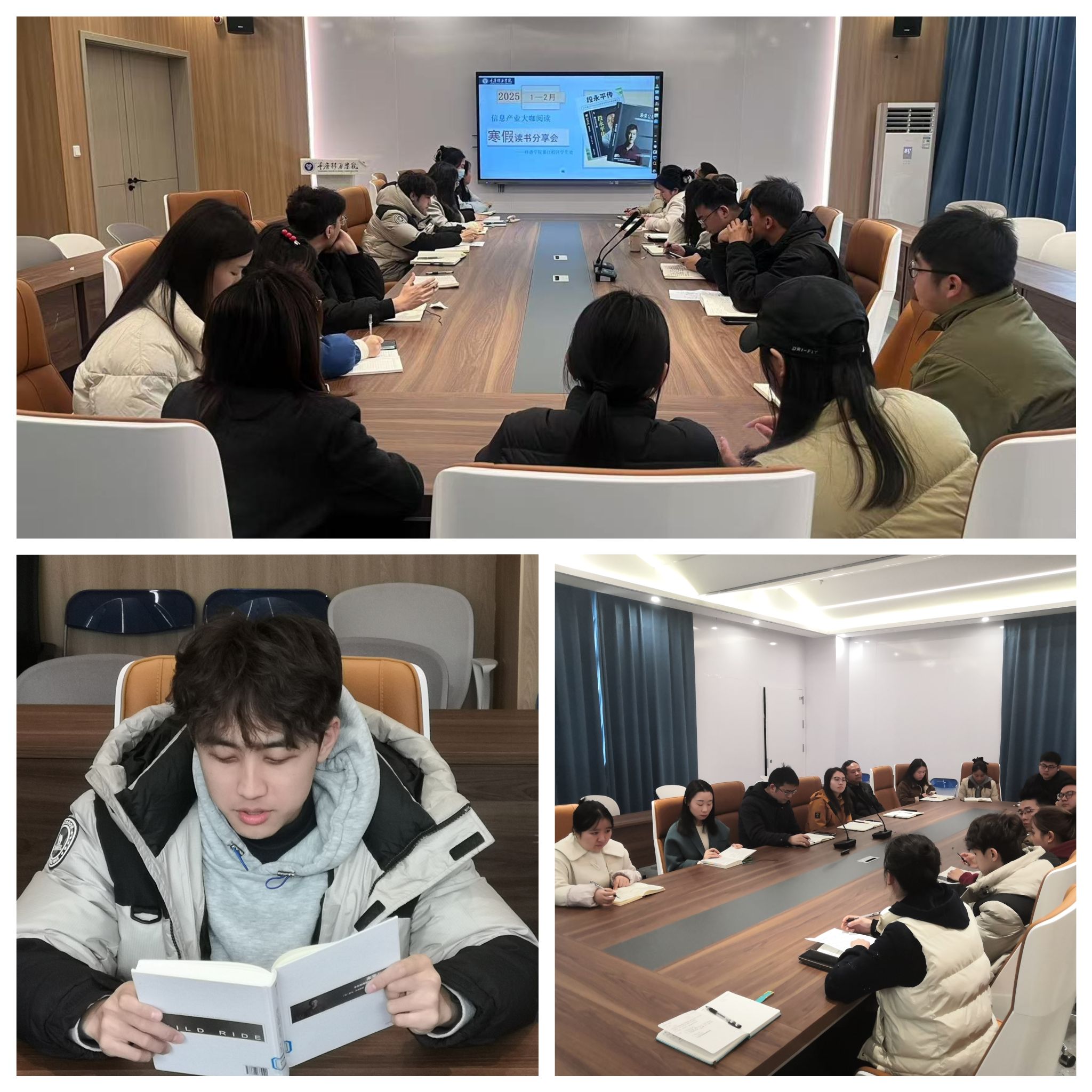 (各职能部门)为持续深化学生对商业领域深层思维逻辑的理解,各职能部门构建“线上联动+线下延伸”的阅读活动体系,通过建立师生沟通机制、定制阅读计划、开展多层级分享活动,在全校营造浓厚阅读氛围。暑期伊始,书院部便搭建线上师生沟通平台,以“导师领航+学生自治”模式推进阅读活动落地。各专业导师通过腾讯会议、企业微信等渠道,与学生干部组成专项小组,结合信息产业人才培养需求与学子兴趣方向,共同制定个性化暑期阅读计划——既明确《腾讯传》《马云传》等核心书籍的阅读进度,也细化每周线上交流节点,确保阅读有方向、有监督。校团委则联合校内多个校级组织共同开展了以“纸墨年轮·不亦‘阅’乎”为主题的大咖阅读分享会,通过学生干部精读大咖著作、互动分享感悟的形式,搭建起知识交流与思想碰撞的平台。