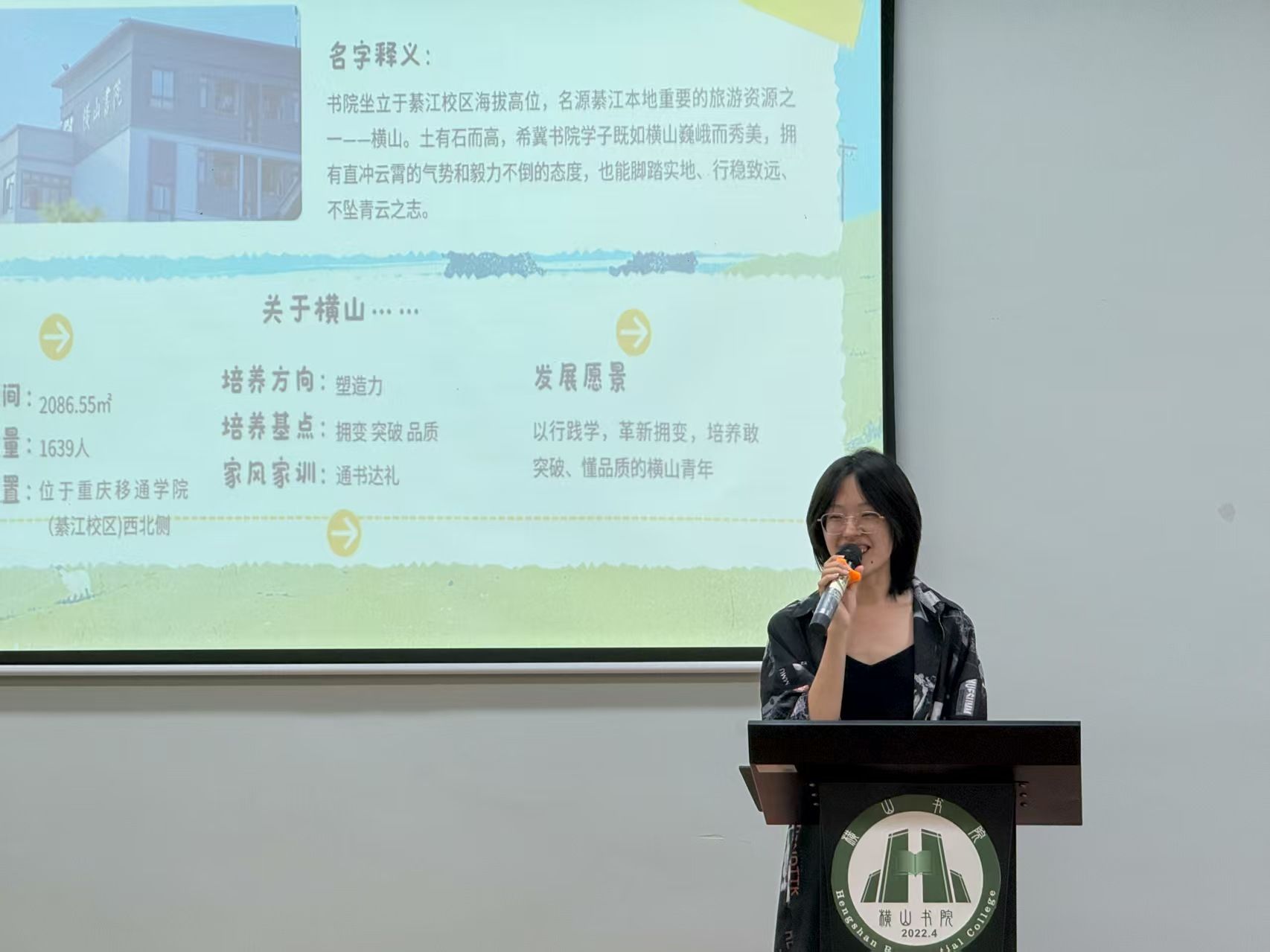 活动现场为同学们设置了“手绘笑脸”打卡装置,进入现场的新生们纷纷拿起画笔,勾勒出初入横山书院时的自画像,用鲜活的色彩传递对新生活的期待,在轻松互动中拉近彼此距离,初步建立对书院的归属感。待打卡仪式结束后,横山书院学生发展导师杜曦雅老师则为新生进行书院文化解读。她从书院空间布局、领导力培养体系及“家”文化建设等核心方向展开讲解,介绍了书院的发展理念与特色活动,让新生清晰了解未来四年在书院的成长路径,深化对书院文化的认知与认同。