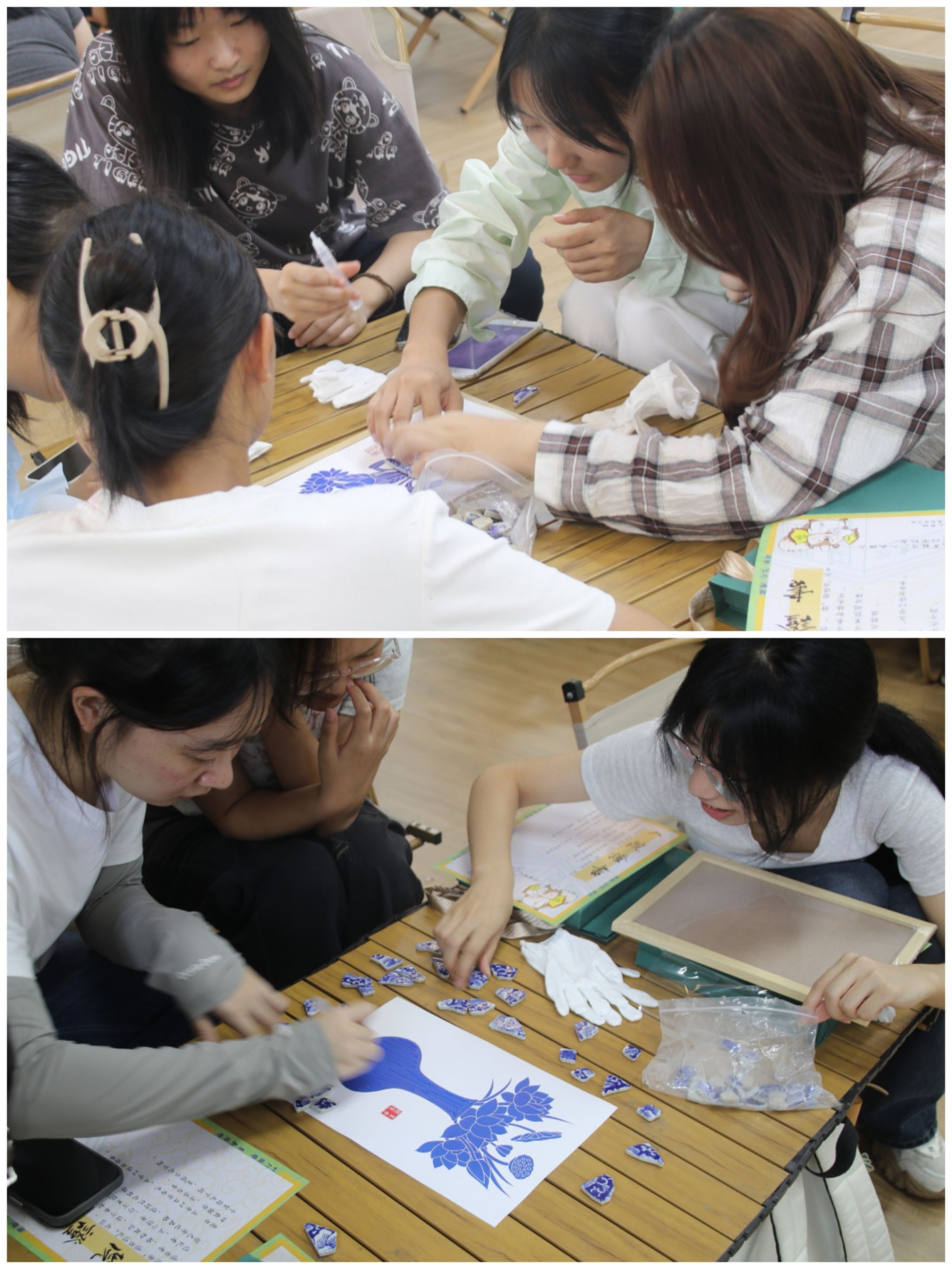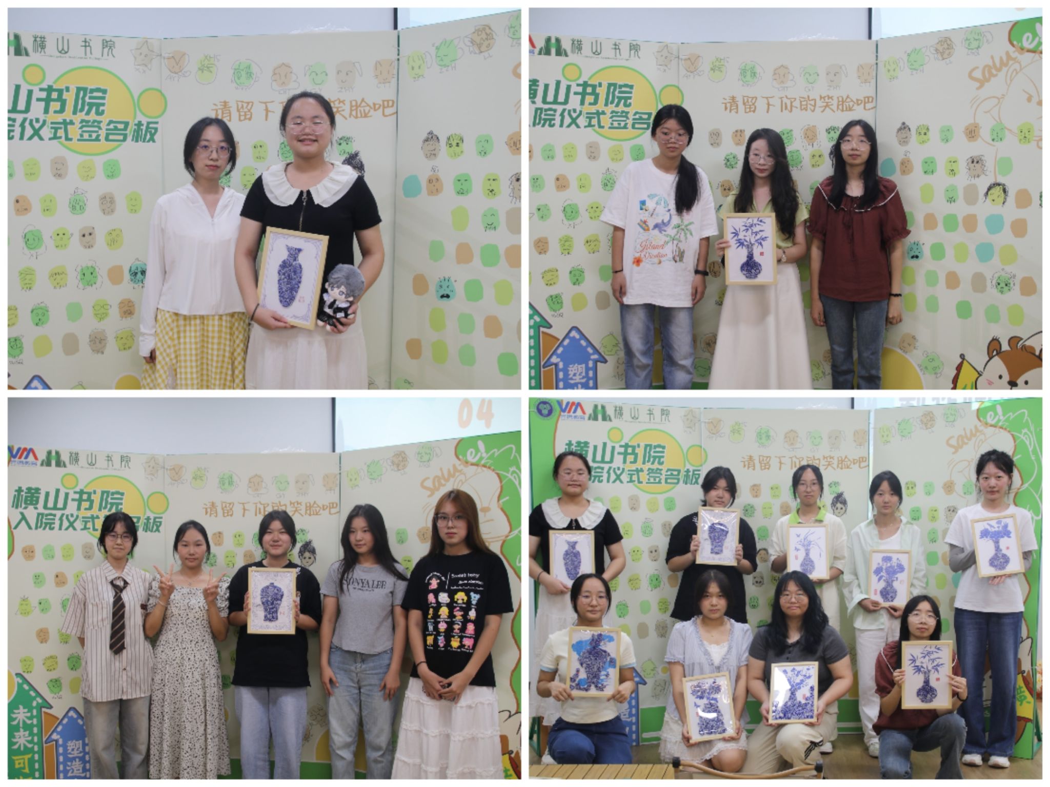 仪式最后,“陶瓷画制作”环节为这场入院活动添上了温暖又鲜活的收尾。新生以寝室为单位,在书院老师的带领下共同参与陶瓷拼贴画制作的“家庭任务”。制作完成后,各寝室成员举着自己的陶瓷画拍照纪念,画面里的作品与笑容格外有感染力。在协作与留影中,寝室成员间的距离悄悄拉近,为未来和睦的书院生活埋下好伏笔。活动结束后,不少新生还捧着陶瓷画和室友边走边聊,有人说“一开始和室友还不太好意思搭话,一起拼画的时候聊了好多,现在感觉亲近多了”,还有人笑着感慨“这画得好好收着,以后看到就能想起刚入院的这段热闹日子”。