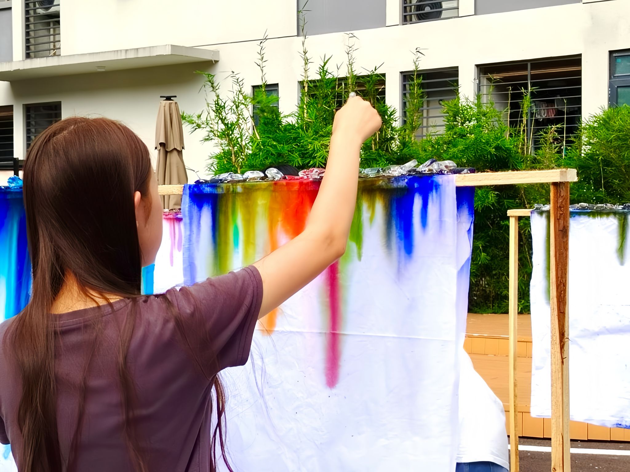 自南江书院“社区主理人”共创计划启动以来,已陆续开展手绘井盖、彩绘木桩、冰染布料等活动。这些活动均围绕“师生共创”核心,以“装饰书院空间、传递共建理念”为目标,每次都有独特的呈现形式,让书院逐渐成为师生共同打造的“创意家园”。