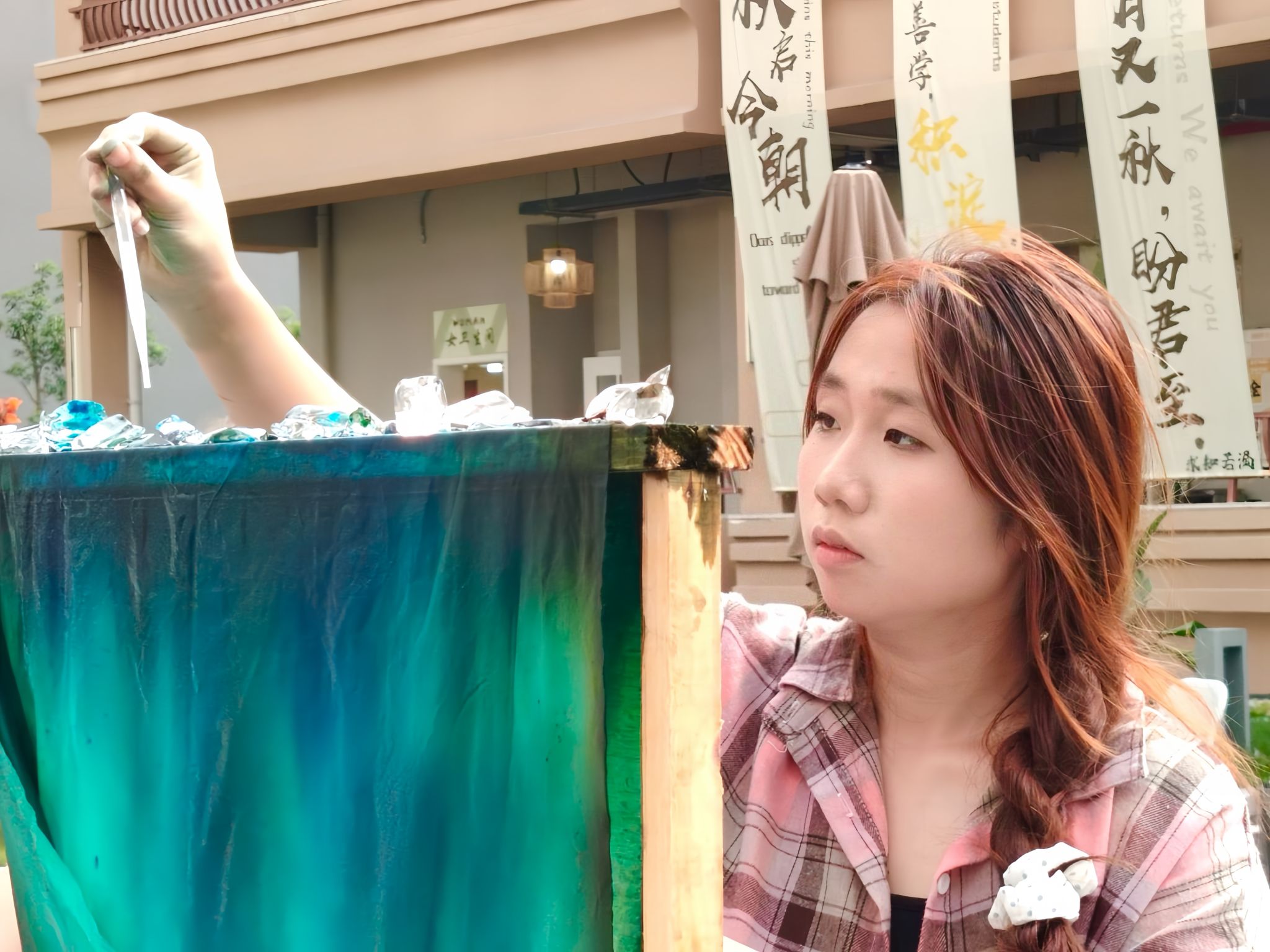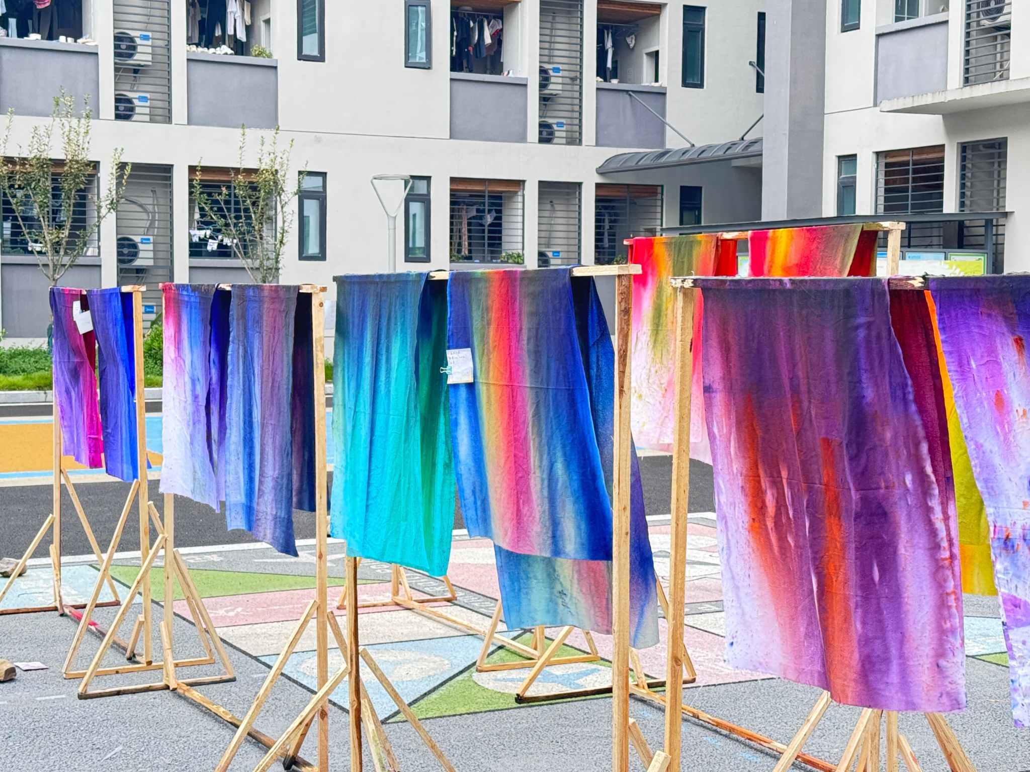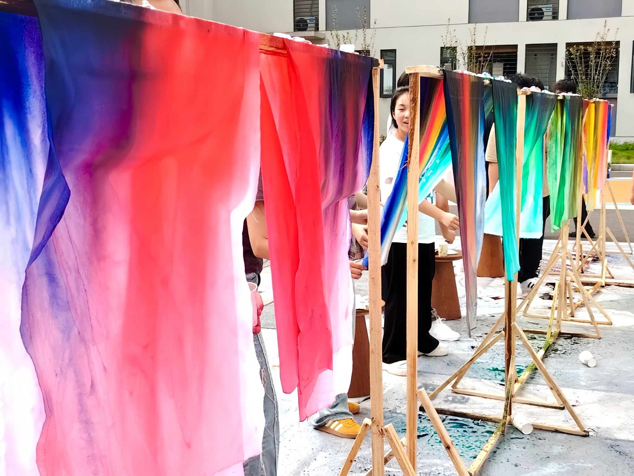 待冰染布料晾干后,它们将亮相南江小洞天。届时,当师生漫步书院,行至二楼拱门处,抬头便能看见色彩斑斓的布料在墙面上舒展,红的、蓝的、黄的,各色纹路交织成独特的风景线。这不仅能为书院增添手工艺术氛围,更能让每一位路过者,直观感受到“社区主理人”的创意与心意,体会“共创”的意义。