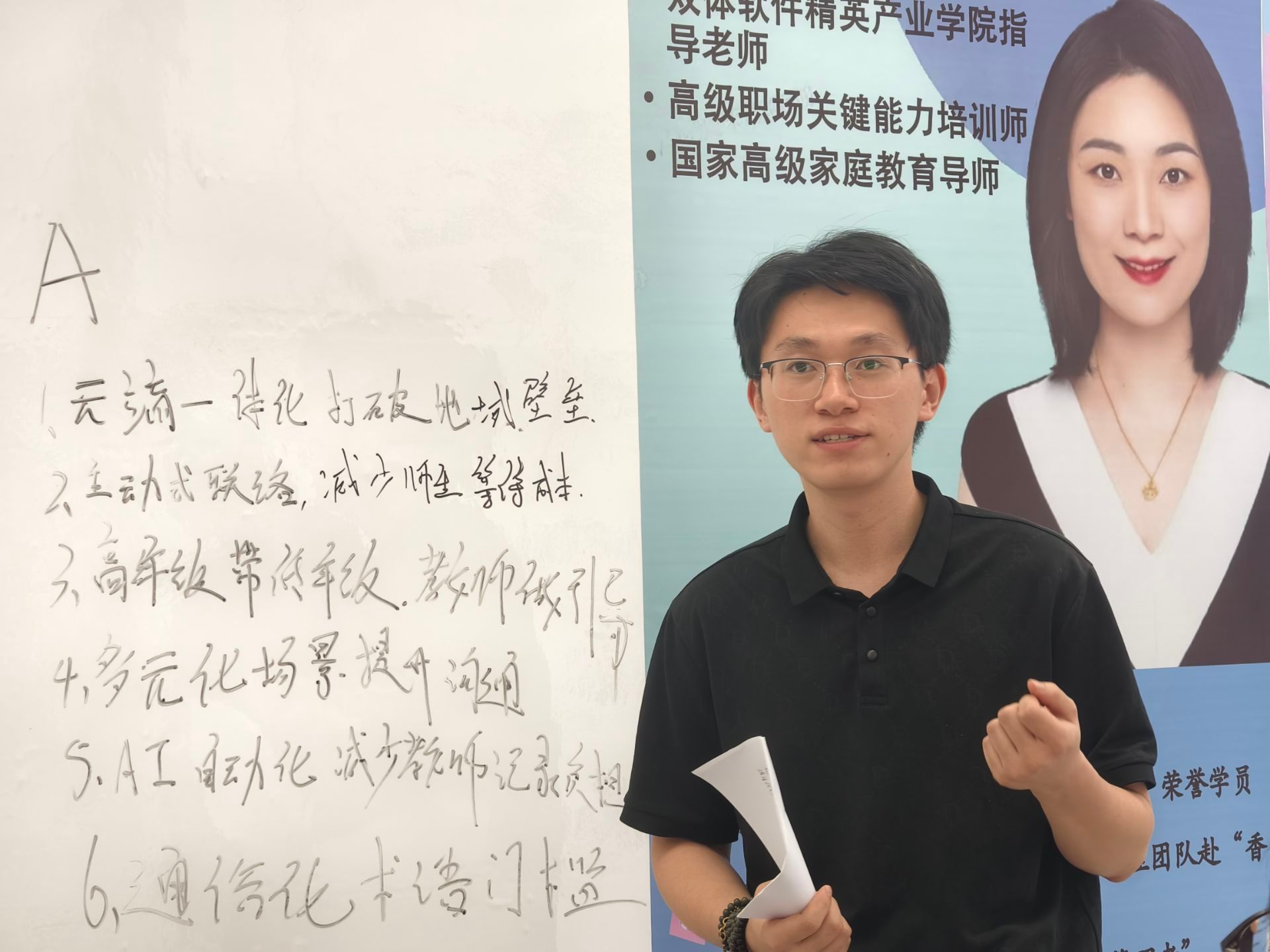 B组同学也分享了见解,他们表示师生沟通还存在时间和空间上的限制,导致沟通不及时。对此B组建议:建立按学科或年级划分的师生沟通群,方便师生随时分享学习资料、提问答疑;利用在线协作平台(如共享文档、问卷星),让学生匿名或实名反馈需求,老师定期查看并回复;同时,学校设立每月固定的“师生沟通日”,当天老师调整办公安排,专门接待学生咨询,倾听学生诉求;在教学楼、书院设置“师生沟通意见箱”,学生可写下建议或困惑,由专人定期收集并转交对应老师,加强师生间的沟通。