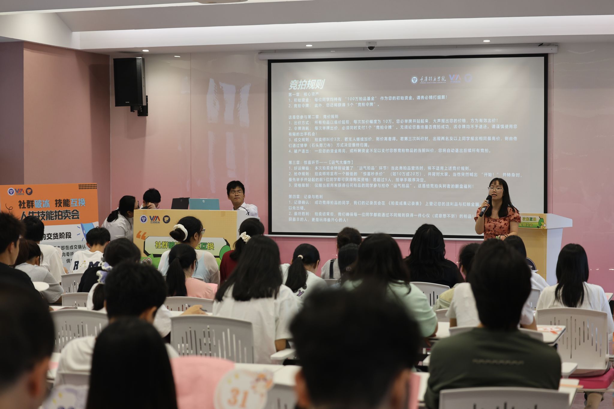 为帮助綦江校区2025级新生更好地适应大学生活,充分发挥书院制下朋辈引领的育人功能,9月10日,书院部在丁山书院处女座·智慧教室主办“社群破冰·技能互换”人生技能拍卖会。活动以沉浸式拍卖形式,将学业规划、完满活动等实用经验转化为“人生技能”拍品,帮助大家认识自我、对接资源,奠定个性化成长基础。