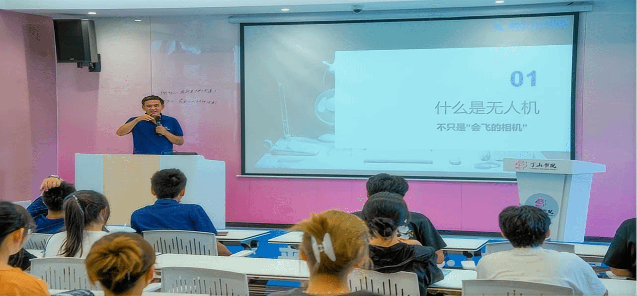 训飞科技有限公司技术专家系统讲解了无人机技术的发展现状与行业应用,从农业植保到地理测绘,从应急救援到物流运输,让同学们对无人机技术的广泛应用有了全面认识。