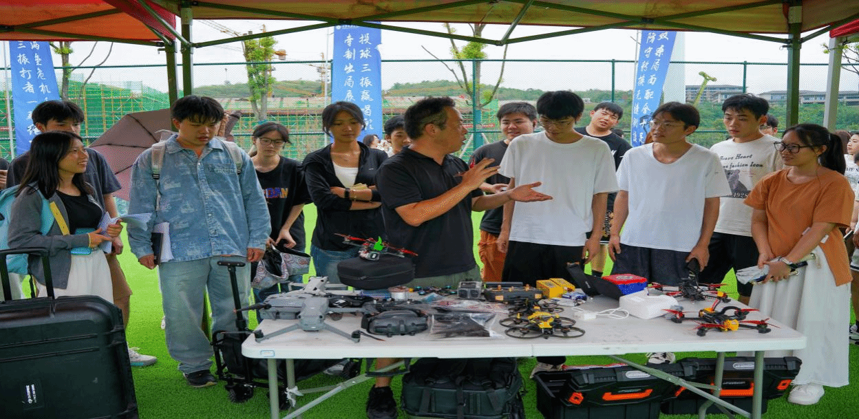 活动现场还设置了多种型号无人机静态展示区与功能讲解区,让同学们能够近距离观察了解各类设备。