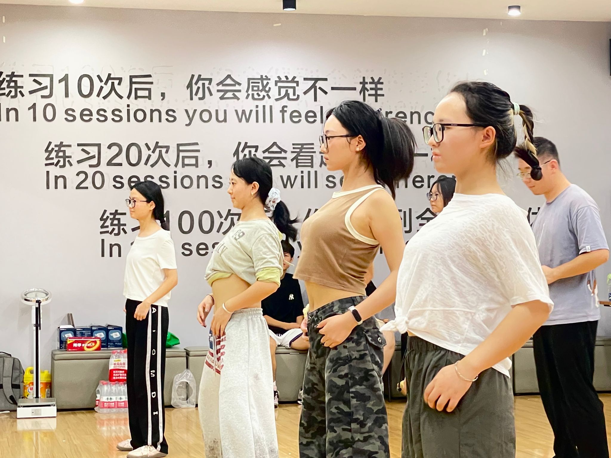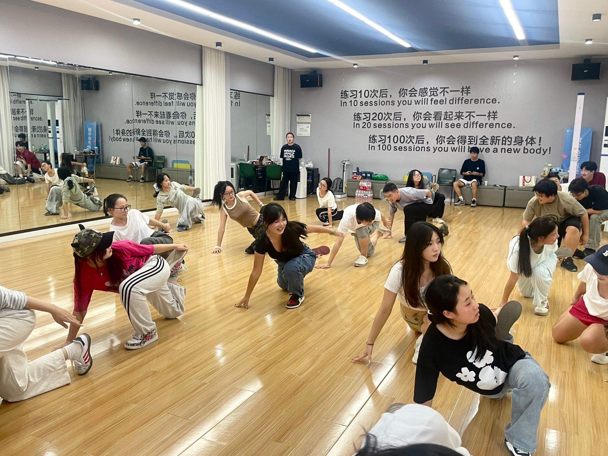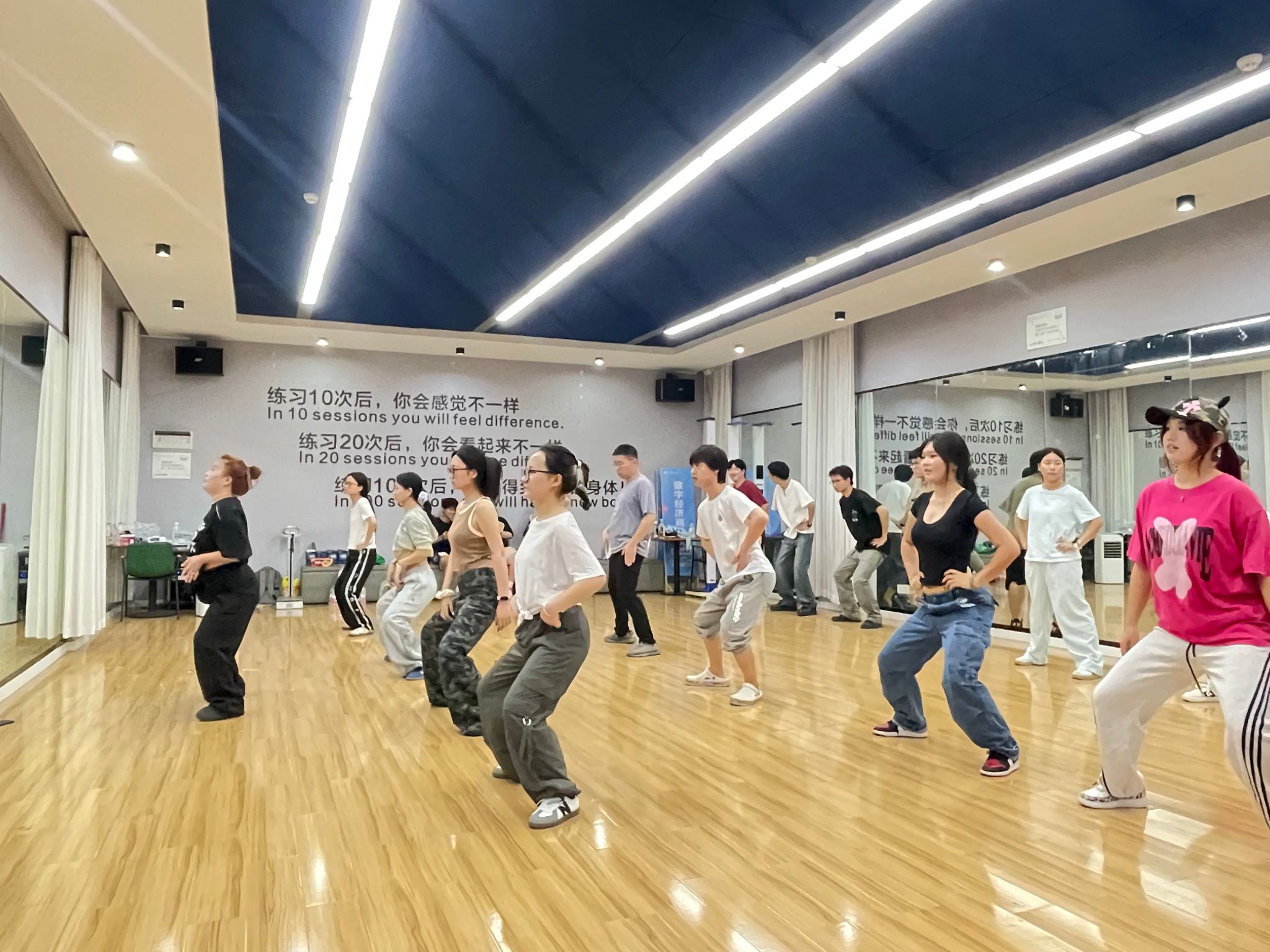 同学们全神贯注地跟随着老师的舞步。无论是经验丰富的达人,还是初学的新手,都沉浸在舞蹈的愉悦中。汗水滑落,现场洋溢着轻松欢快的艺术氛围。