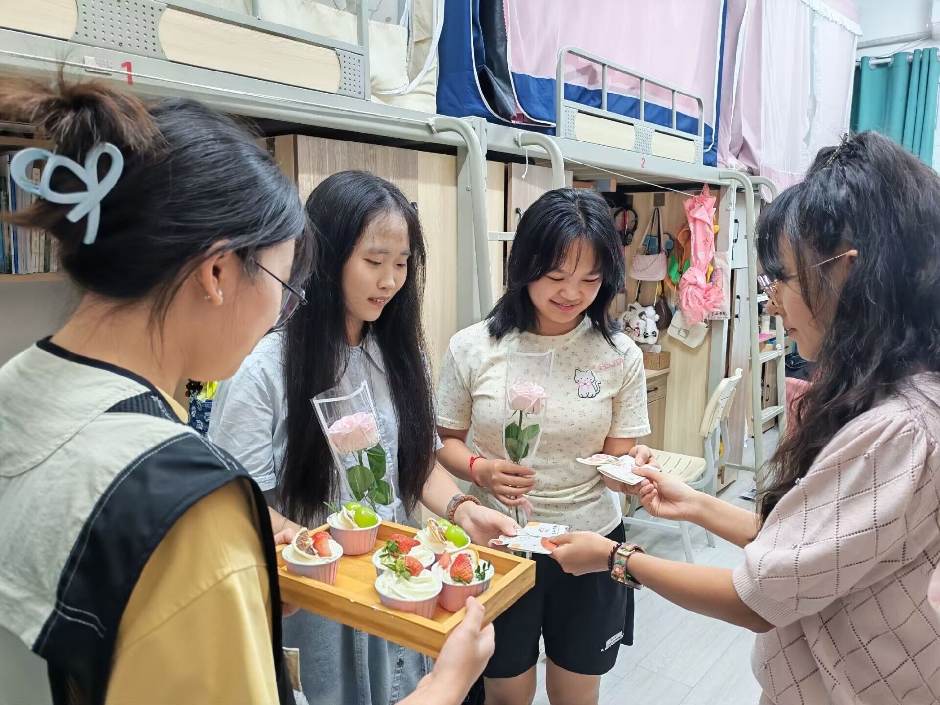 “第一次在书院过生日,收到贺卡和鲜花的时候特别惊喜!大家一起唱生日歌、给我送小蛋糕,感觉书院就像另一个家,温暖又亲切。”