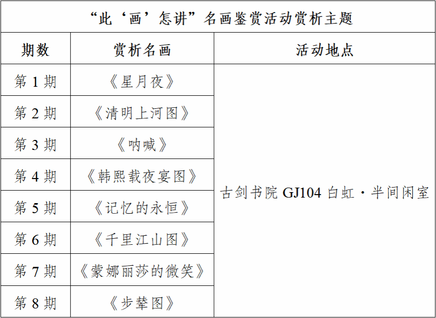如果你对《星月夜》有自己的独特见解,别再犹豫啦!不管你来自哪个学院,欢迎带着你的专业视角来,毕竟,用8个课时,把名画变成你的专业加分项,这件事真的很值!